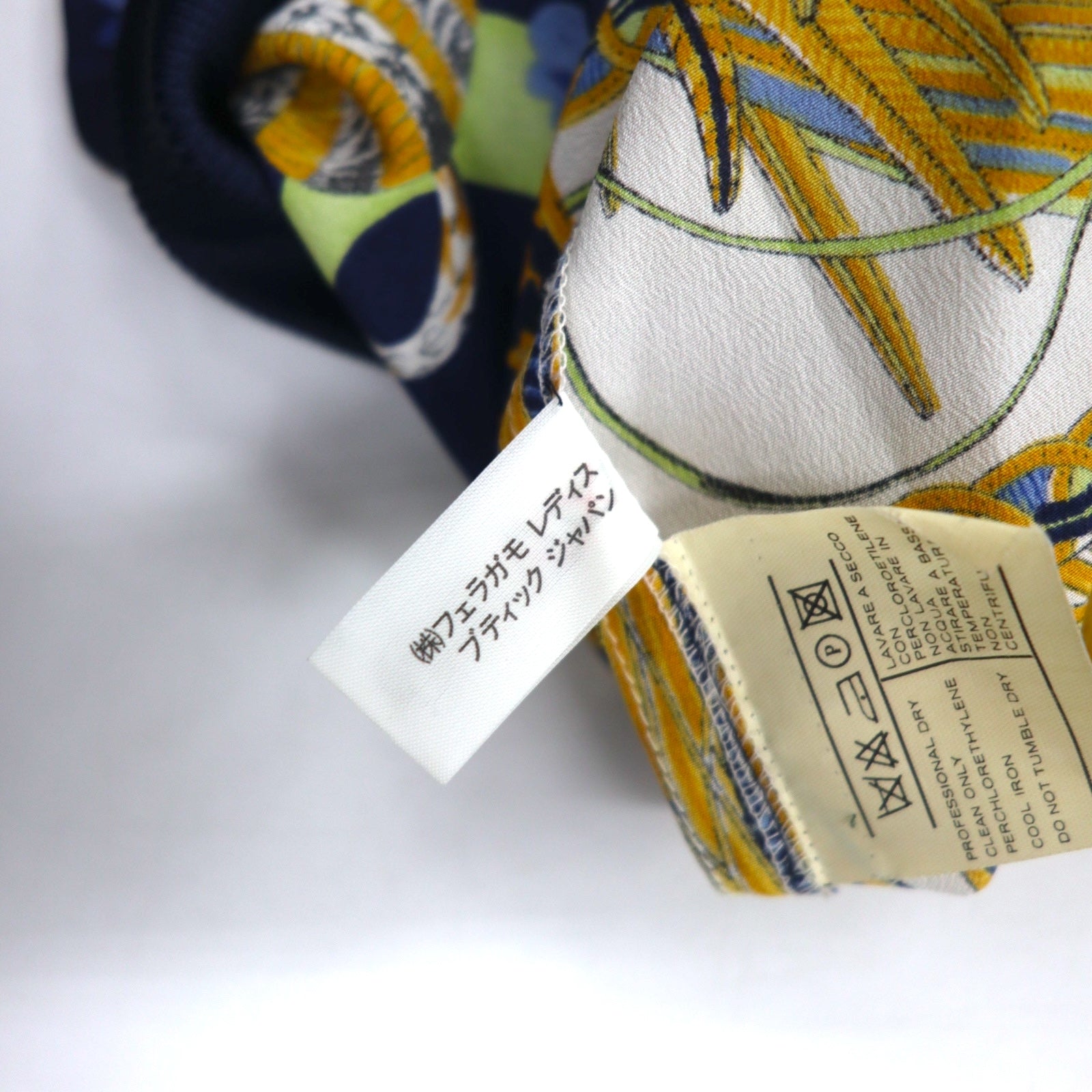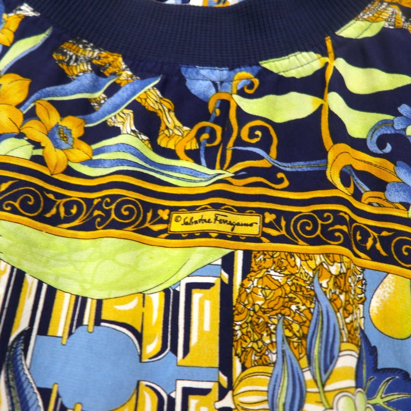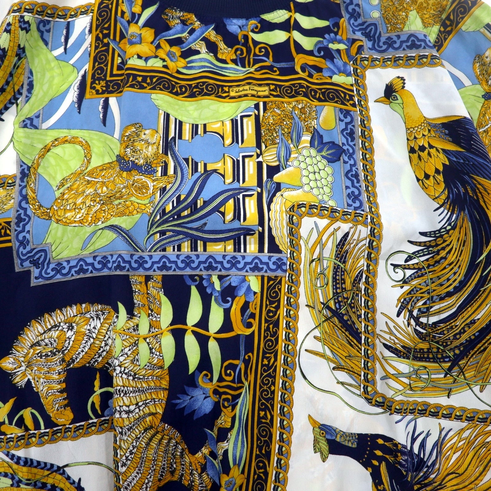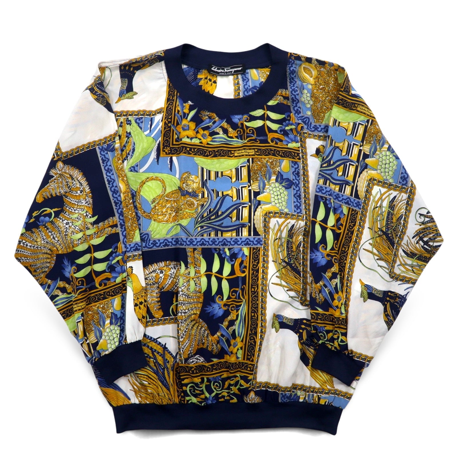 Salvatore Ferragamo イタリア製 オールド シルク トップス M ネイビー 総柄 スカーフ
