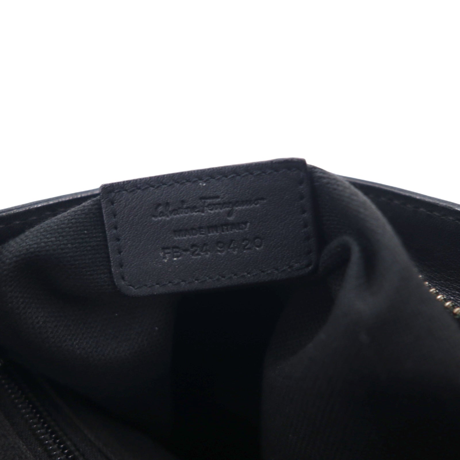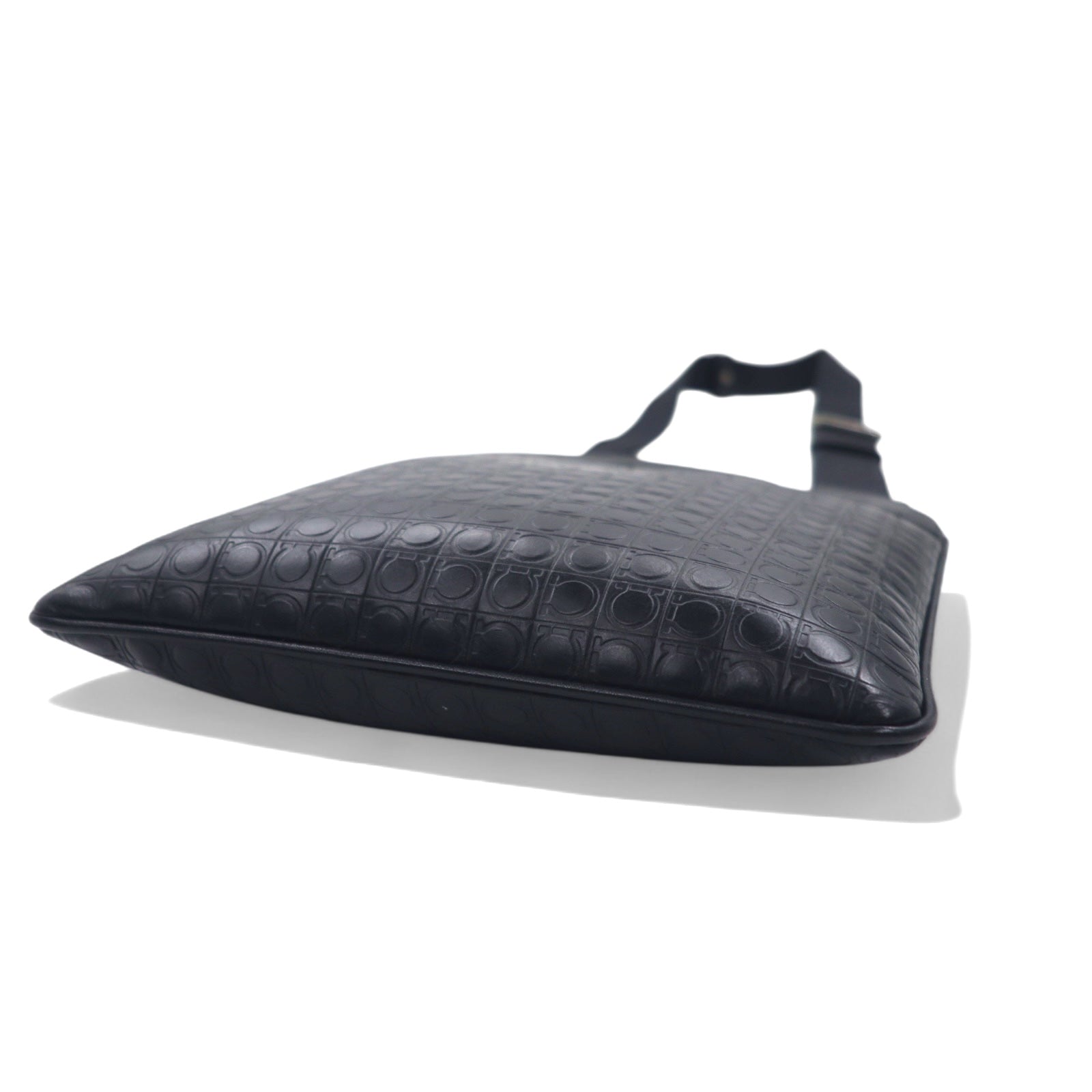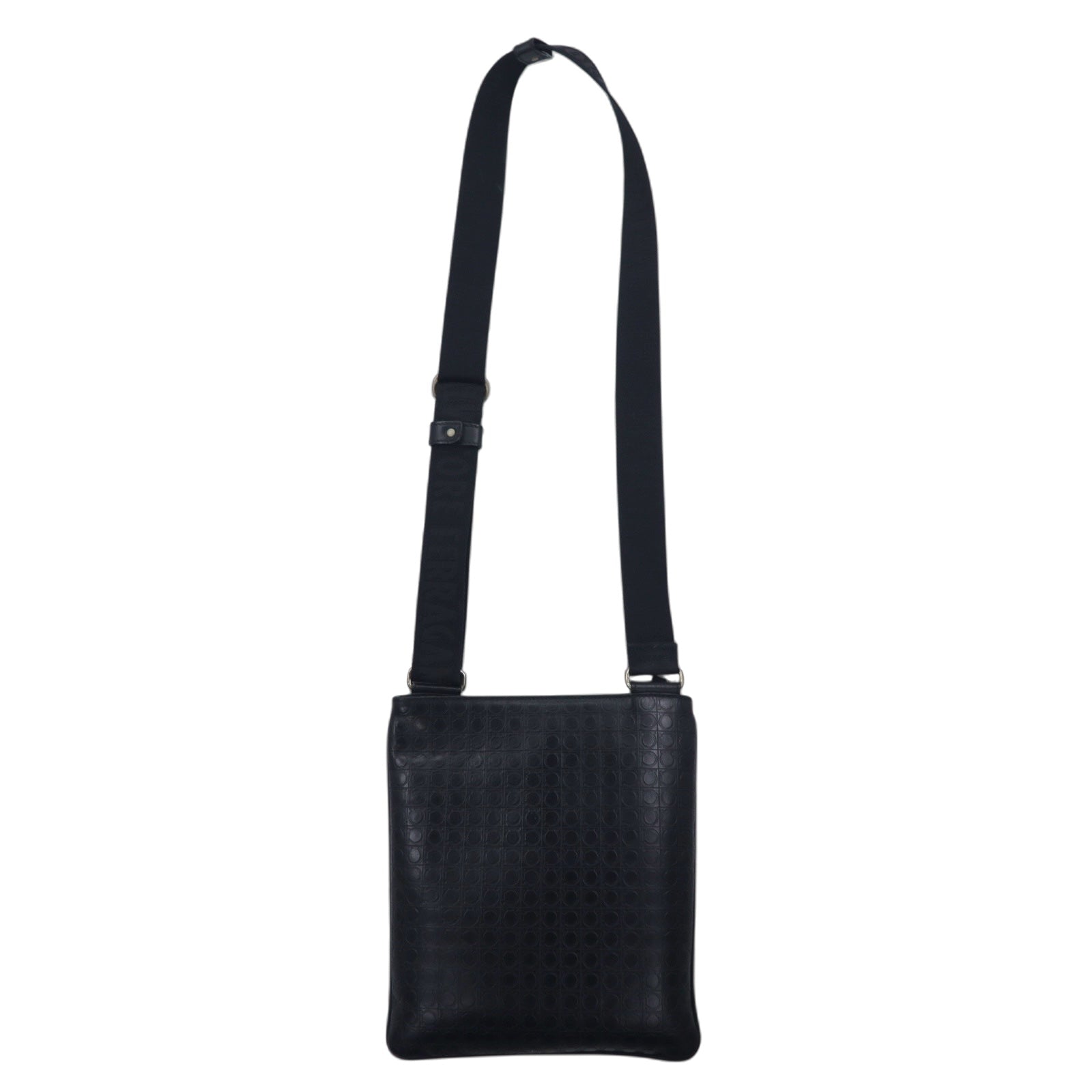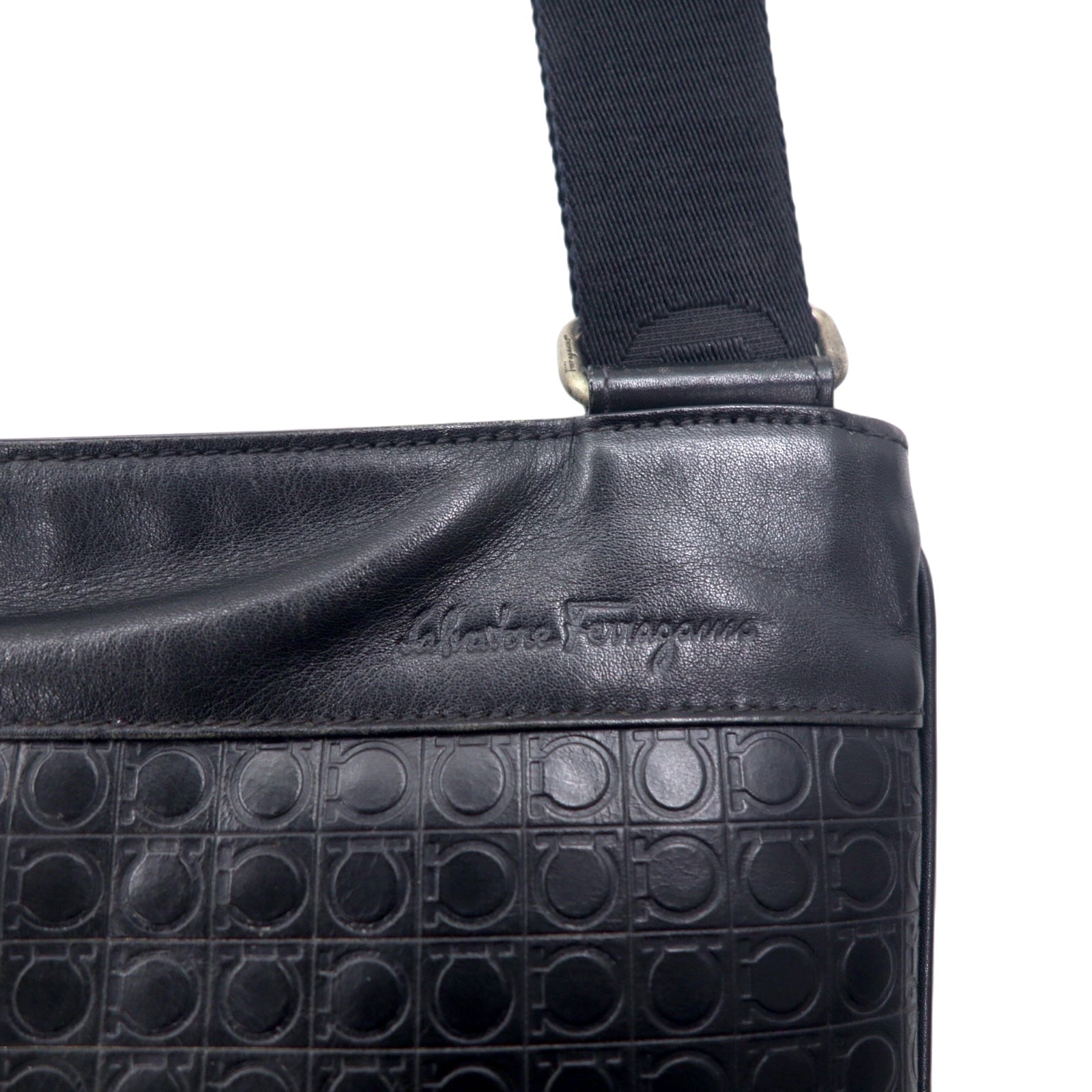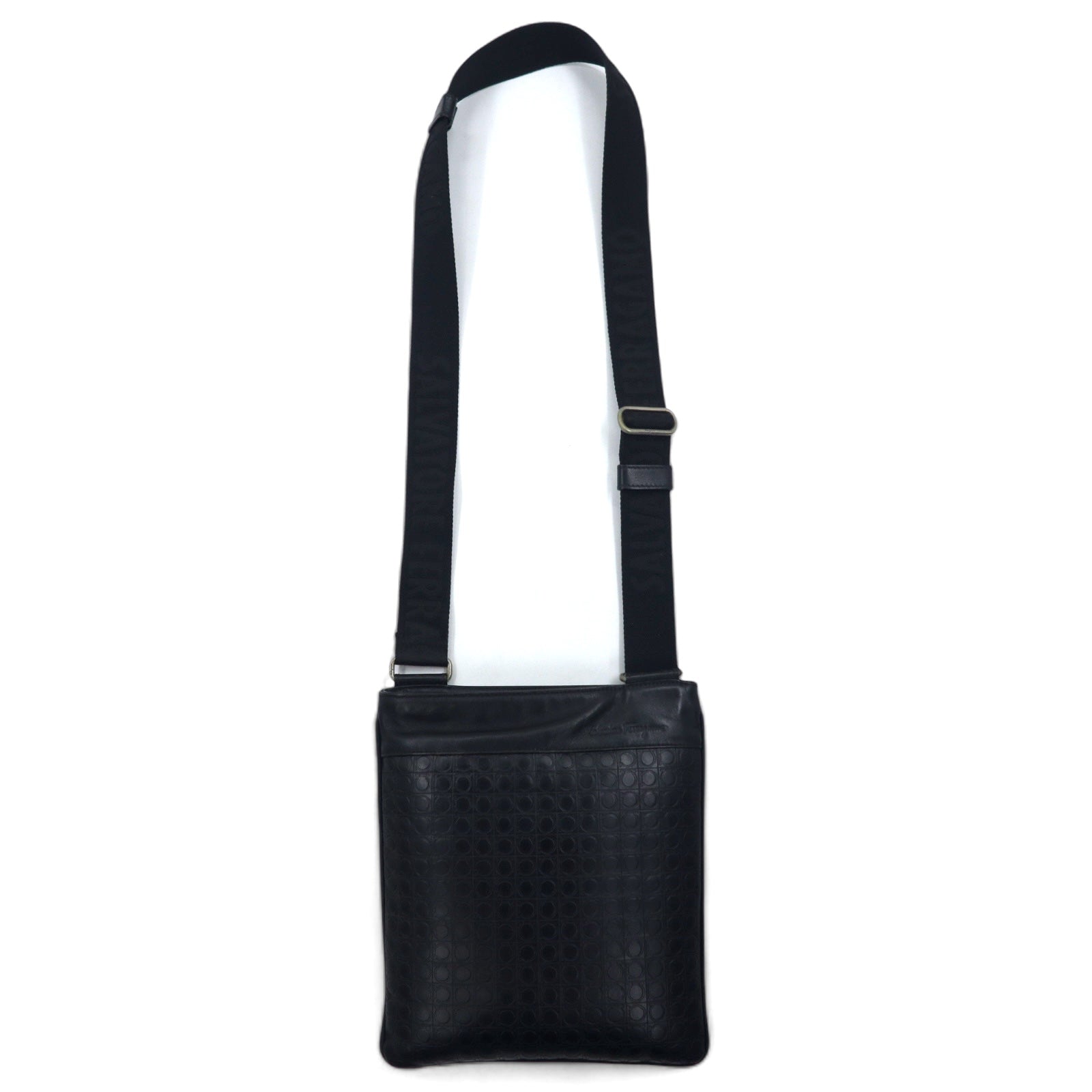 Salvatore Ferragamo イタリア製 ガンマソフト ショルダーバッグ ブラック レザー ガンチーニ モノグラム 型押し FB-24 9420