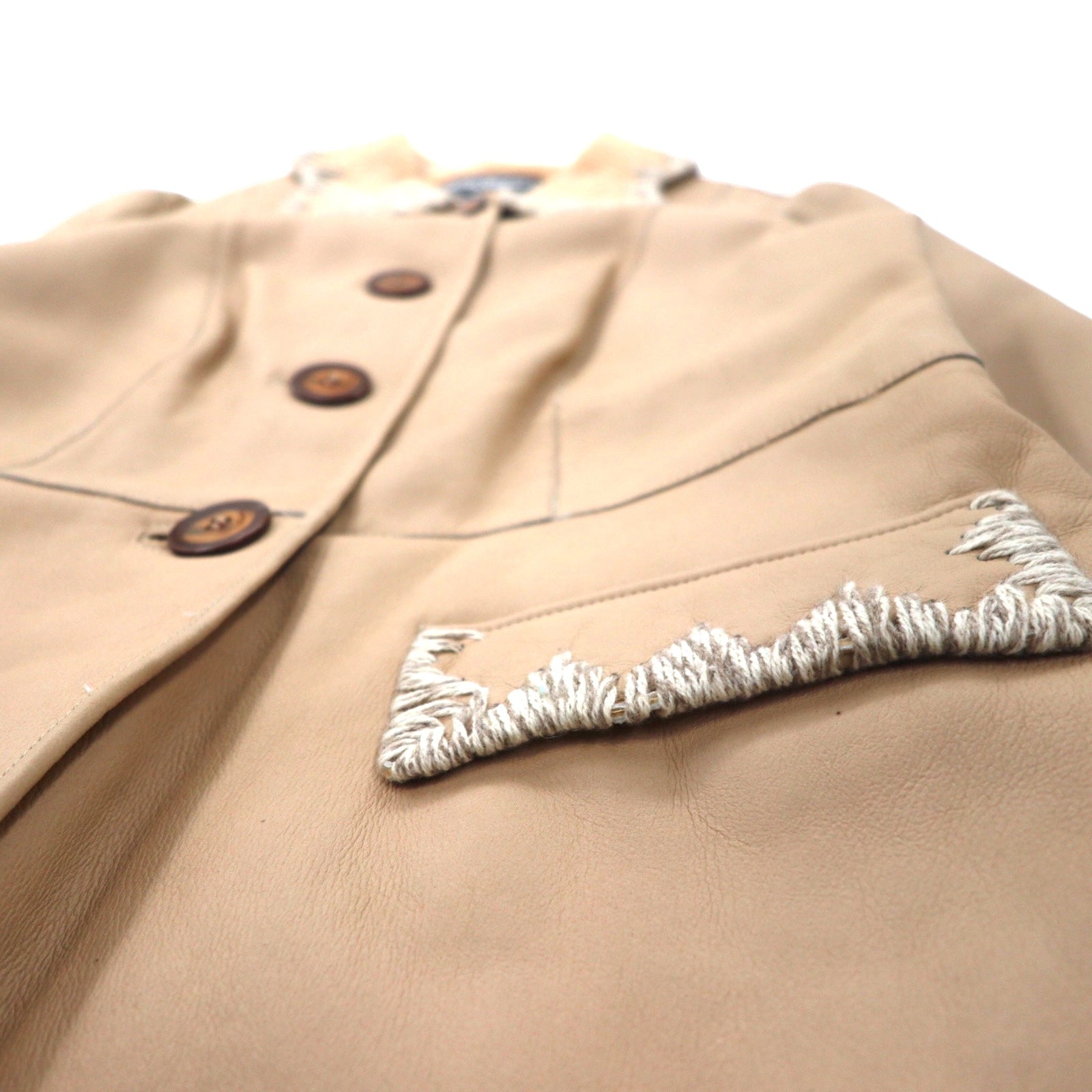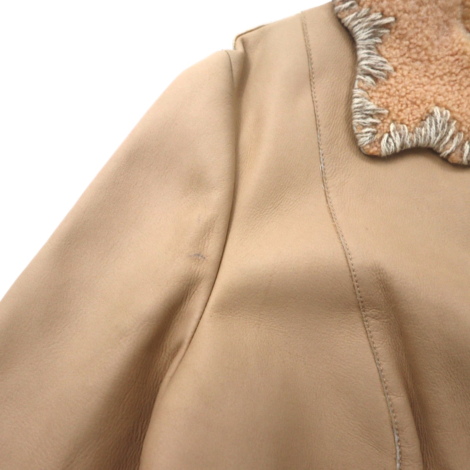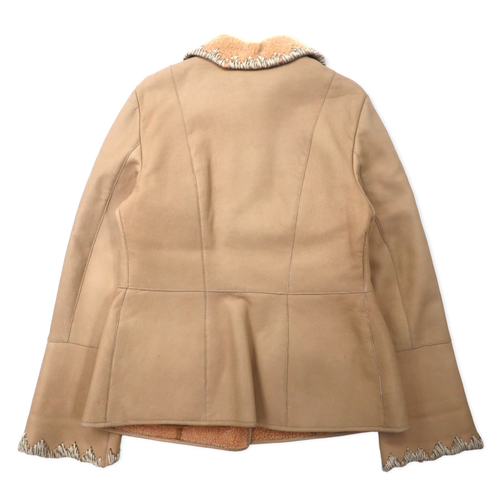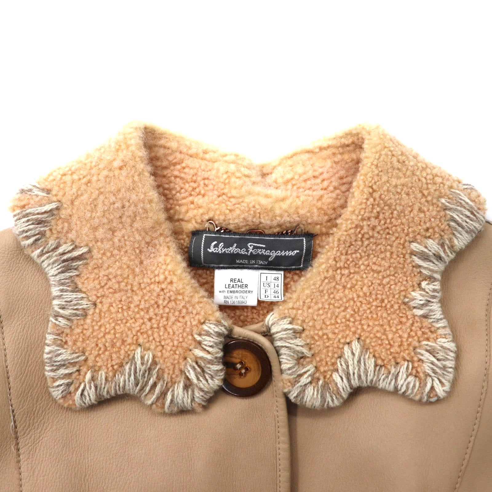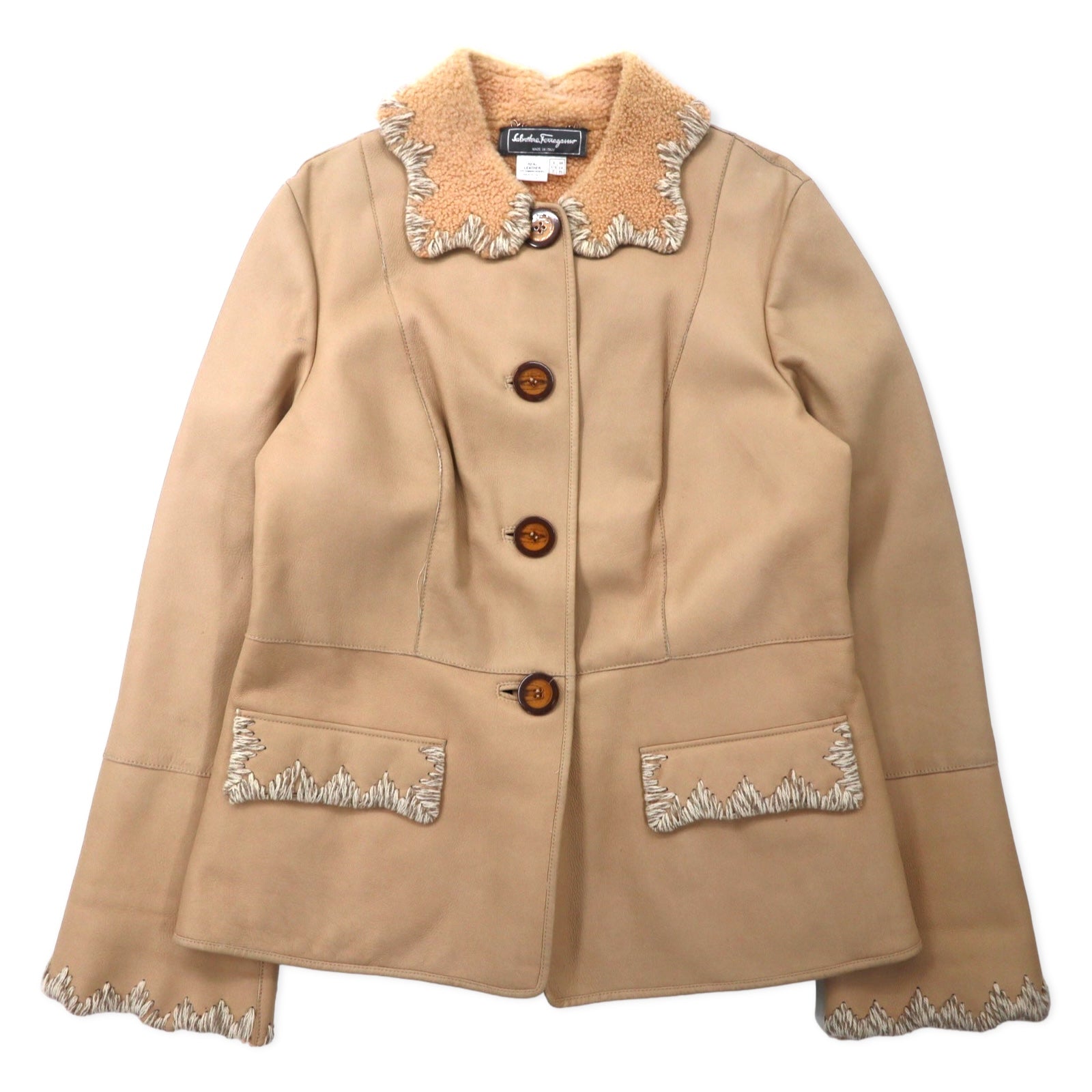 Salvatore Ferragamo イタリア製 ムートンジャケット 48 ベージュ レザー 刺繍 飾りボタン