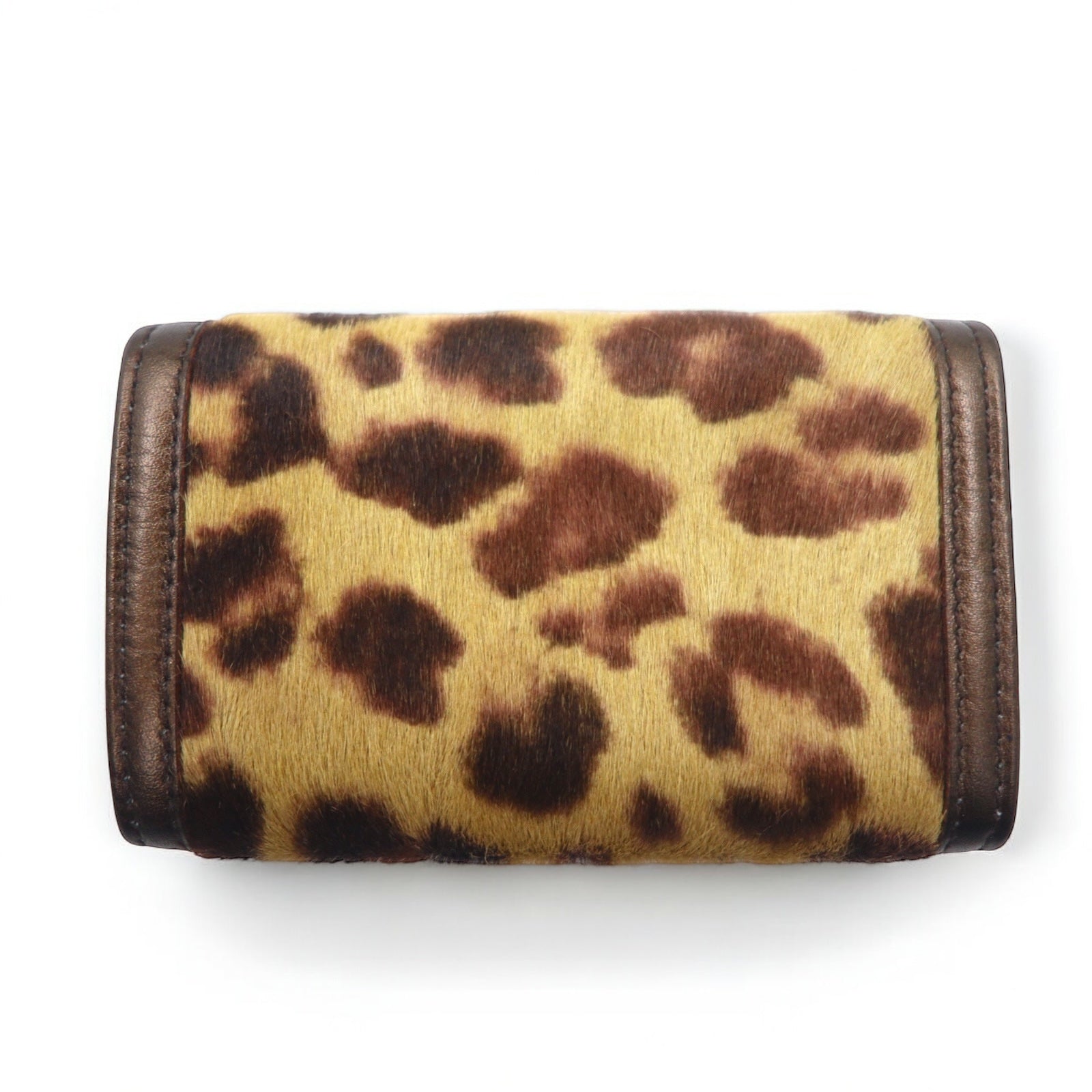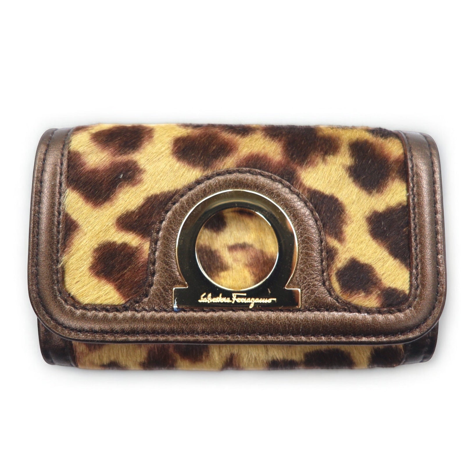 Salvatore Ferragamo イタリア製 6連 ガンチーニ ハラコ キーケース レオパード柄 ブラウン AQ-221787