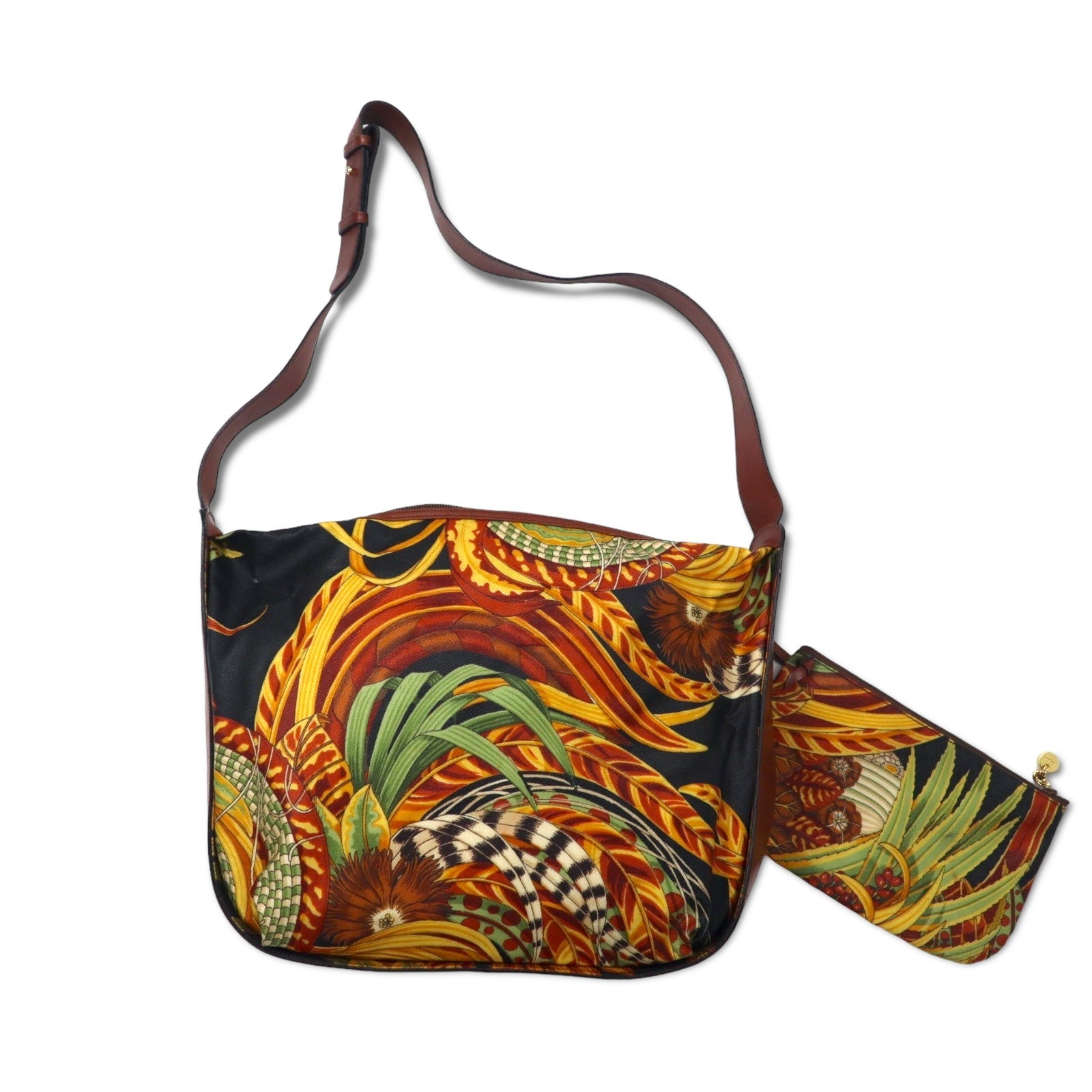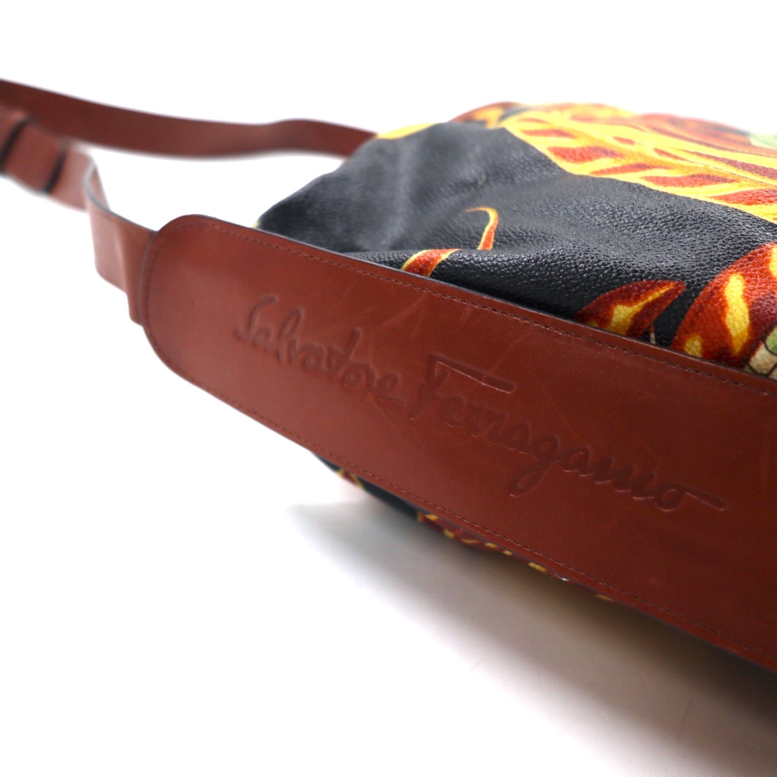 Salvatore Ferragamo ショルダーバッグ マルチカラー PVC レザー 総柄 スカーフ ボタニカル ポーチ付き AD21 1284 イタリア製