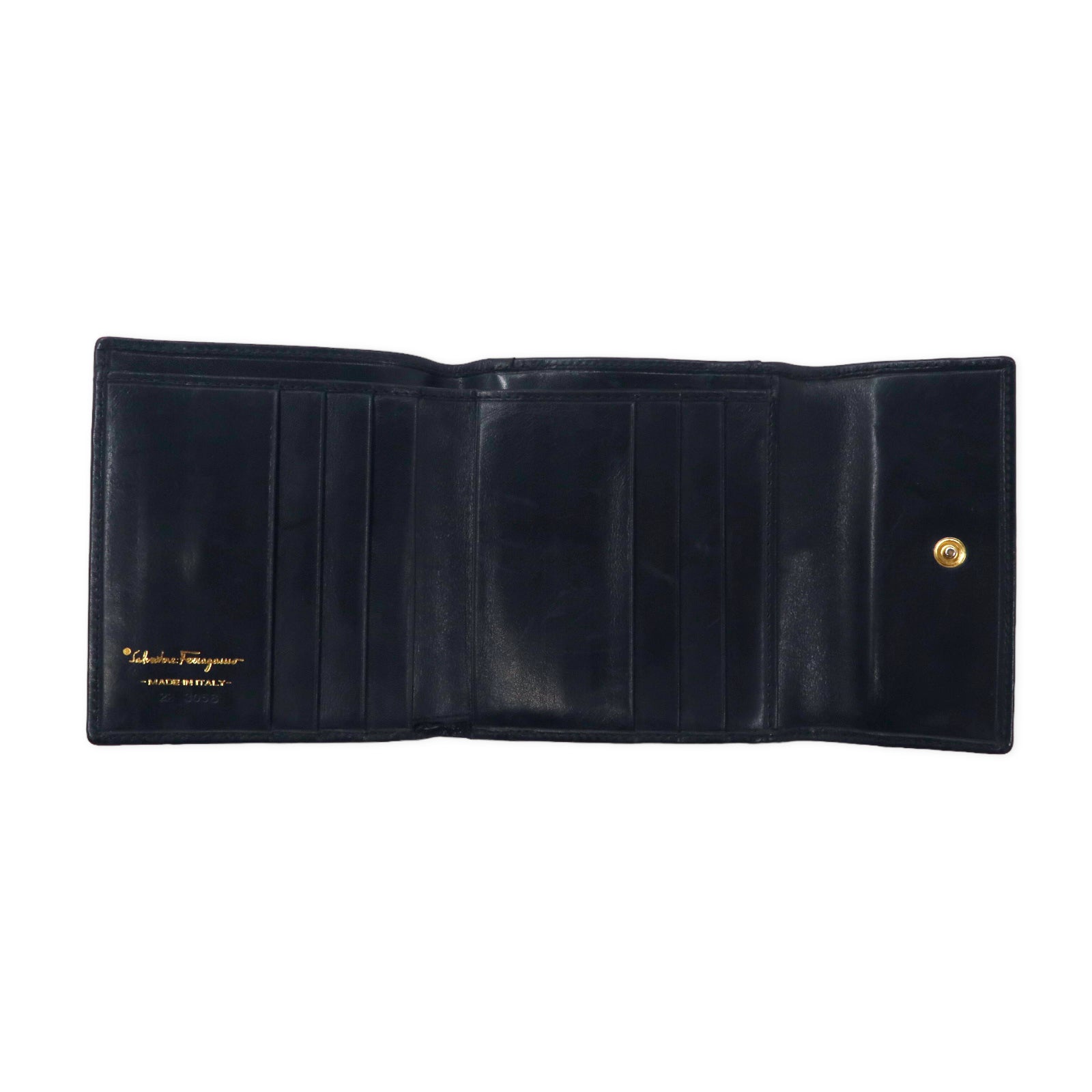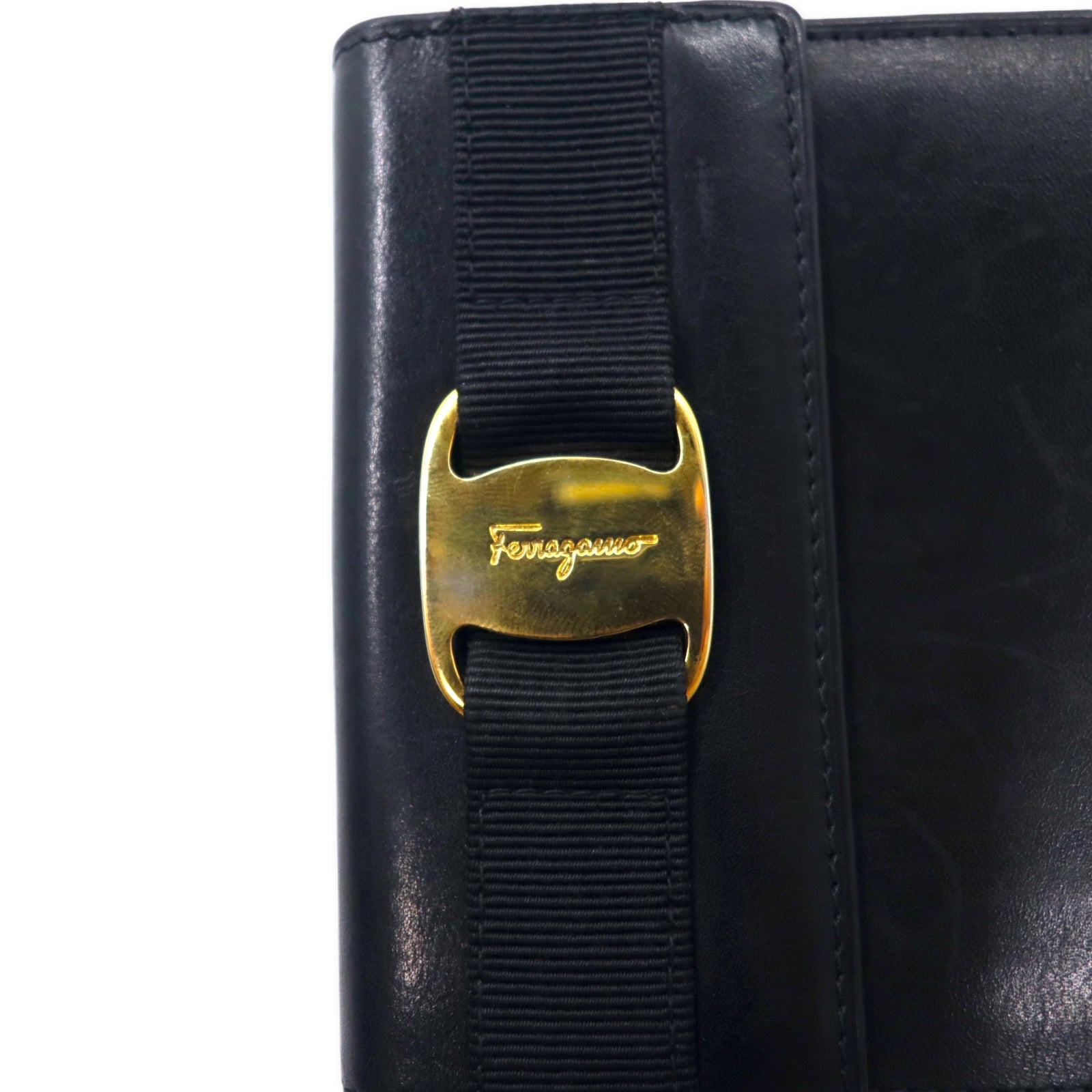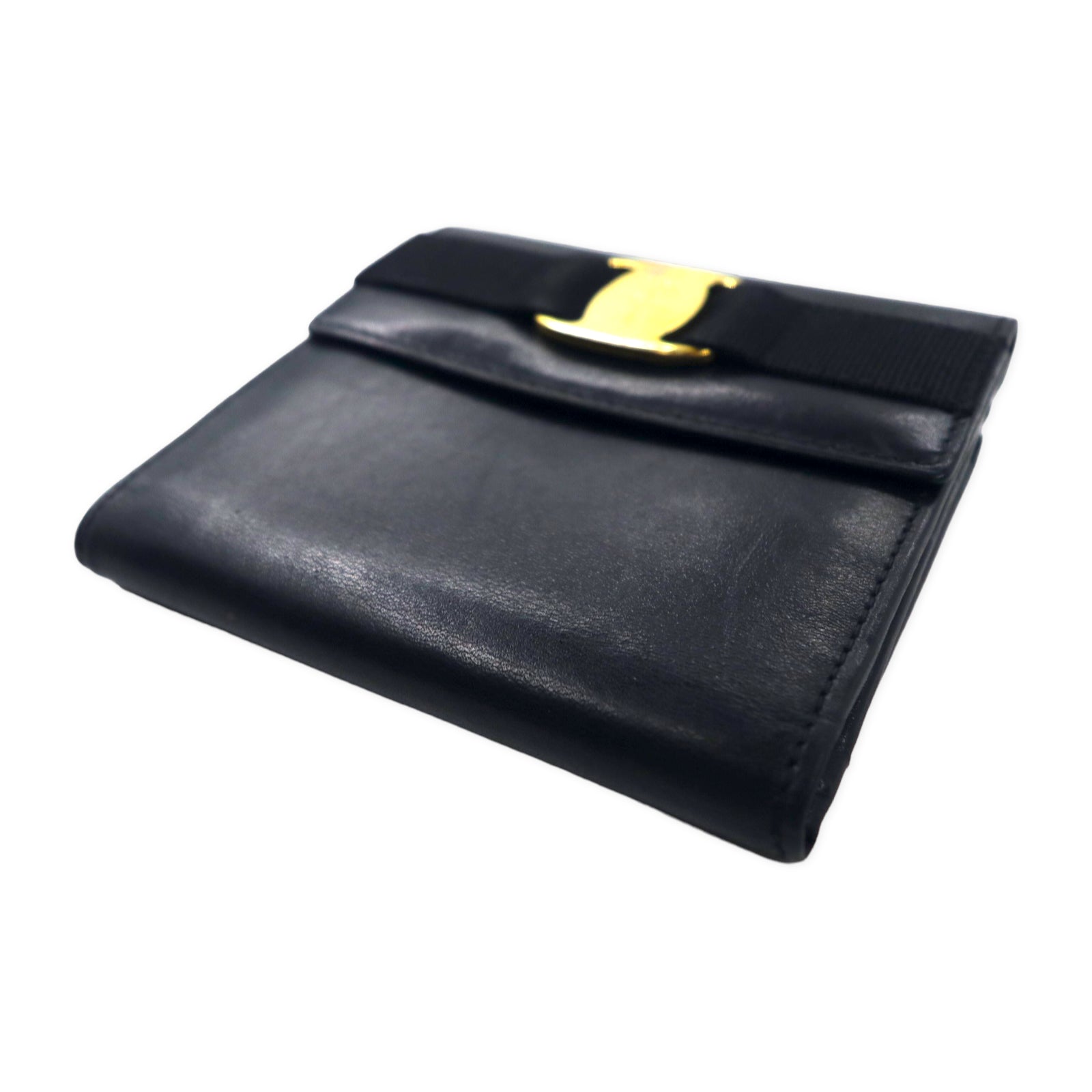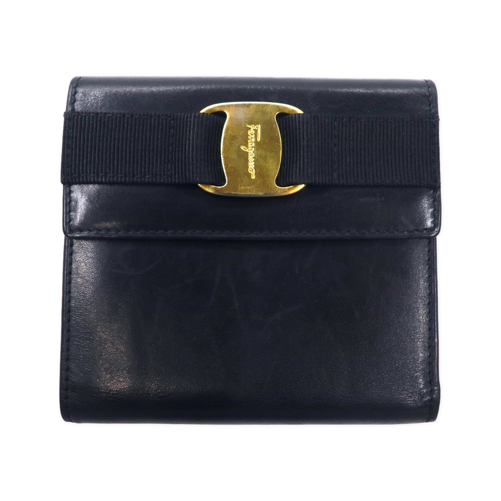 Salvatore Ferragamo ヴァラリボン がま口 2つ折り財布 レザー ブラック