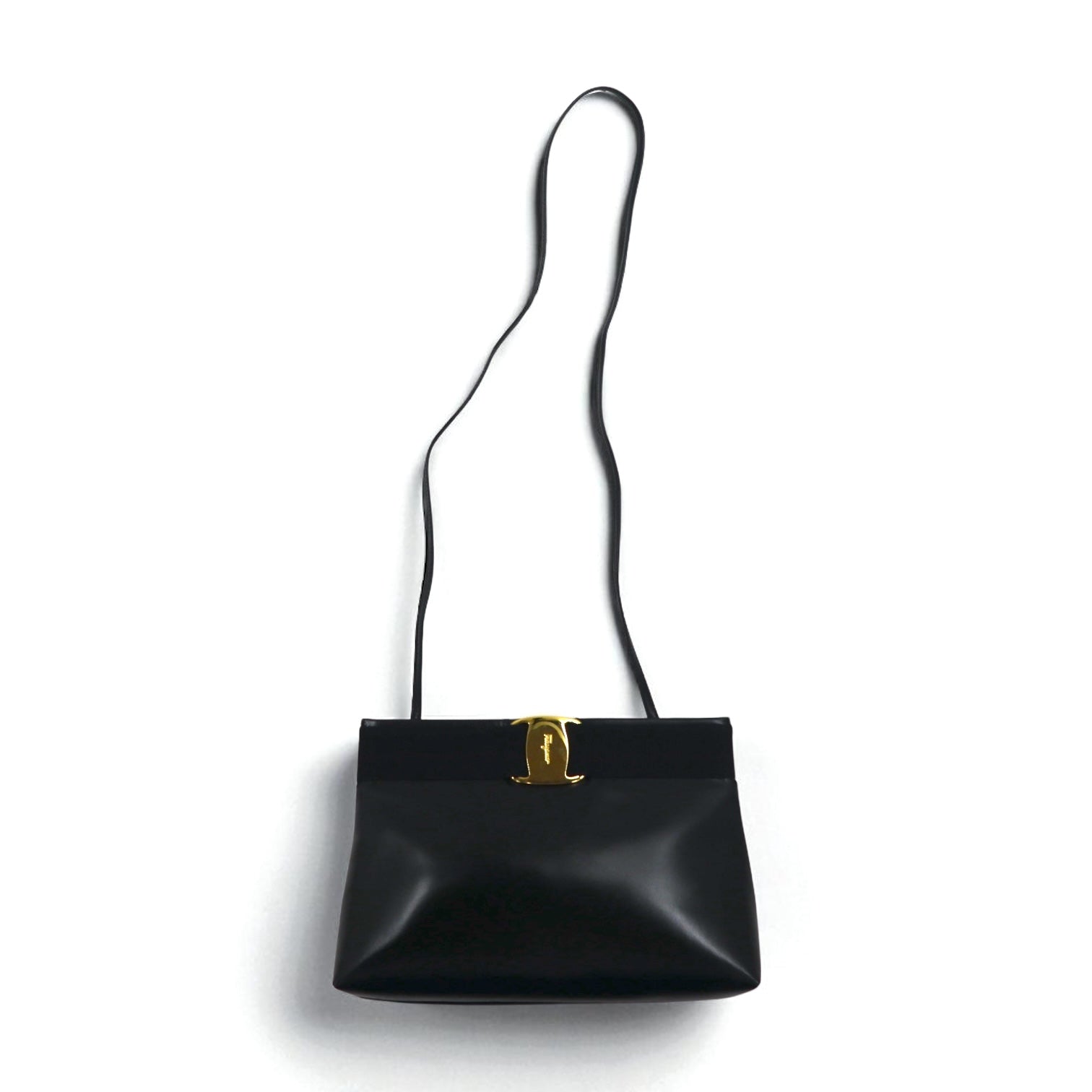 Salvatore Ferragamo 2WAY ショルダーバッグ クラッチバッグ ヴァラ リボン ブラック レザー D210588