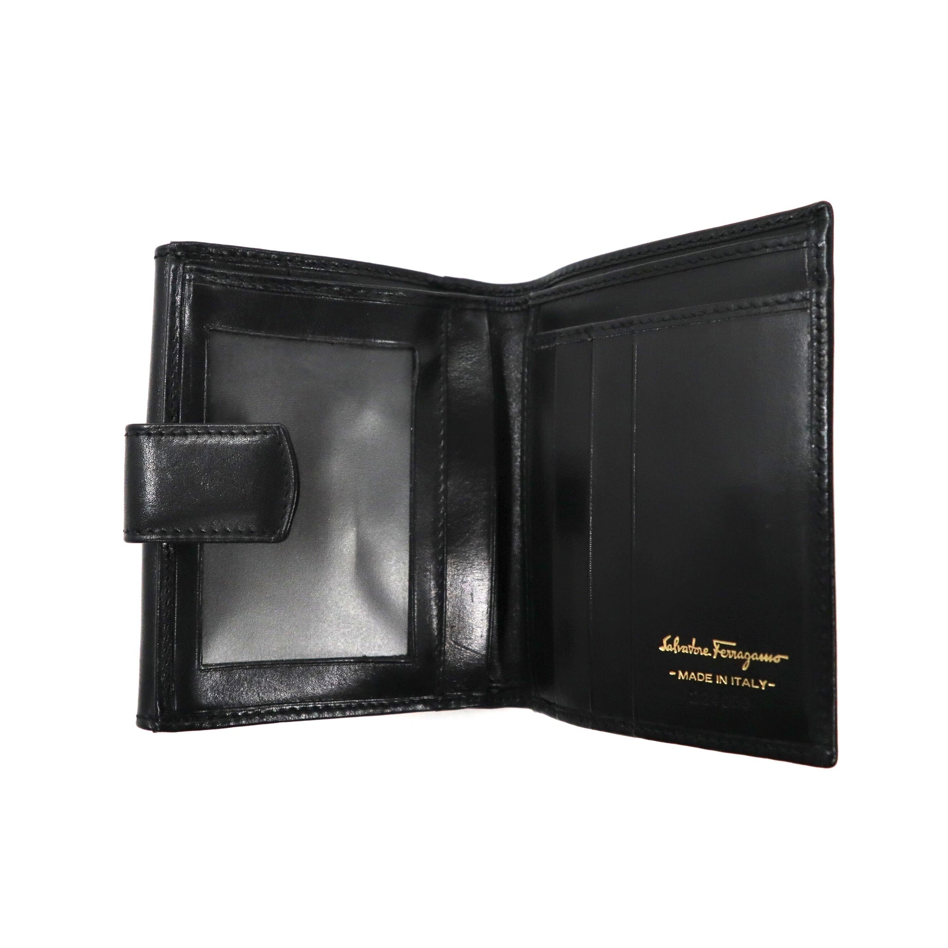 Salvatore Ferragamo 3つ折り財布 ブラック レザー ガンチーニ 金具 224059 イタリア製
