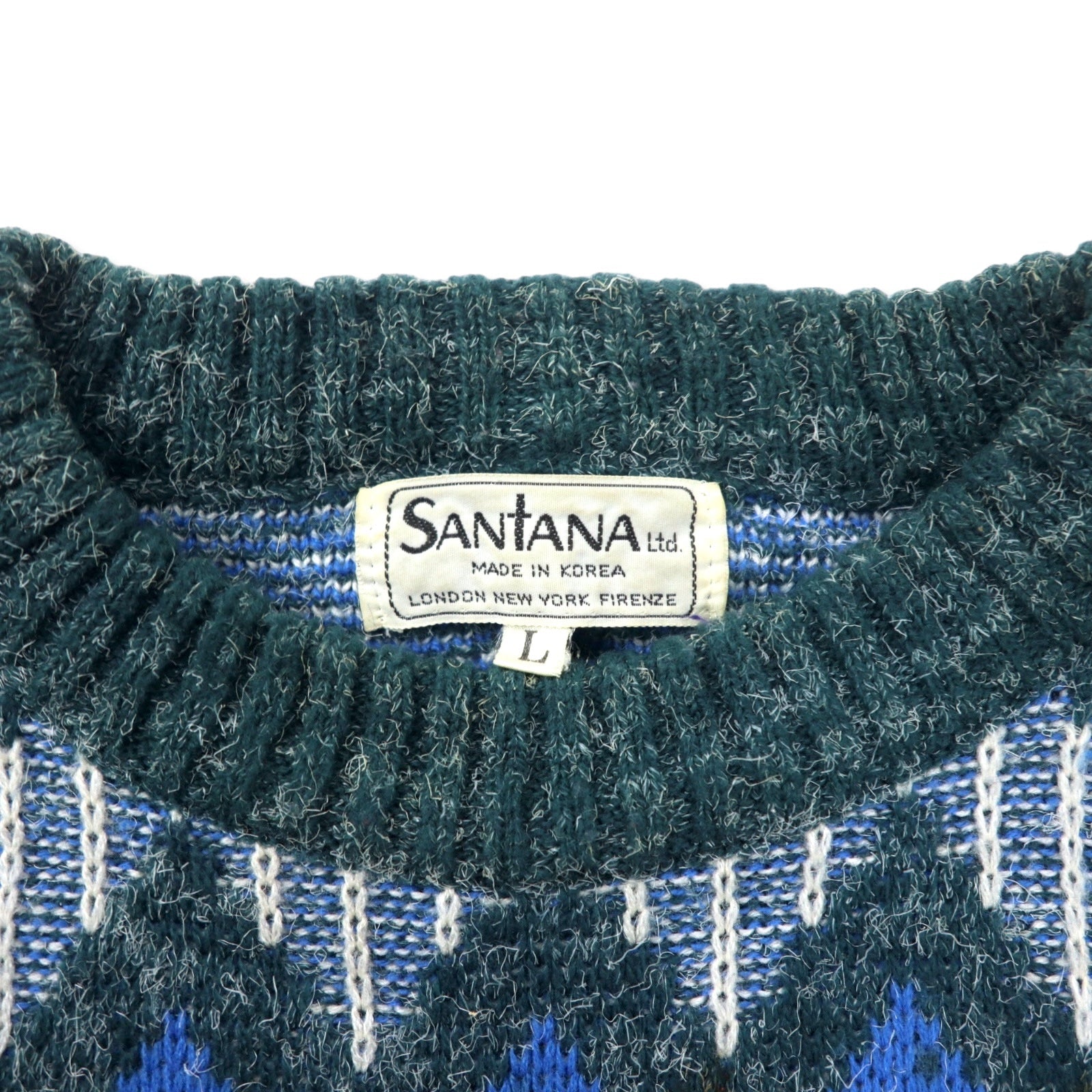 SANTANA 90年代 総柄 ニット セーター L グレー アクリル
