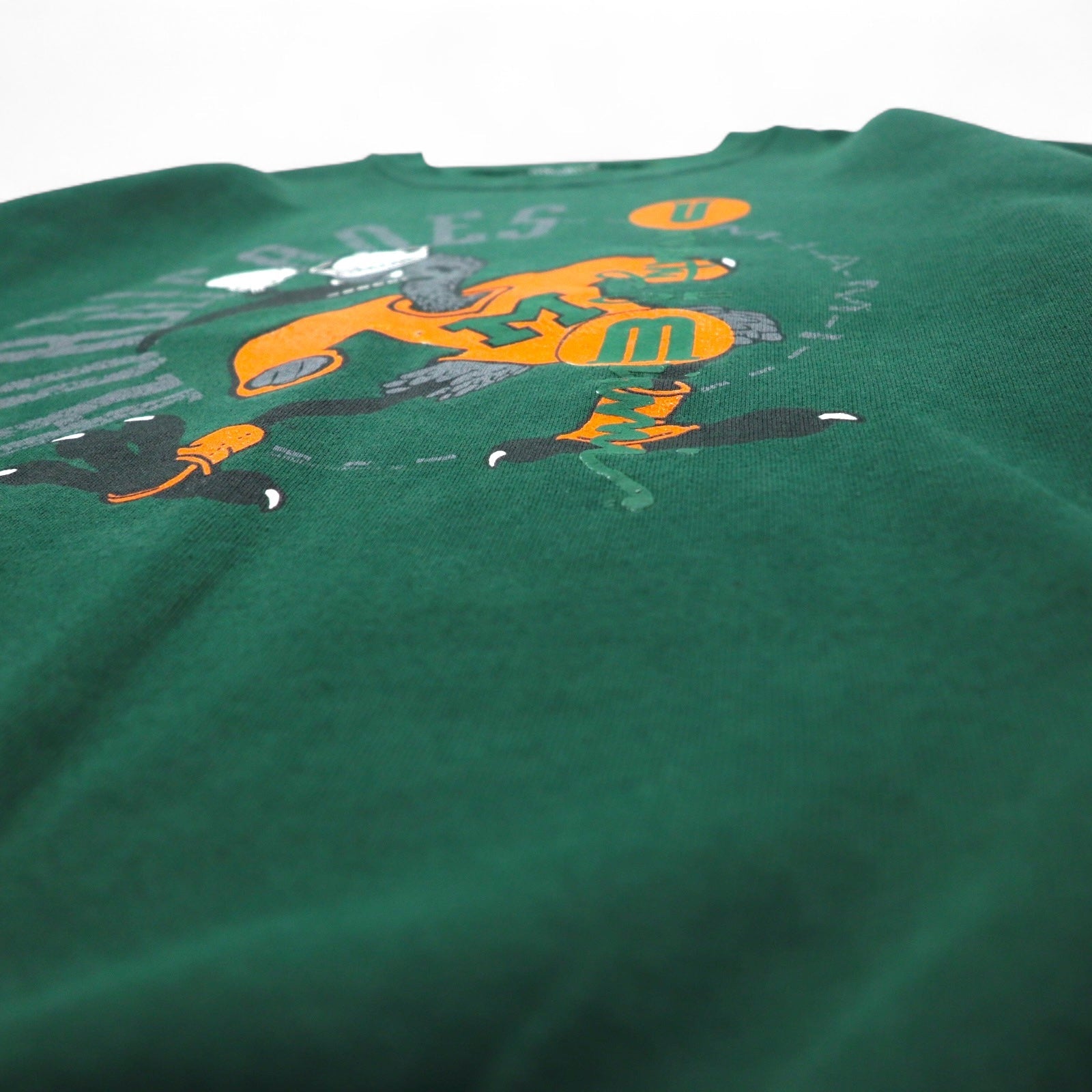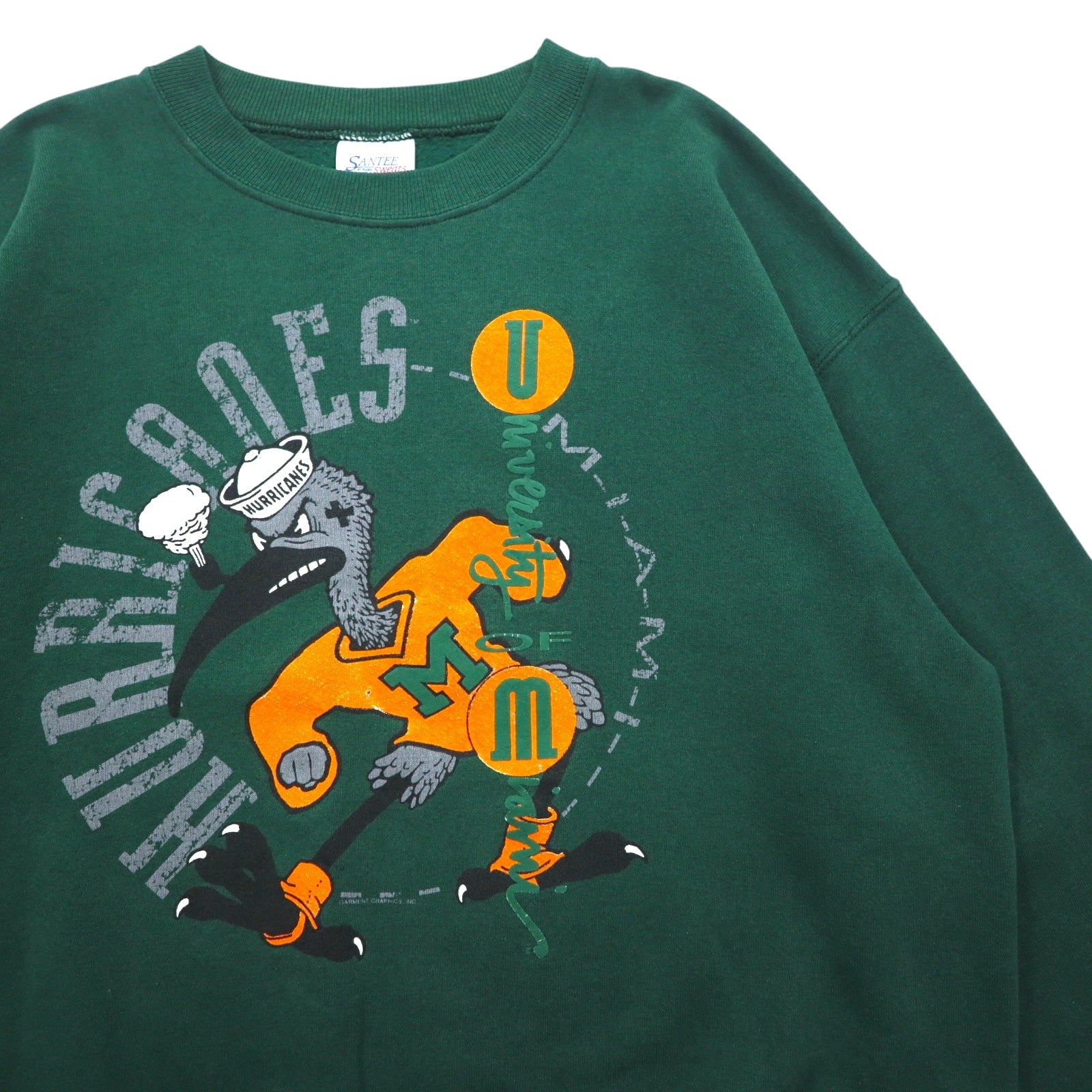 SANTEE by PLUMA USA製 90年代 NCAA カレッジ プリント スウェット L グリーン 裏起毛 Miami Hurricanes