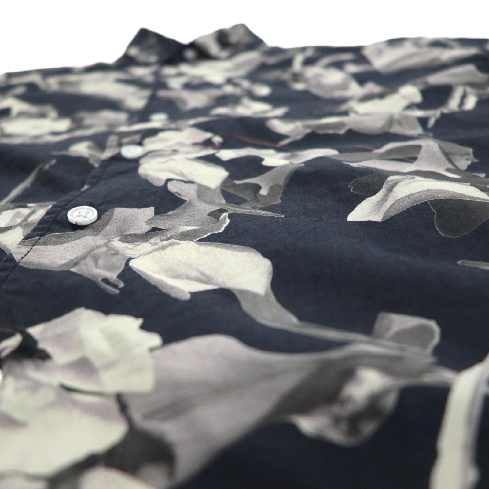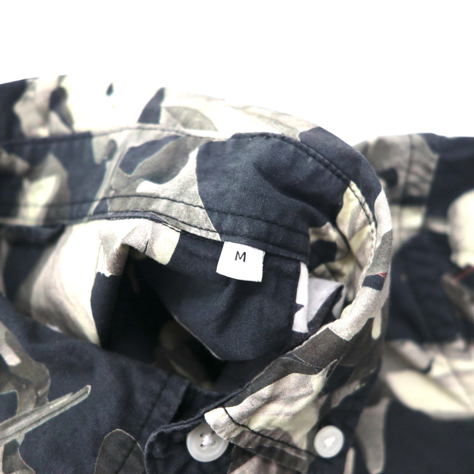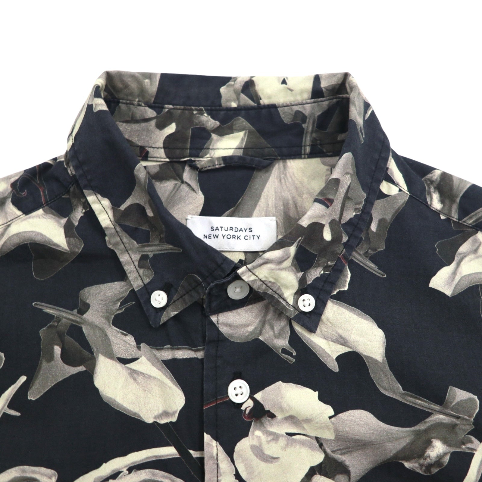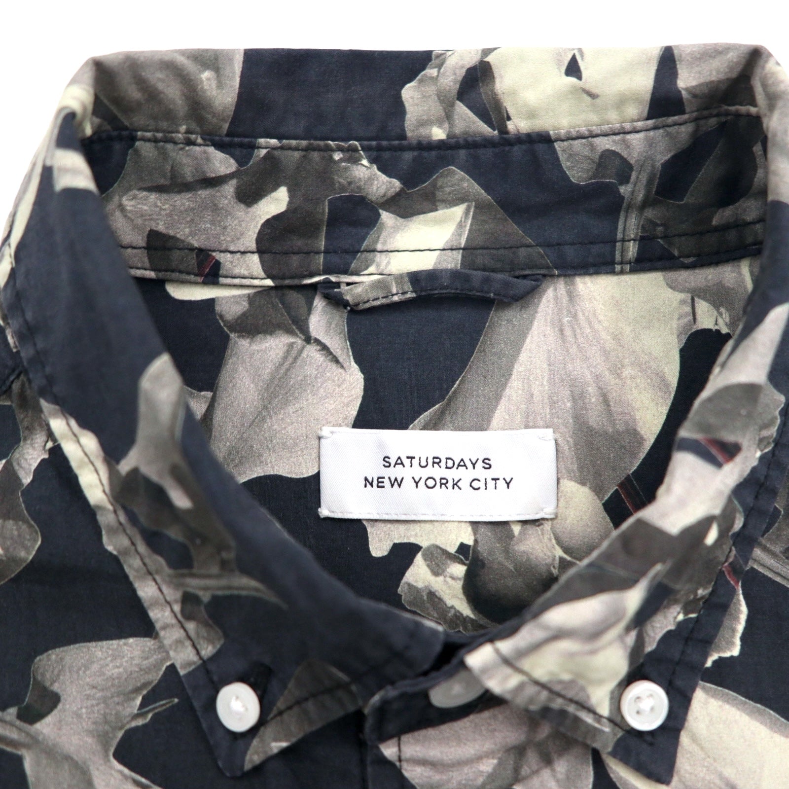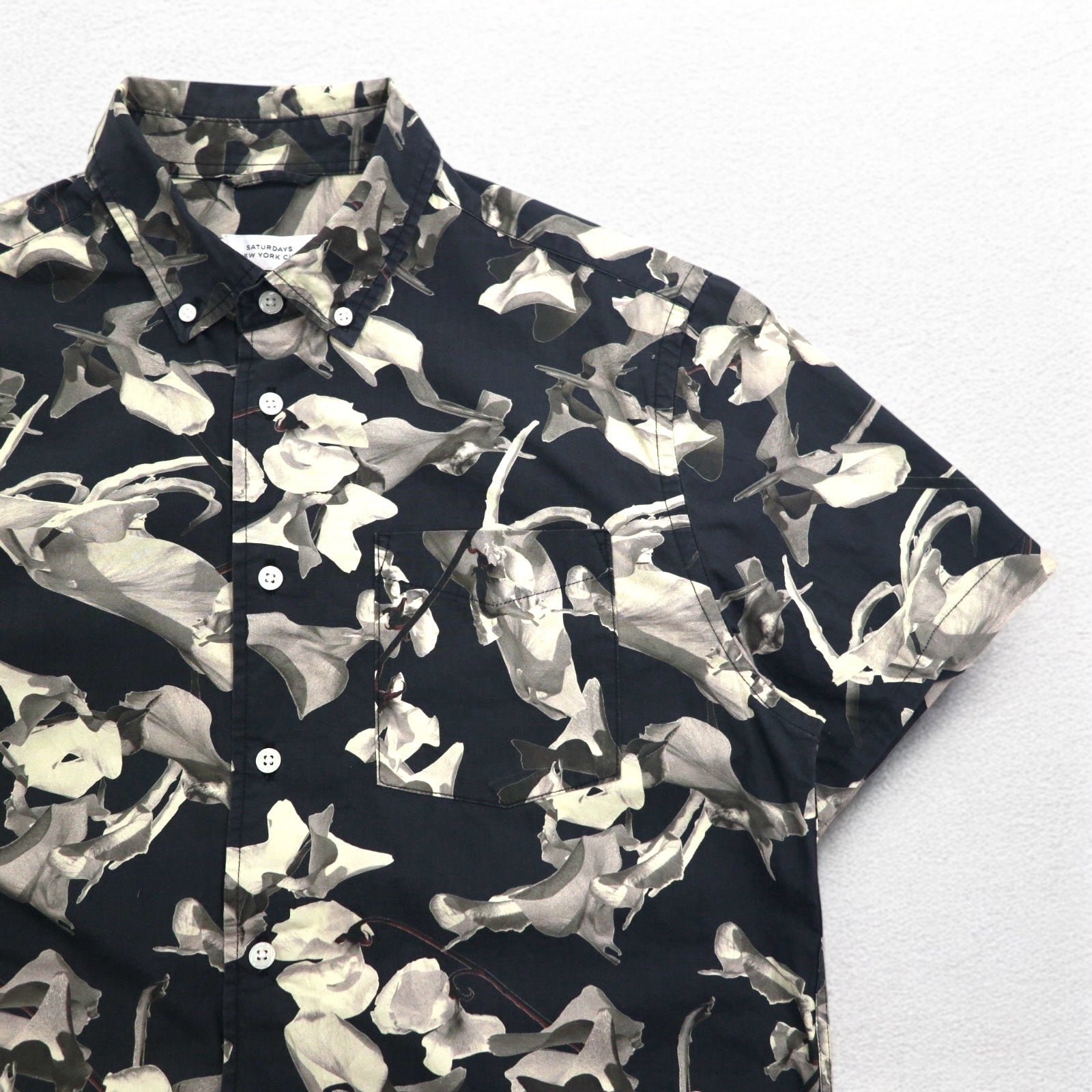SATURDAYS NYC 半袖 ボタンダウンシャツ M ブラック モノトーン コットン 総柄