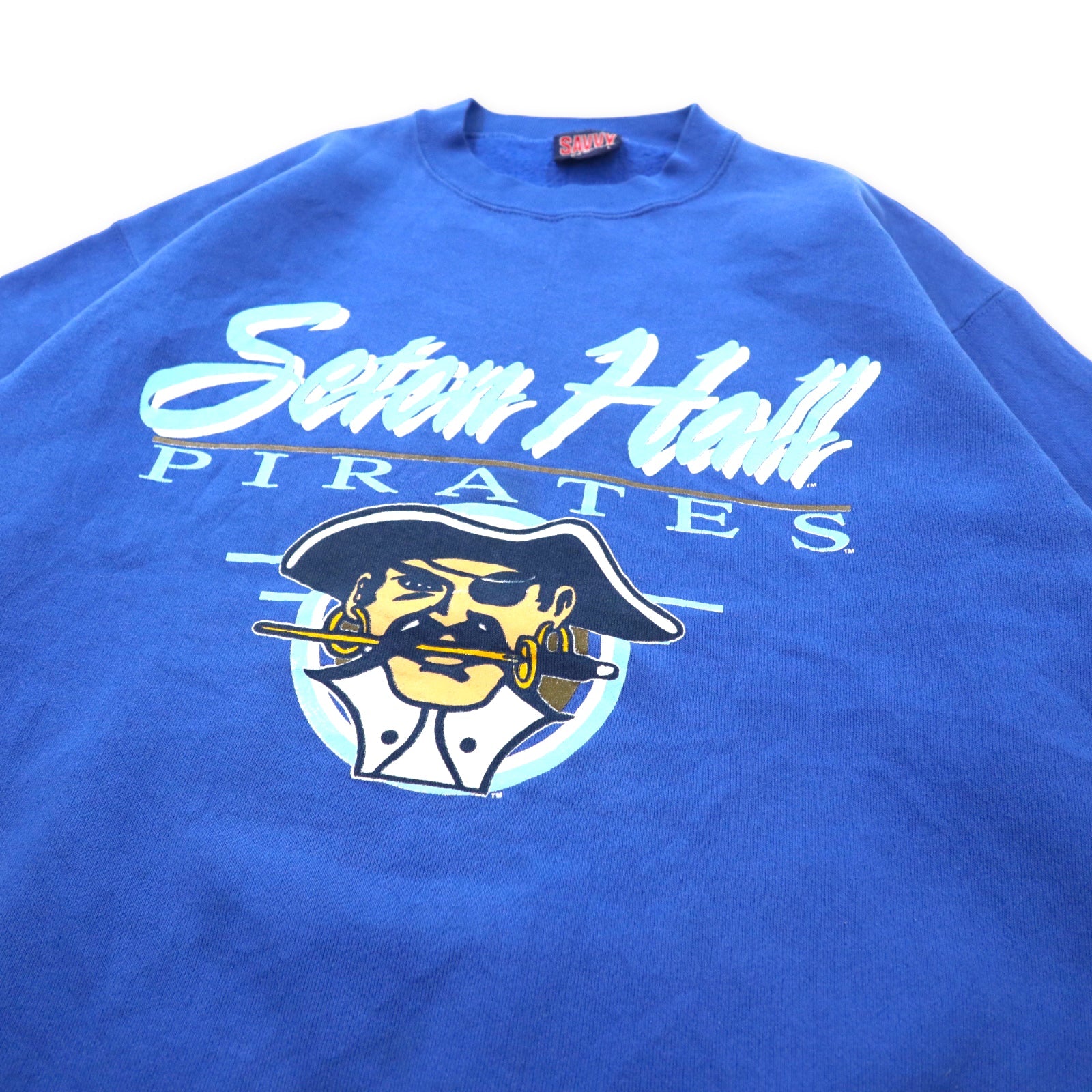 SAVVY TRAU & LOEVNER 90年代 プリントスウェット L ブルー コットン NCAA Seton Hall PIRATES