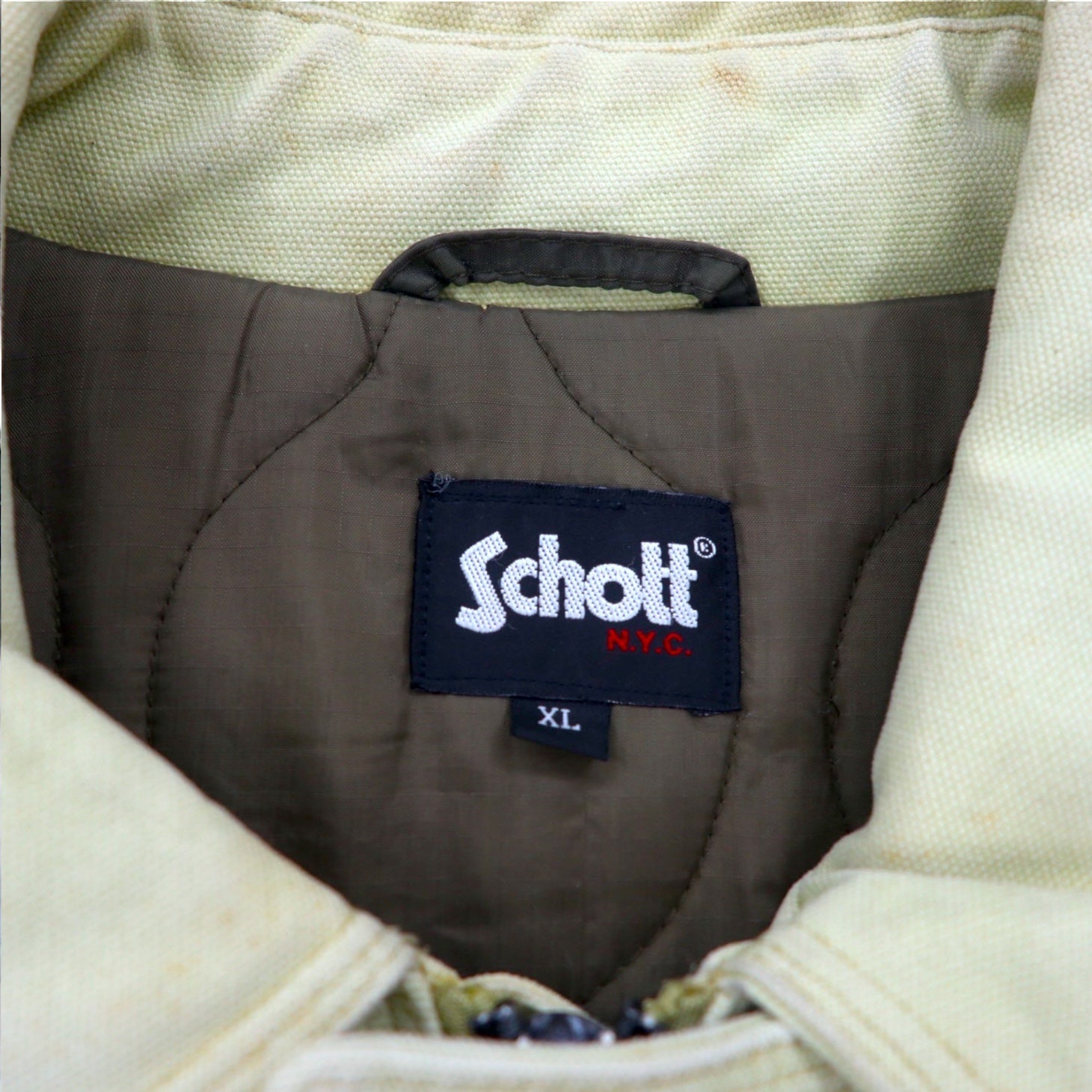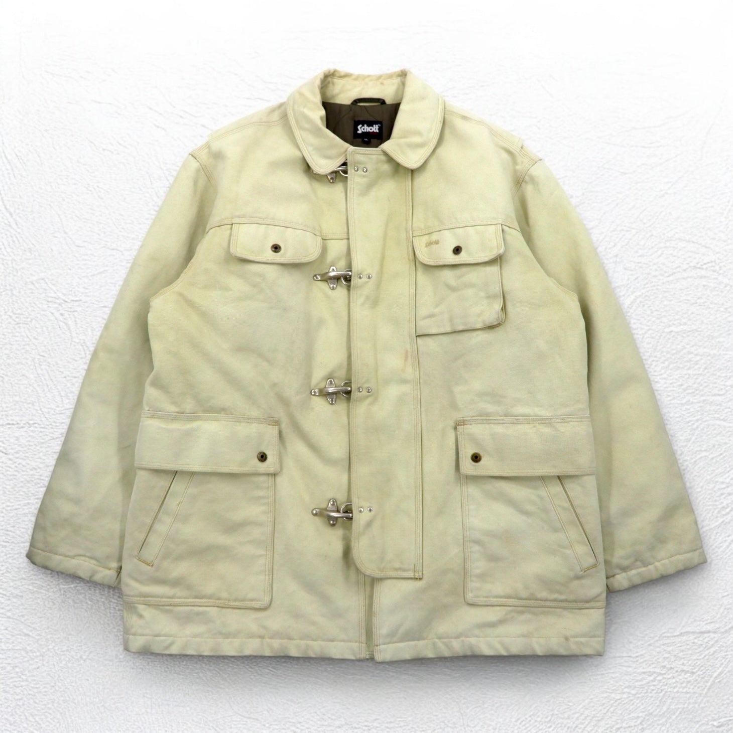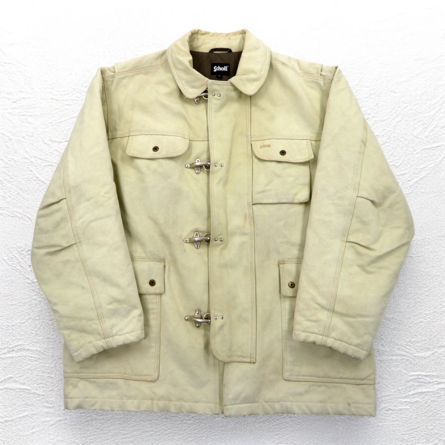 Schott ファイヤーマンジャケット ダック ワークジャケット カバーオール XL ベージュ 中綿 キルティングライナー