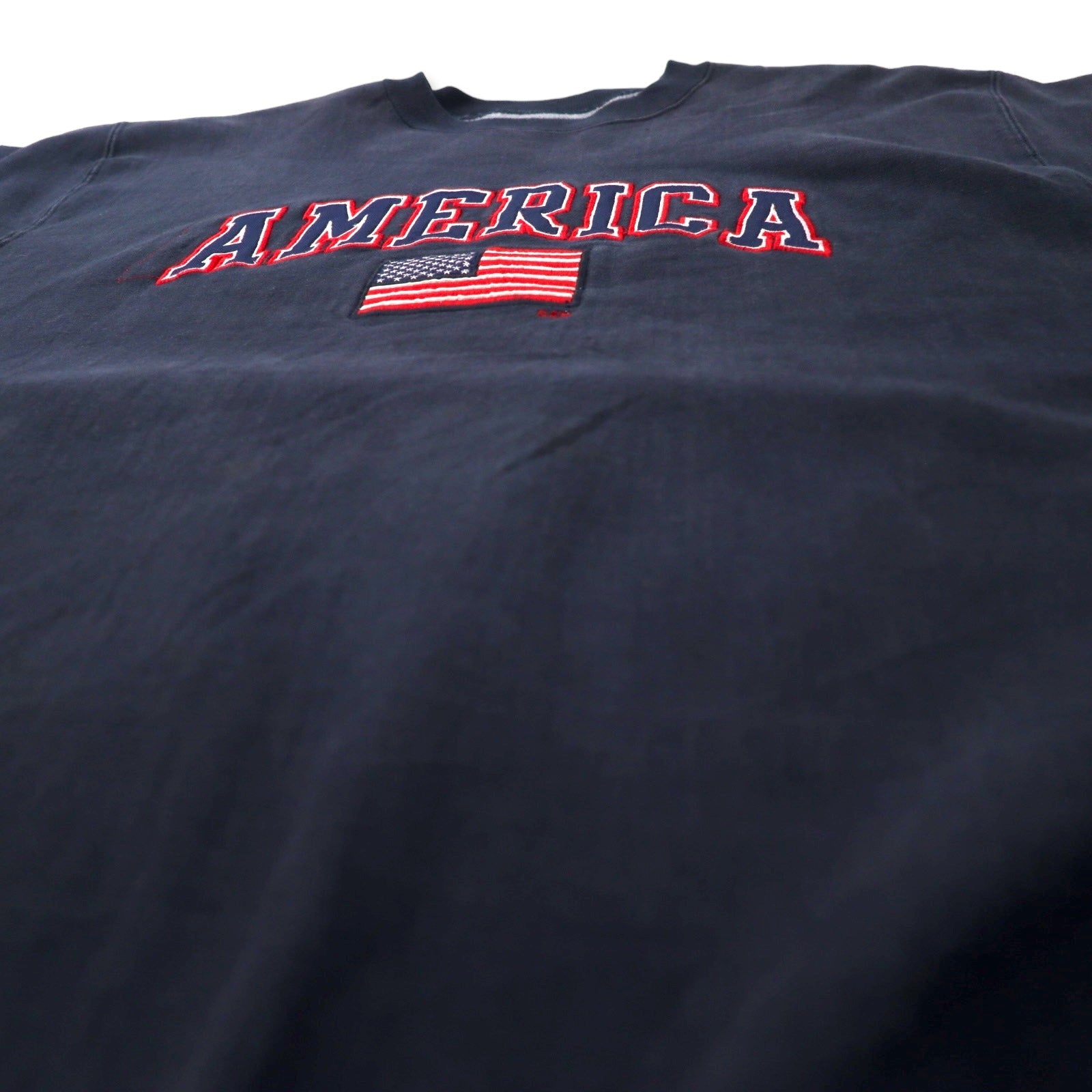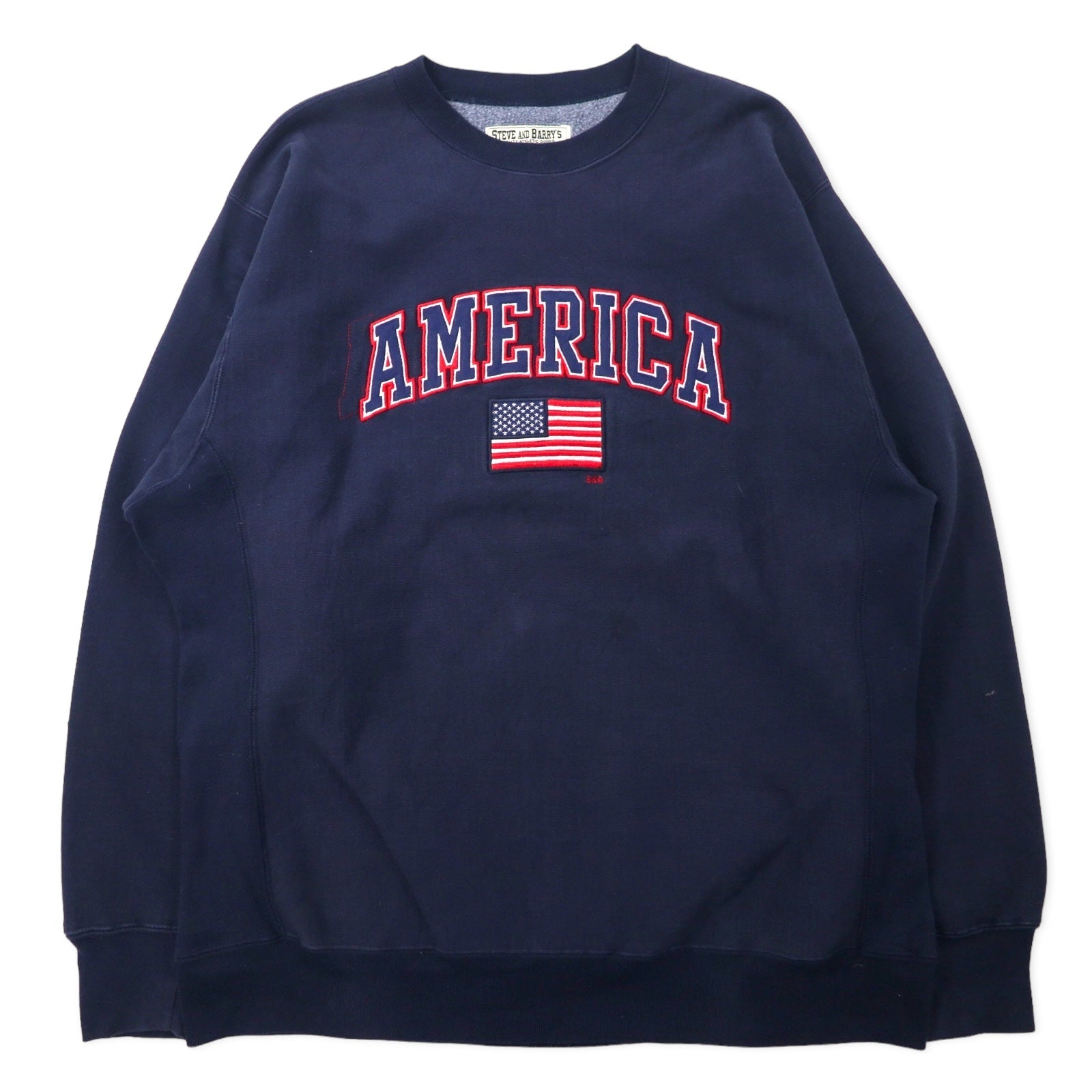 STEVE AND BARRY'S リバースウィーブ スウェット L ネイビー コットン パキ綿 裏起毛 AMERICA 星条旗 ビッグサイズ