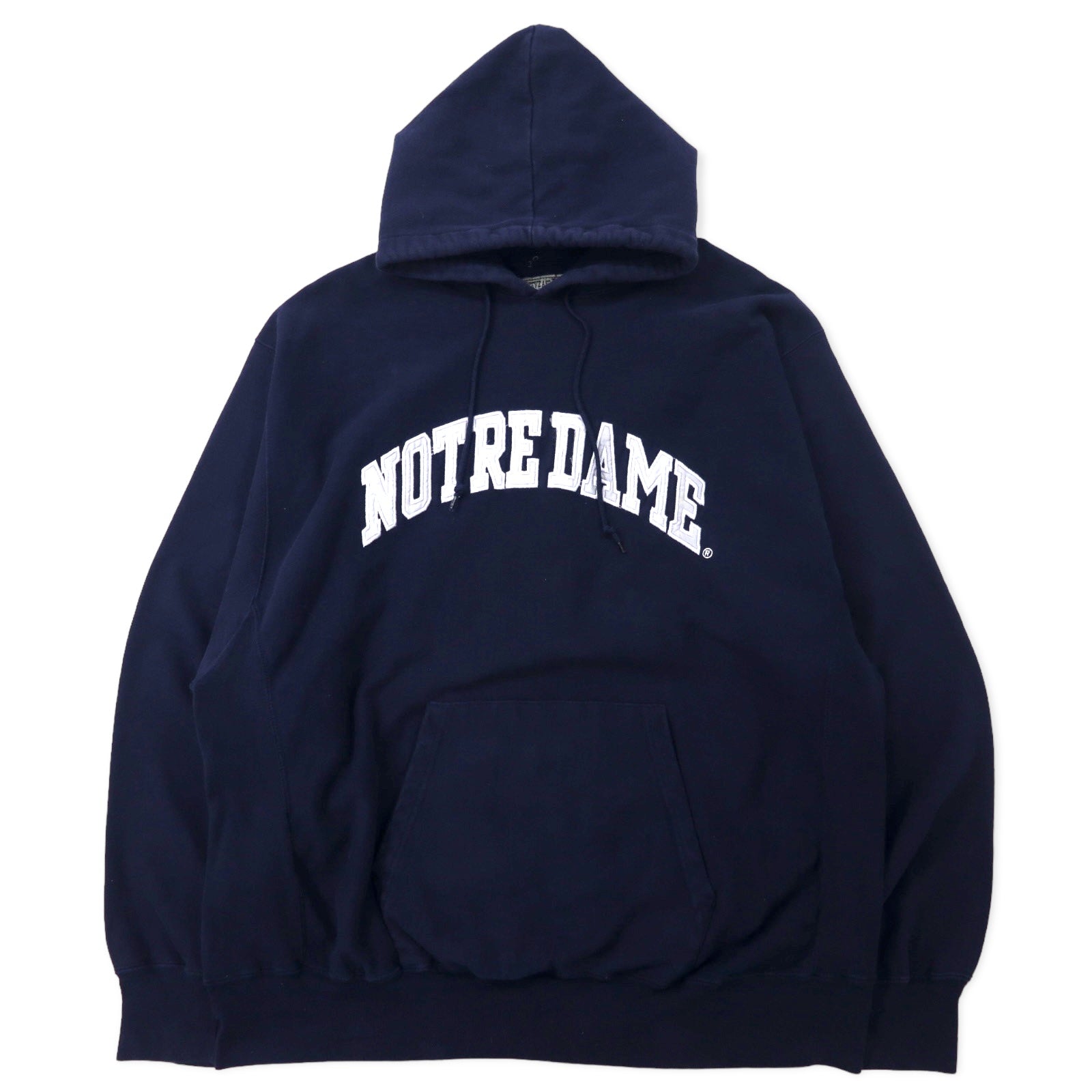 STEVE AND BARRY'S リバースウィーブ プルオーバーパーカー XXL ネイビー コットン パキ綿 カレッジ NOTREDAME ビッグサイズ