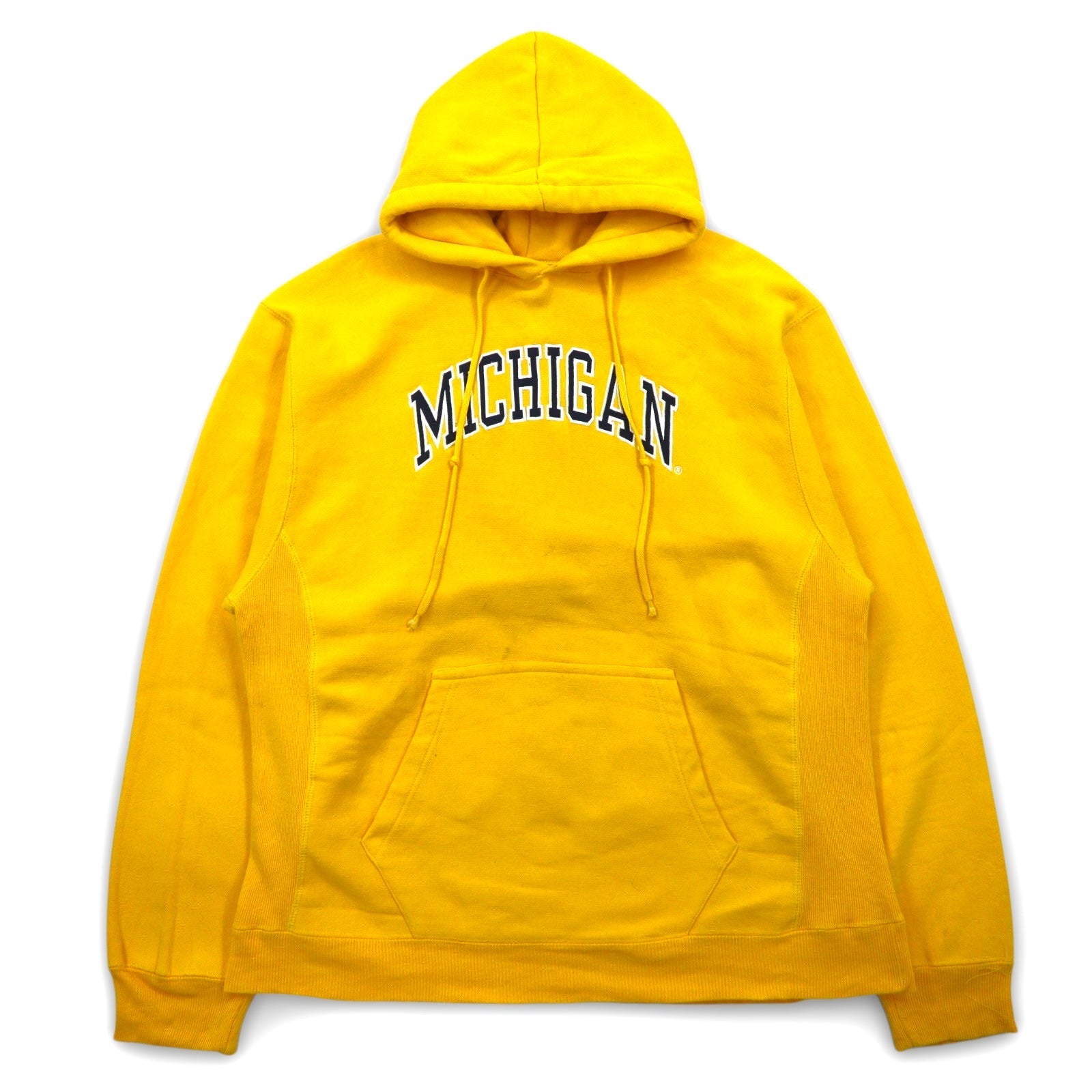 STEVE AND BARRY'S リバースウィーブ プルオーバー パーカー M イエロー MICHIGAN アーチロゴ ビッグサイズ