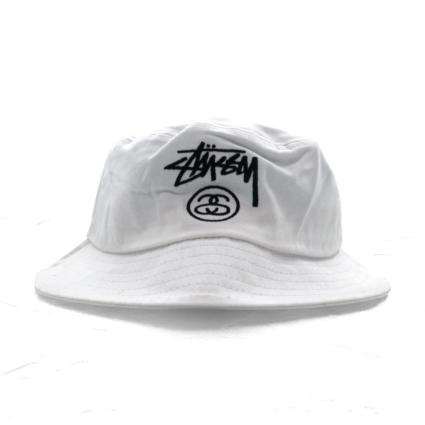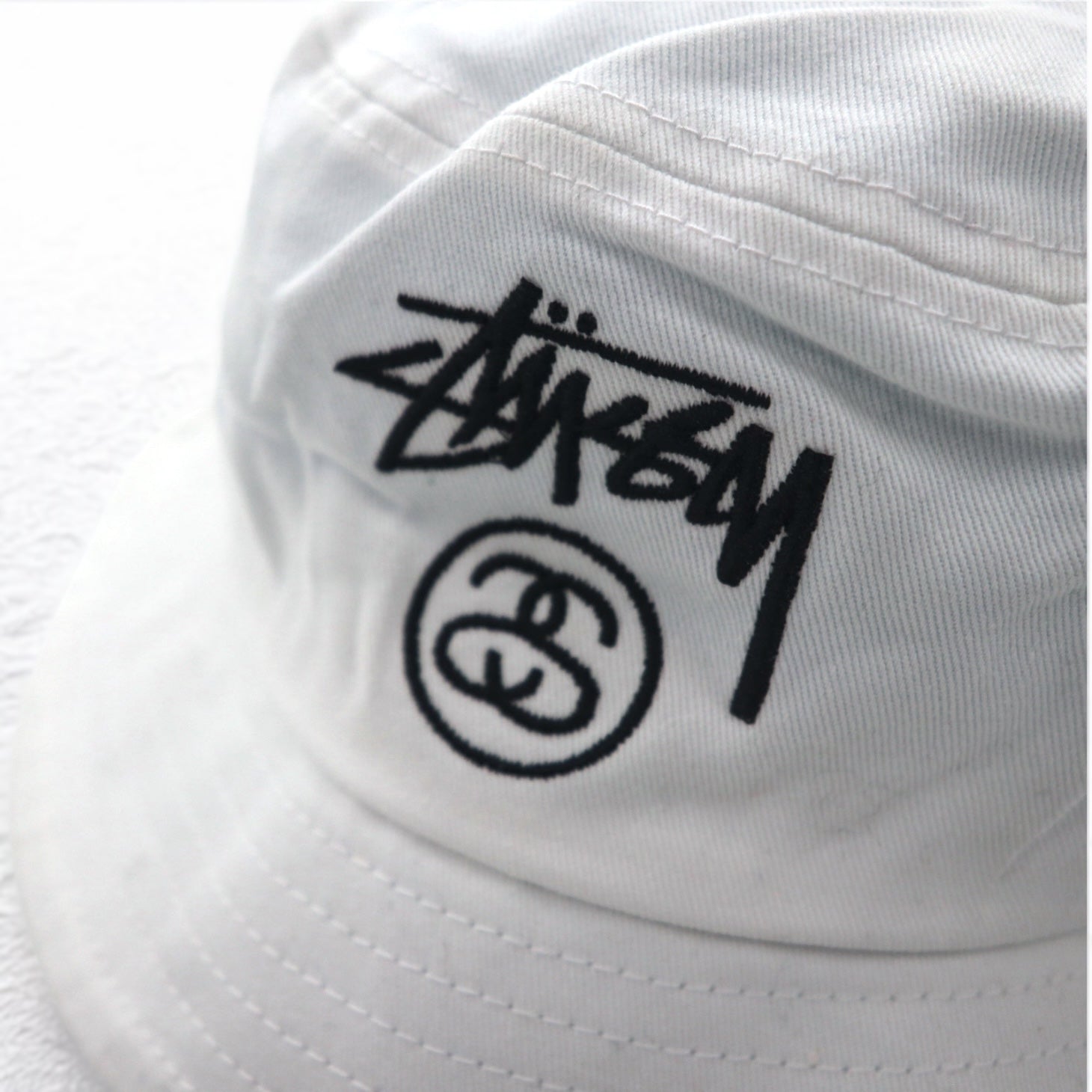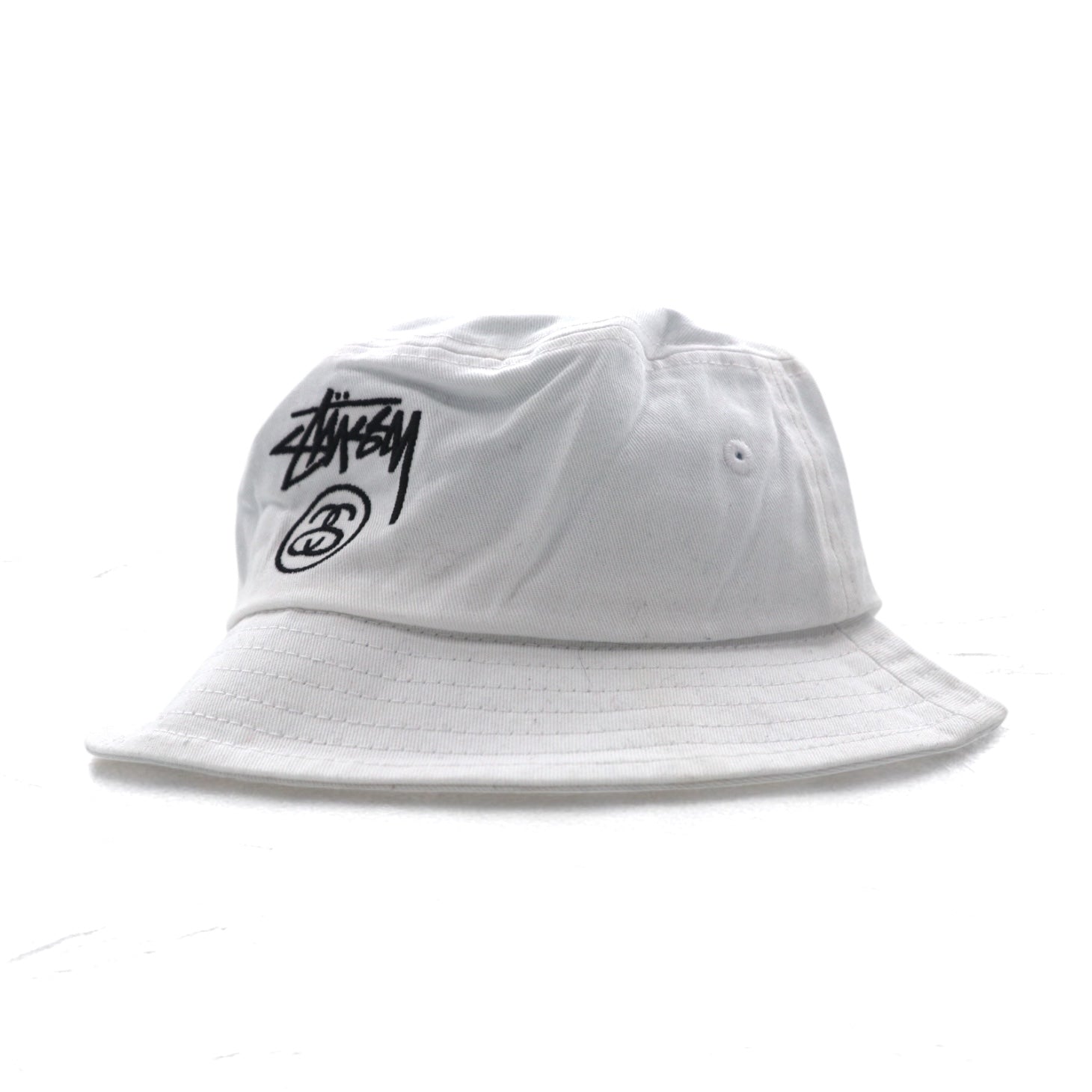 stussy シャネルロゴ バケットハット S/M ホワイト コットン 刺繍