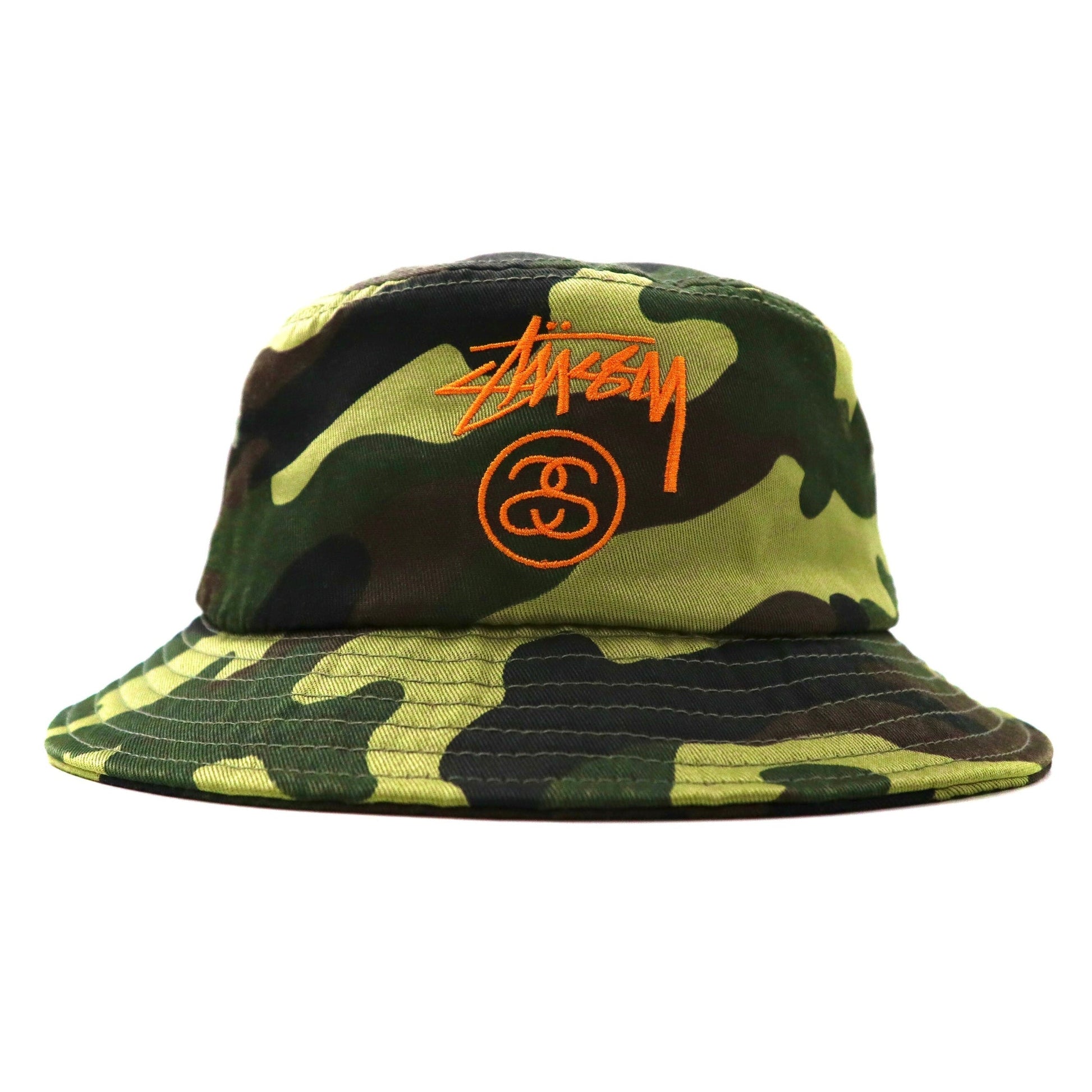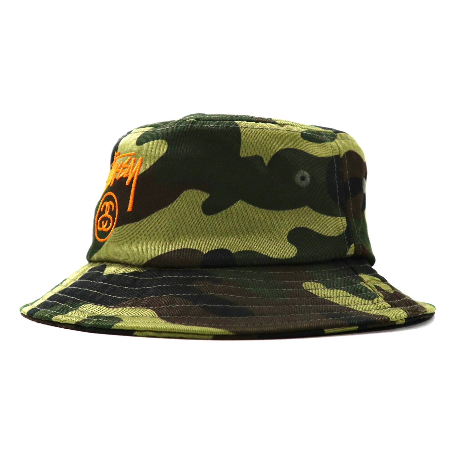 STUSSY バケットハット S/M カモフラ コットン シャネルロゴ刺繍