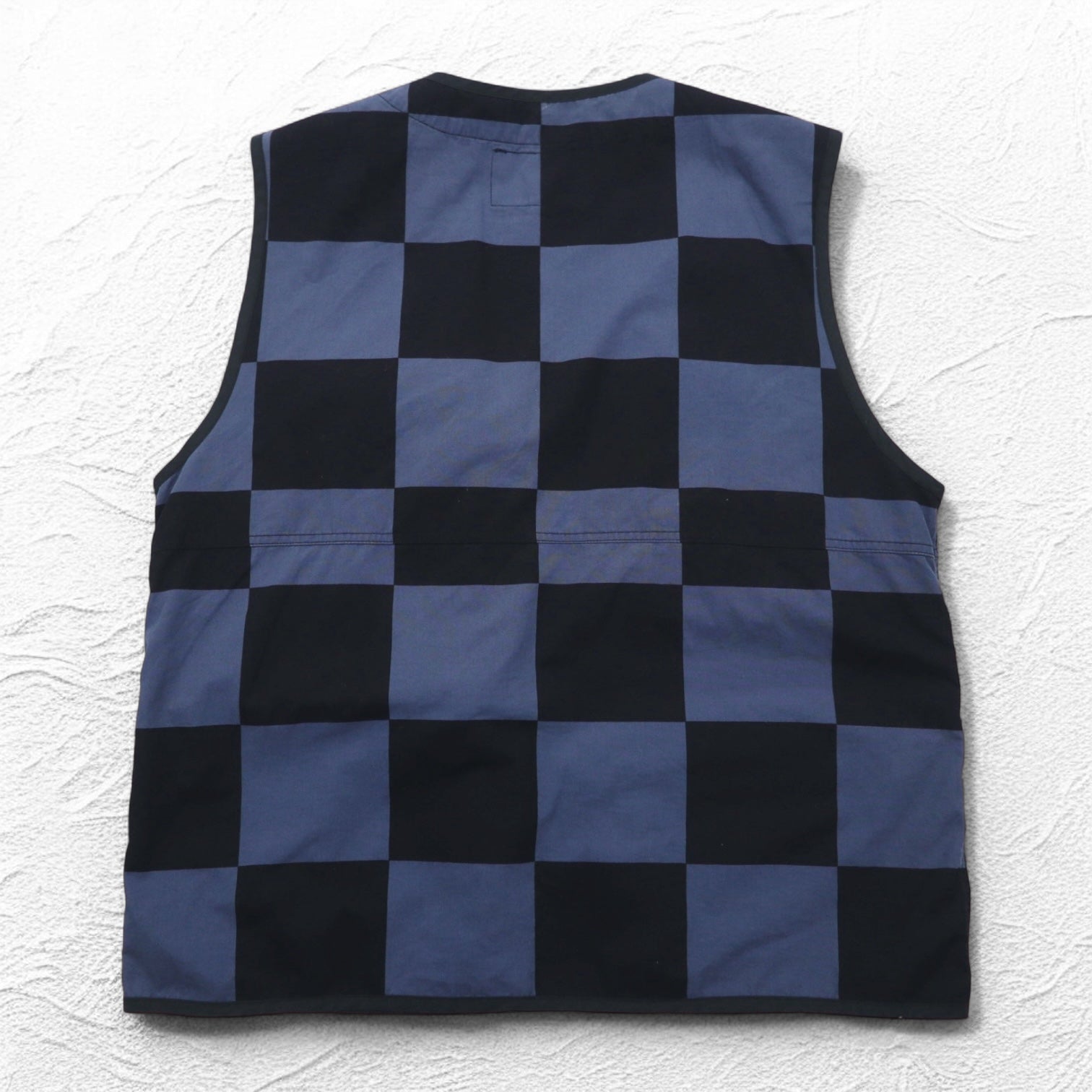 stussy ユーティリティベスト L ブラック ブルー チェック チェッカーフラッグ コットン