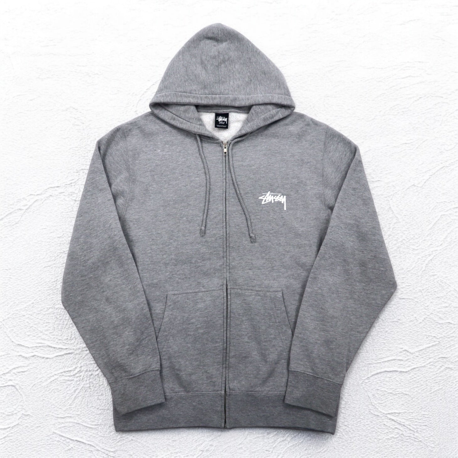 STUSSY 00年代 USA製 フルジップパーカー L グレー YESTERDAY TODAY TOMORROW バックロゴプリント