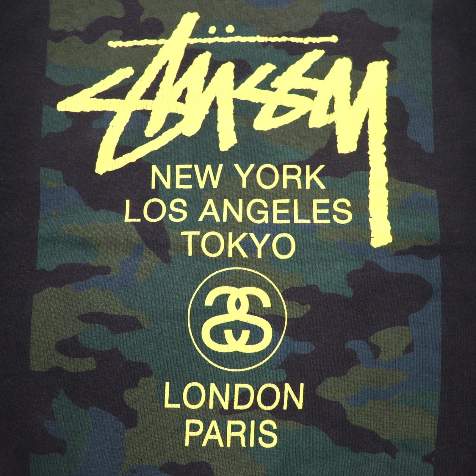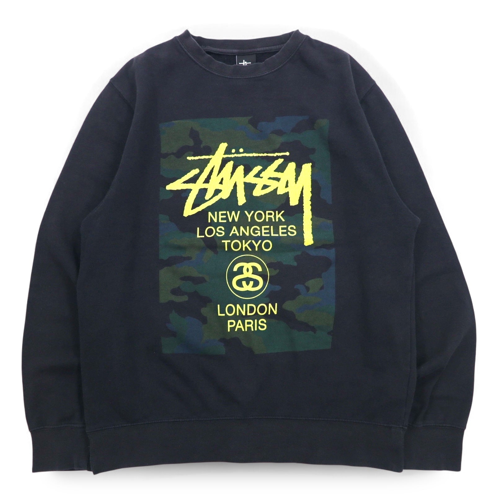 STUSSY USA製 ワールドツアー クルーネック スウェット L ブラック カモフラ WT Camo Block Sweat