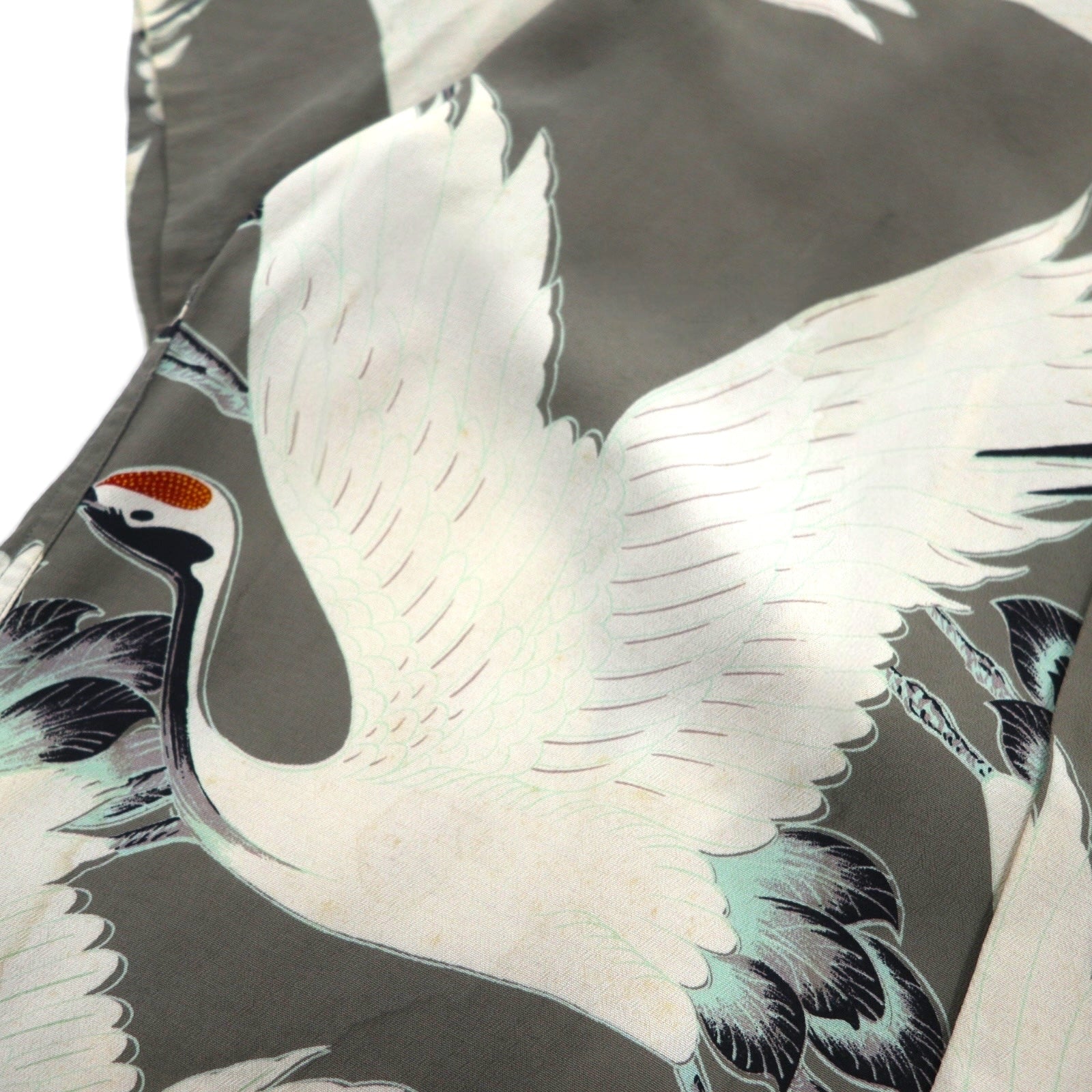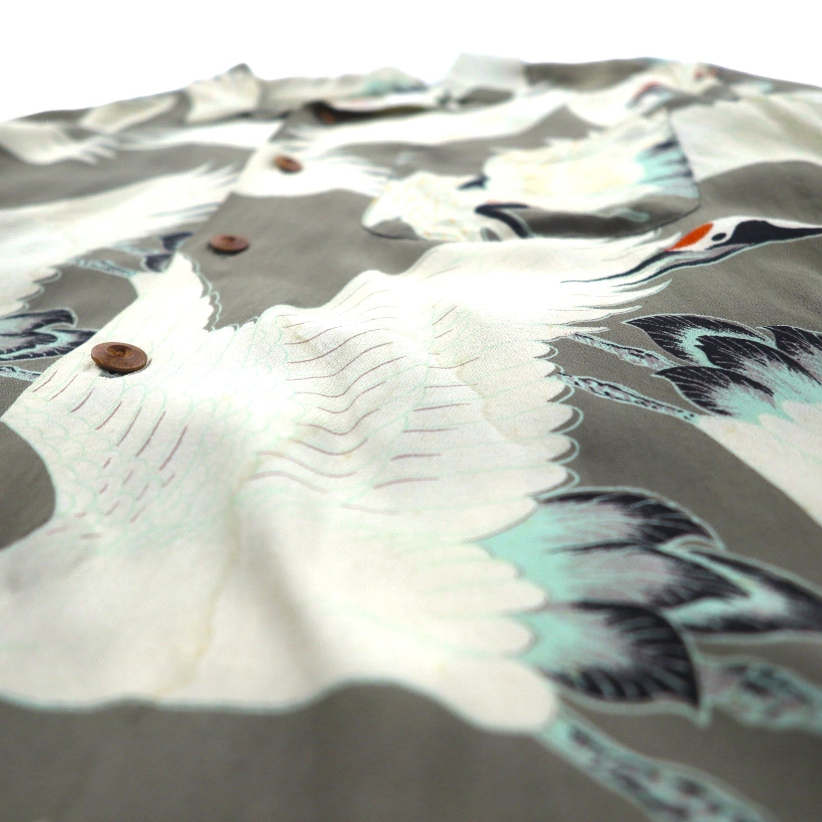 SUN SURF ( 東洋エンタープライズ ) 初期 旧タグ 和柄 鶴 アロハシャツ M カーキ レーヨン 511 M3241B