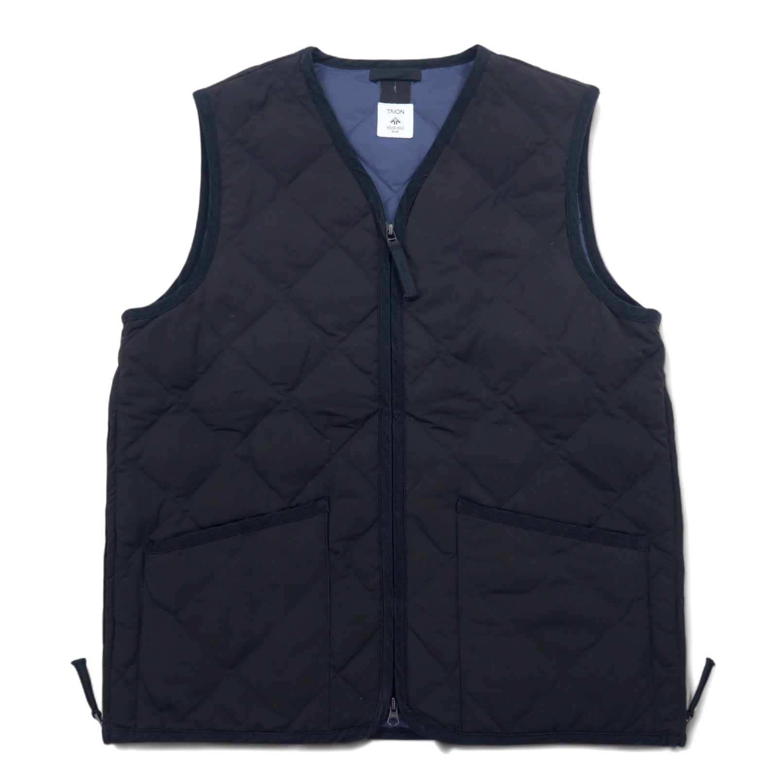 TAION サイドジップ キルティング ダウンベスト XL ブラック ミリタリー Vネック スリット ダブルジップ JOURNAL STANDARD relume 別注 22-011-464-0110-3-0
