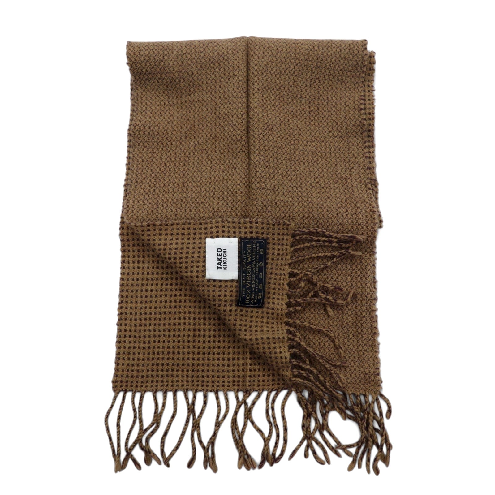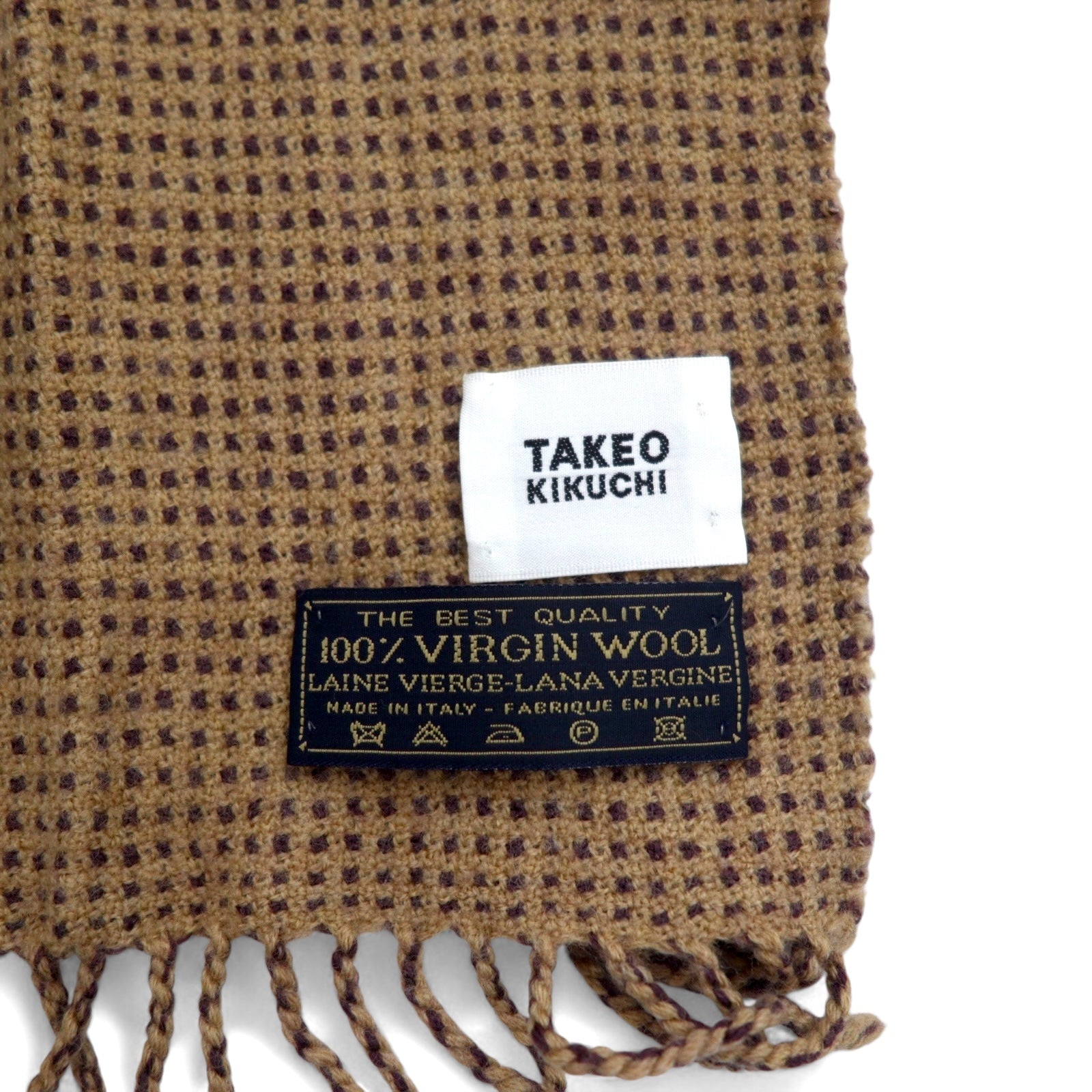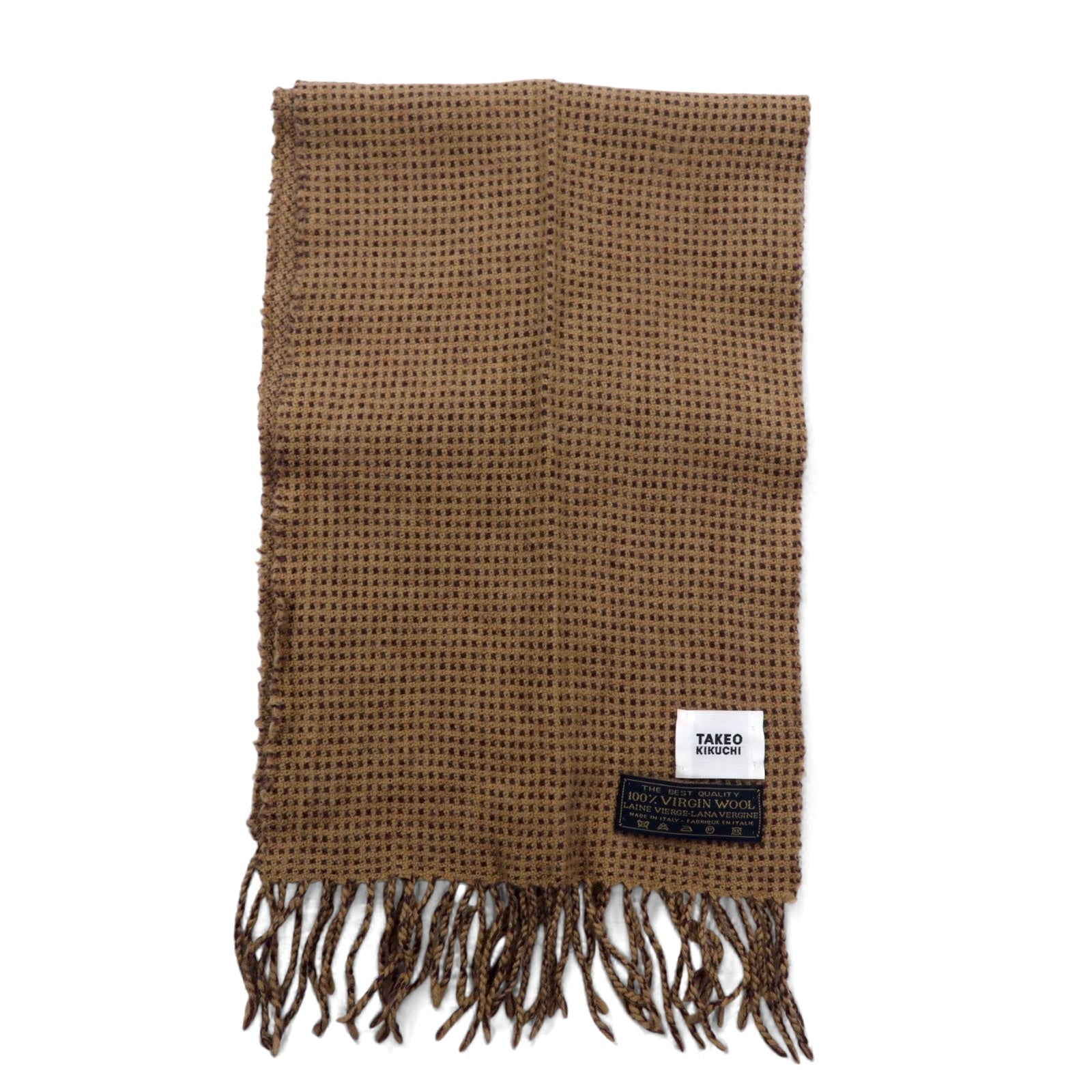 TAKEO KIKUCHI イタリア製 バージンウール フリンジ マフラー ブラウン