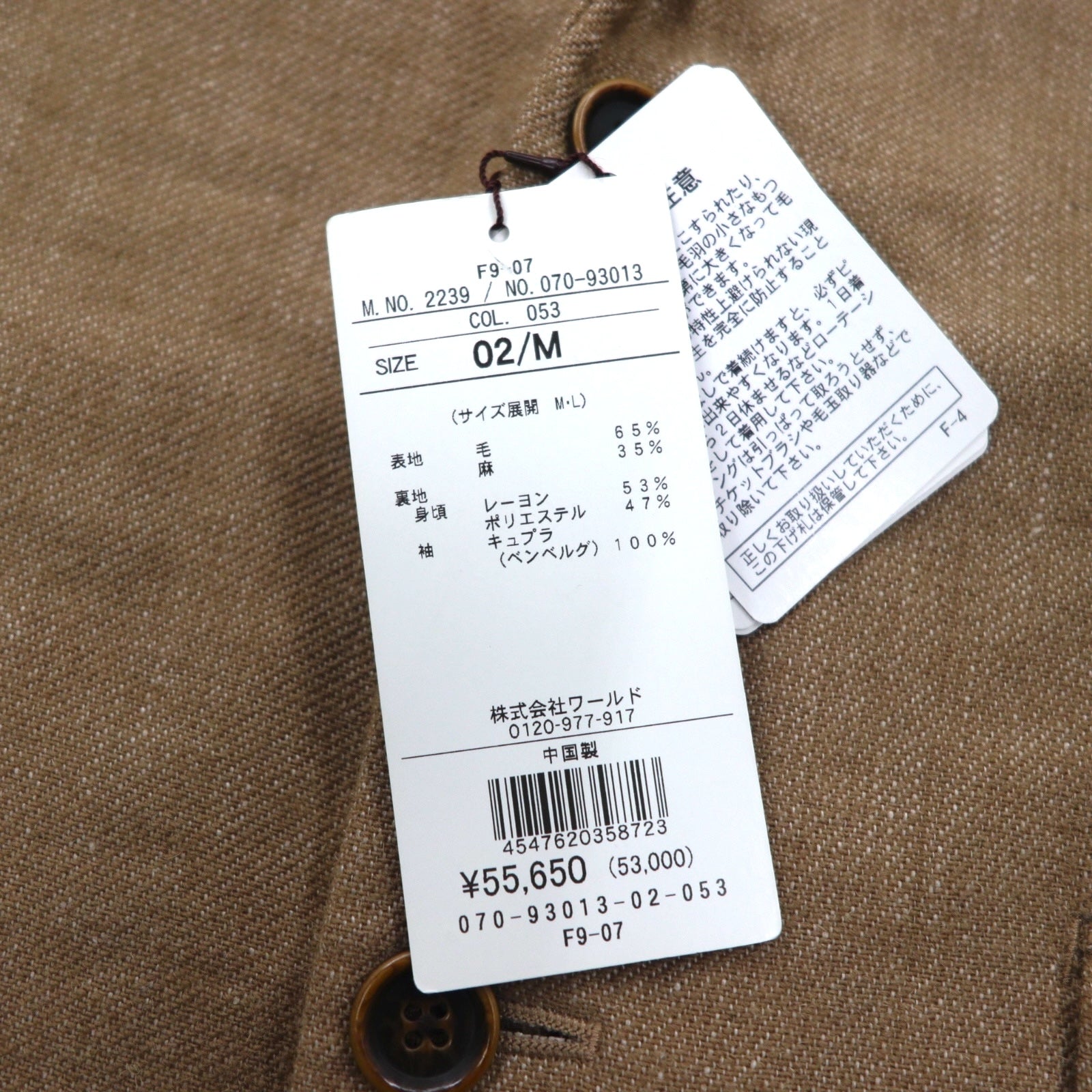 TAKEO KIKUCHI ウール リネン ツイルコート M ベージュ 麻 070-93013 未使用品