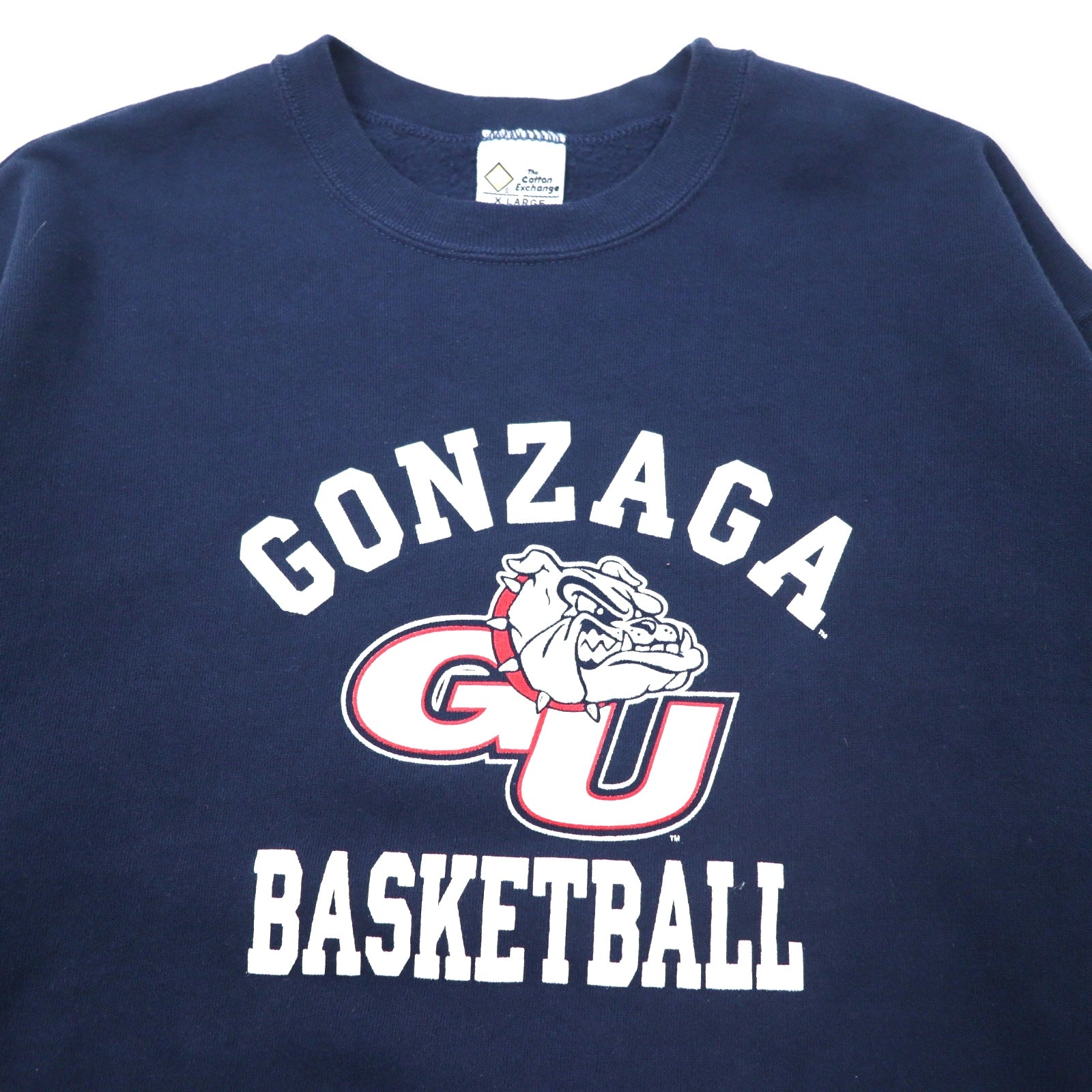 The Cotton Exchange USA製 90年代 カレッジ プリント スウェット XL ネイビー コットン GONZA BASKETBALL アーチロゴ