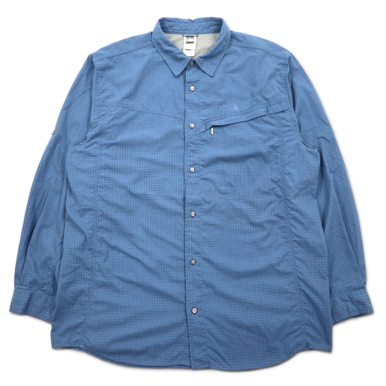THE NORTH FACE アウトドアシャツ XL ブルー ナイロン ロゴ刺繍 メッシュライナー AU2B