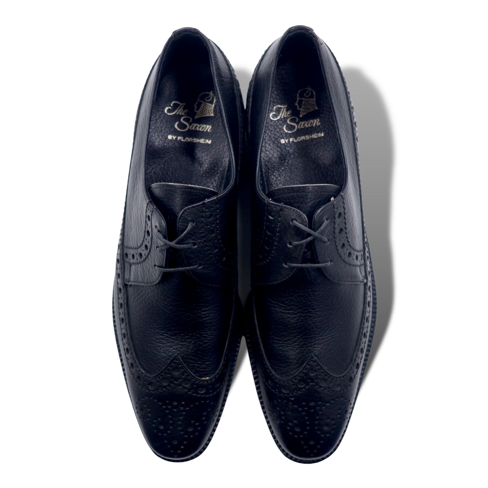 The Saxon by FLORSHEIM 60年代 ウイングチップ ドレスシューズ 27.5cm ブラック レザー シボ革 デッドストック 未使用品