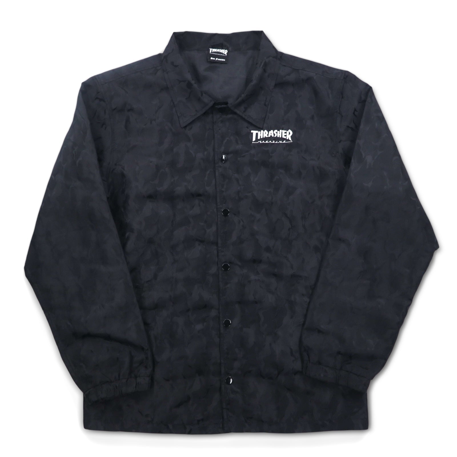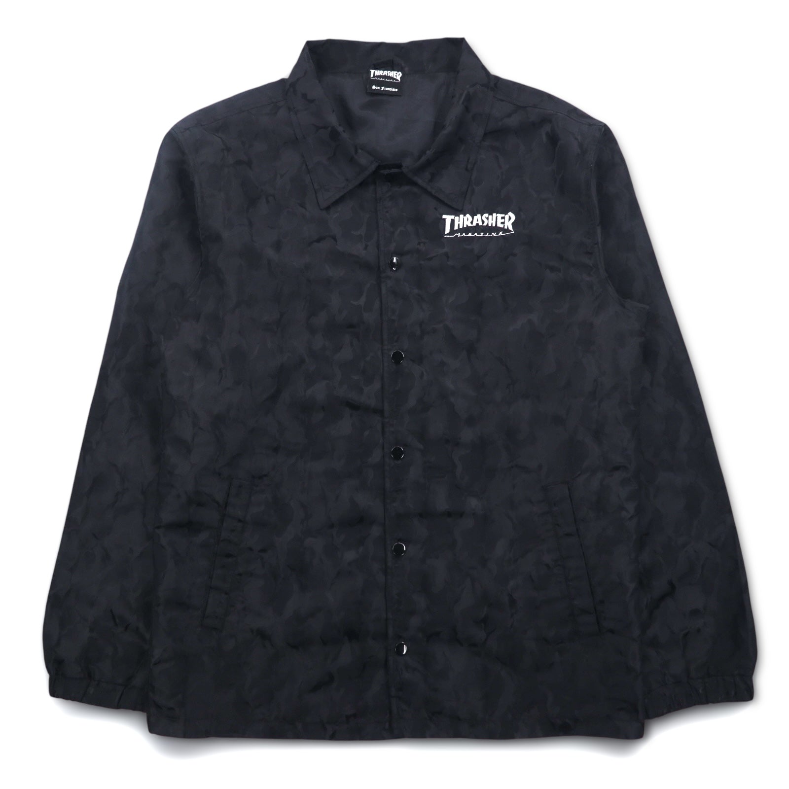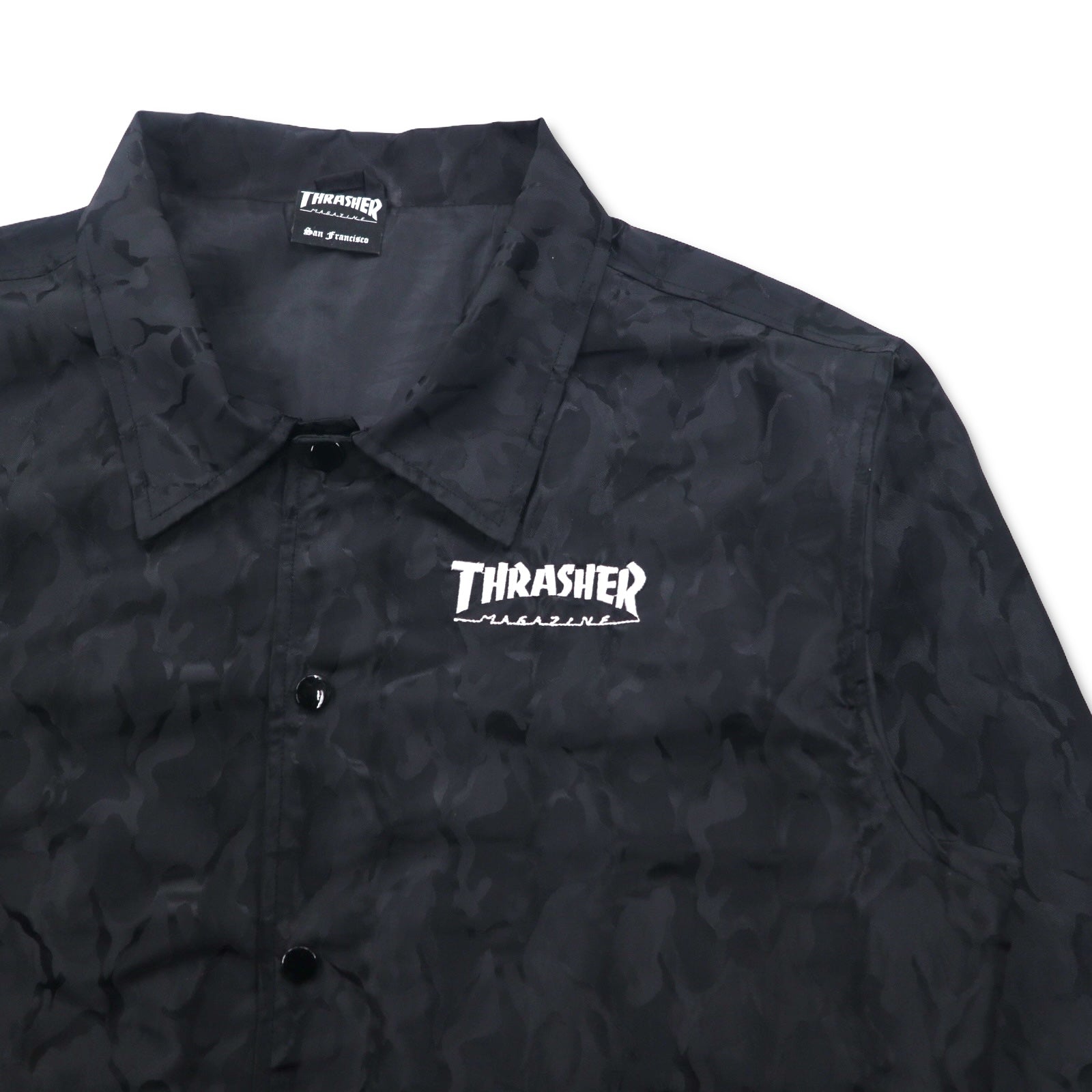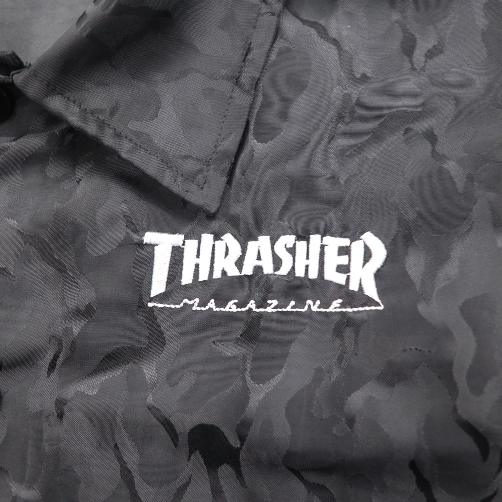 THRASHER カモフラ コーチジャケット L ブラック ポリエステル バックロゴ刺繍