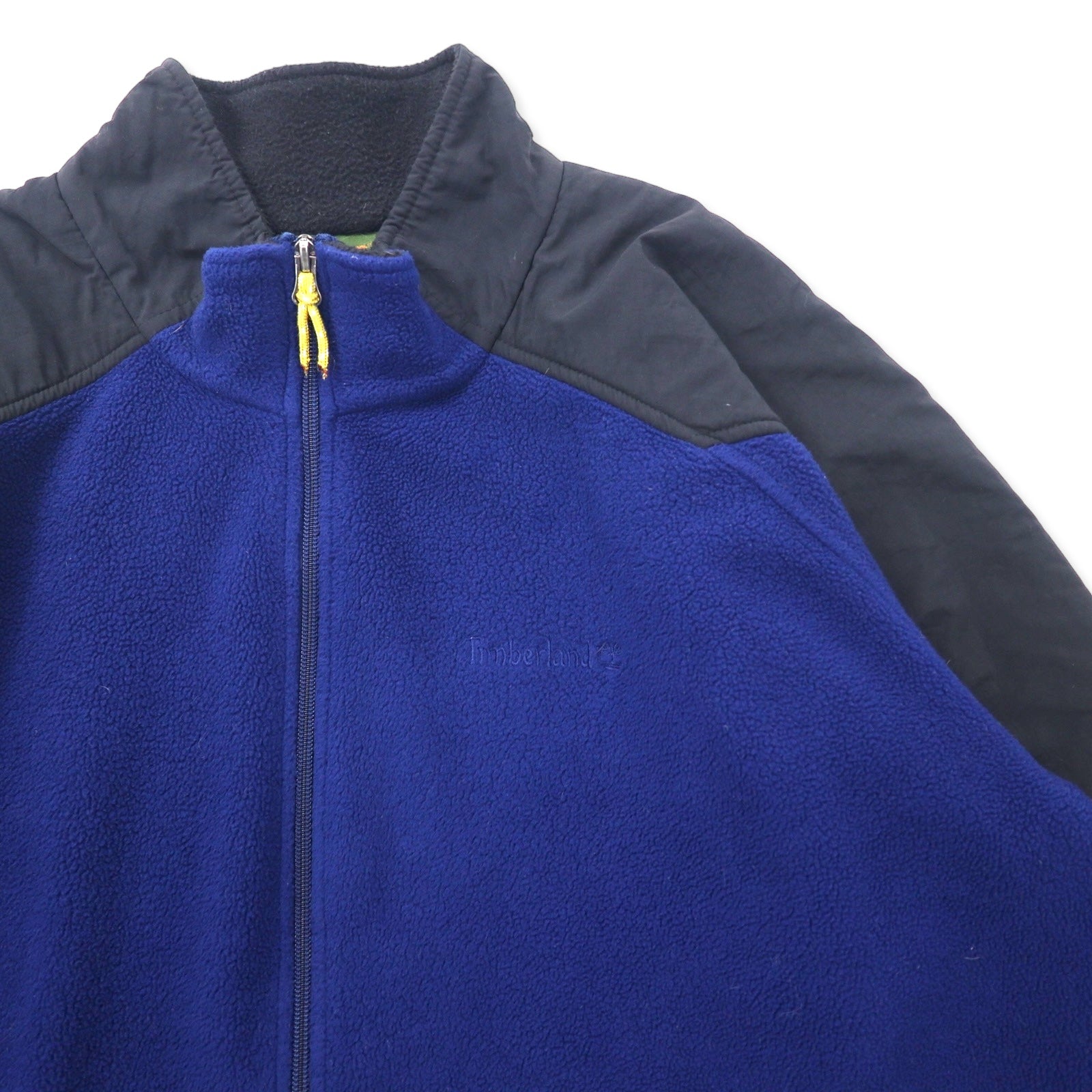 Timberland 90年代 ナイロン切り替え フルジップ フリースジャケット XL ネイビー ポリエステル ワンポイントロゴ刺繍 ビッグサイズ