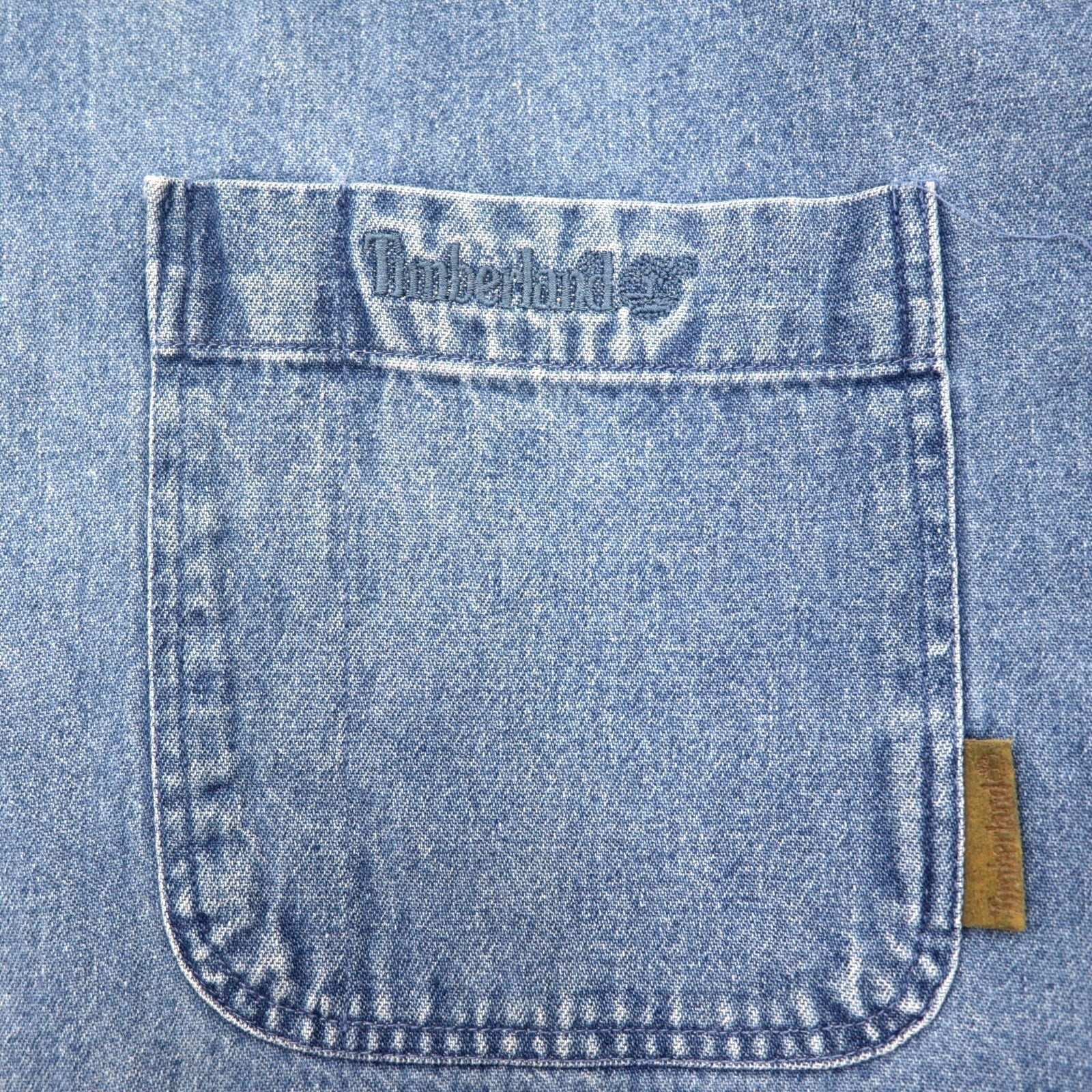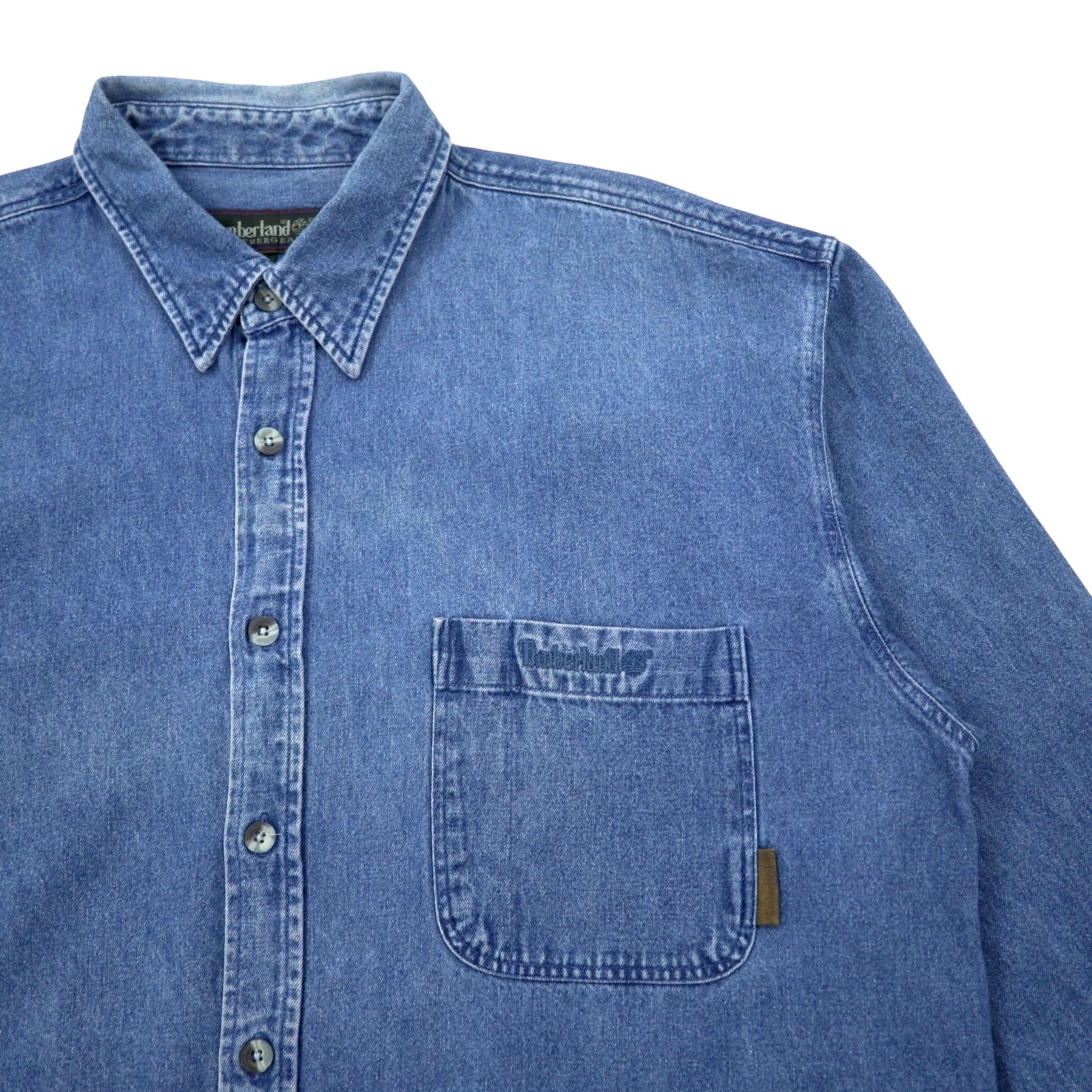 Timberland 90年代 WEATHER GEAR デニムシャツ XL ブルー コットン ワンポイントロゴ 刺繍