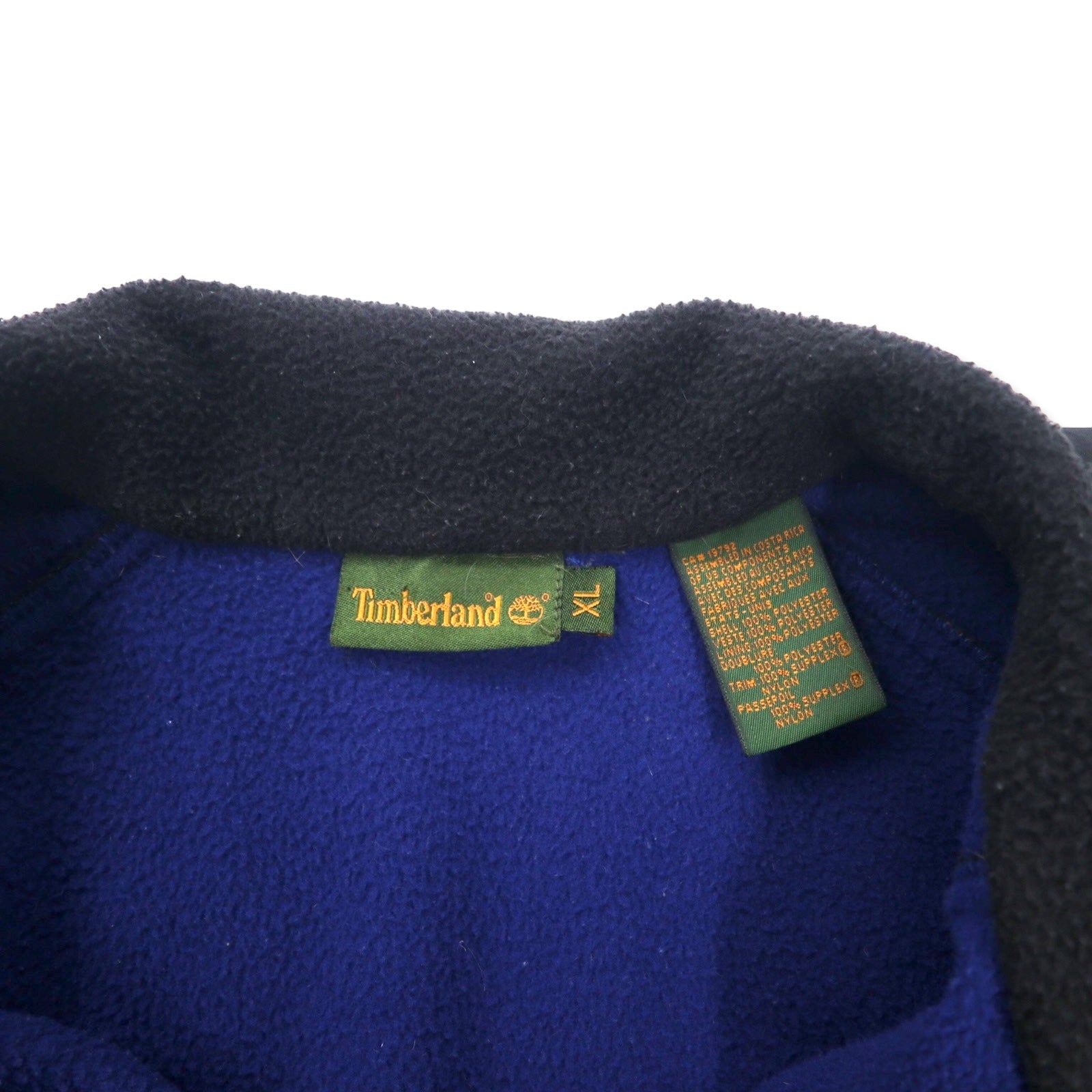 Timberland 90年代 ナイロン切り替え フルジップ フリースジャケット XL ネイビー ポリエステル ワンポイントロゴ刺繍 ビッグサイズ