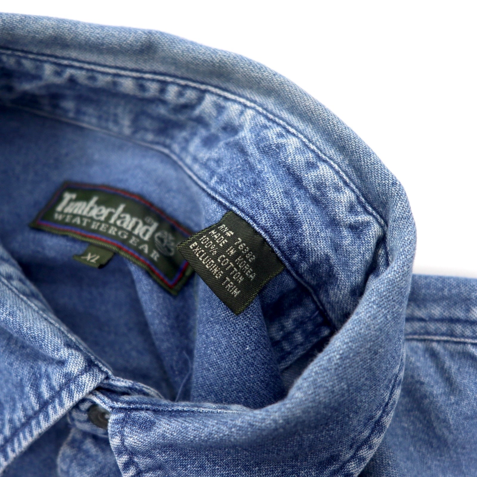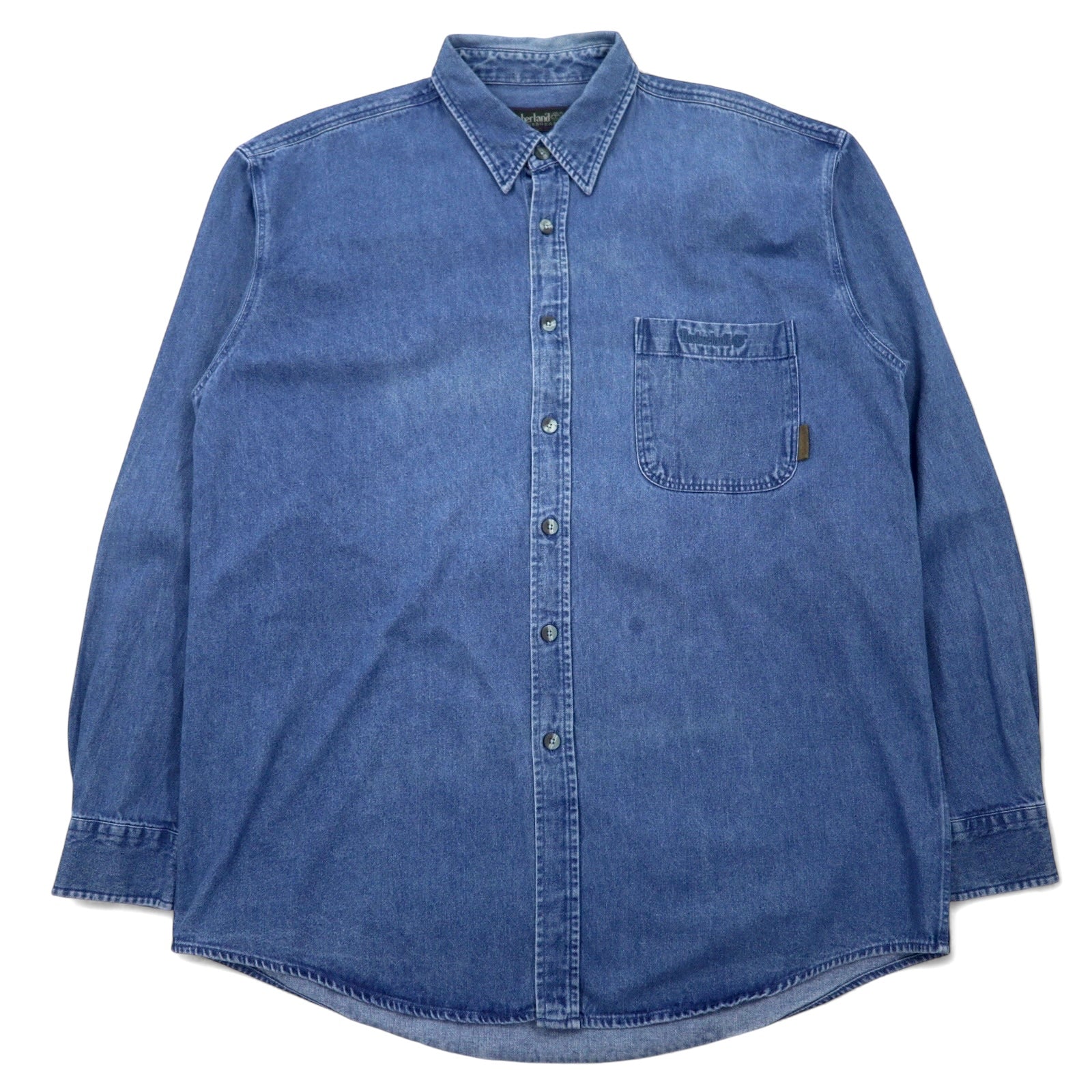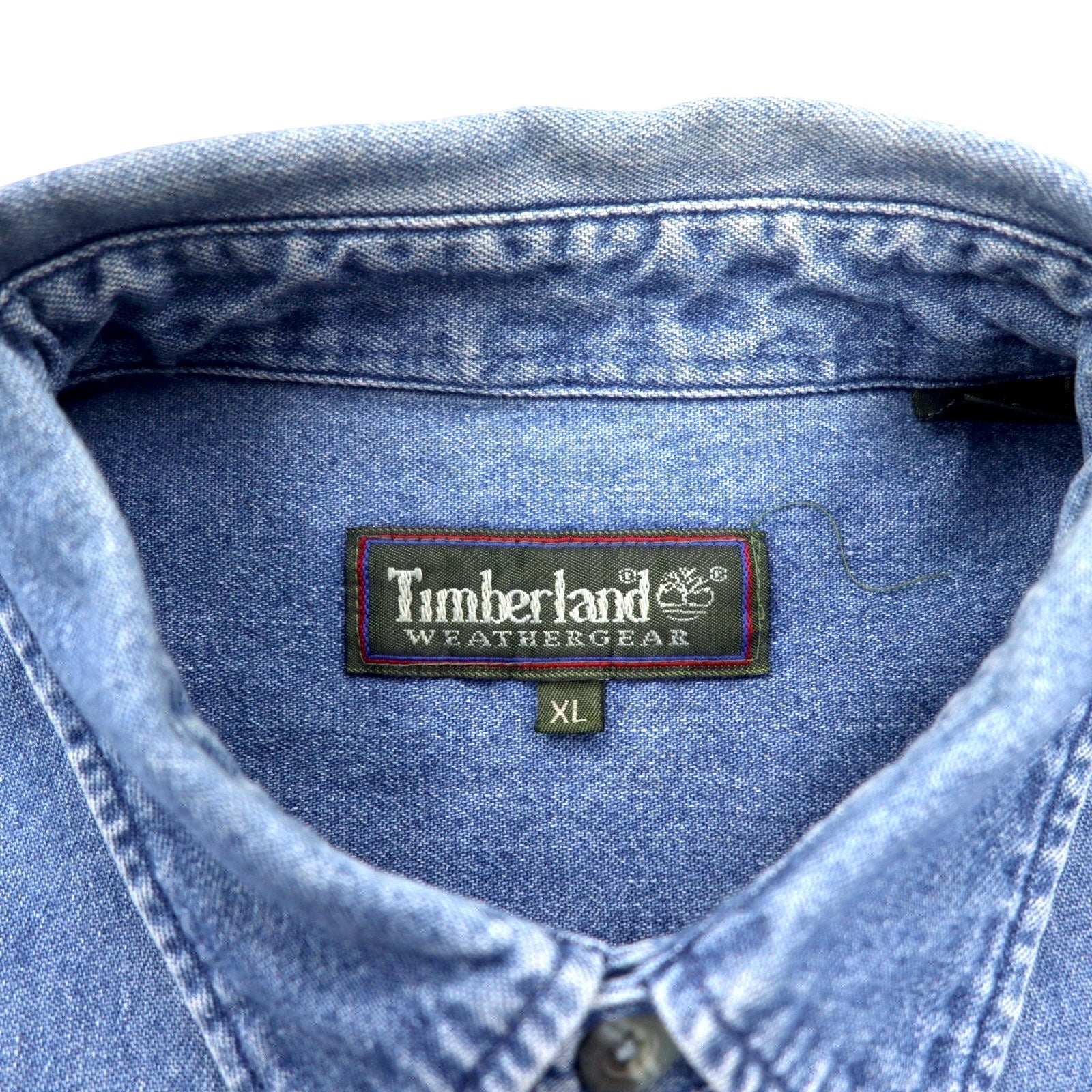 Timberland 90年代 WEATHER GEAR デニムシャツ XL ブルー コットン ワンポイントロゴ 刺繍