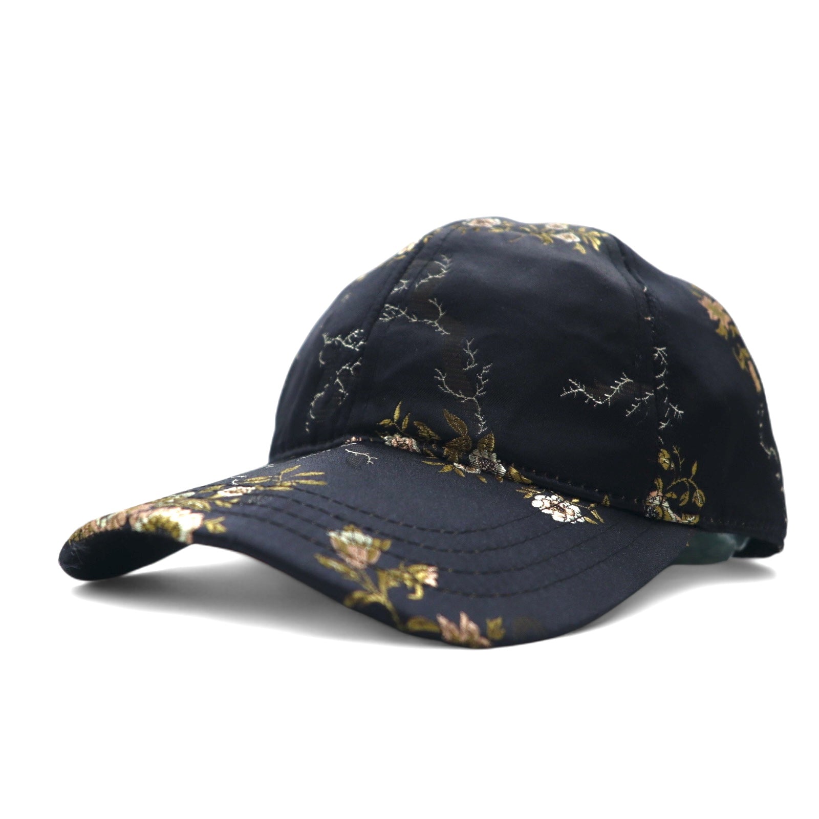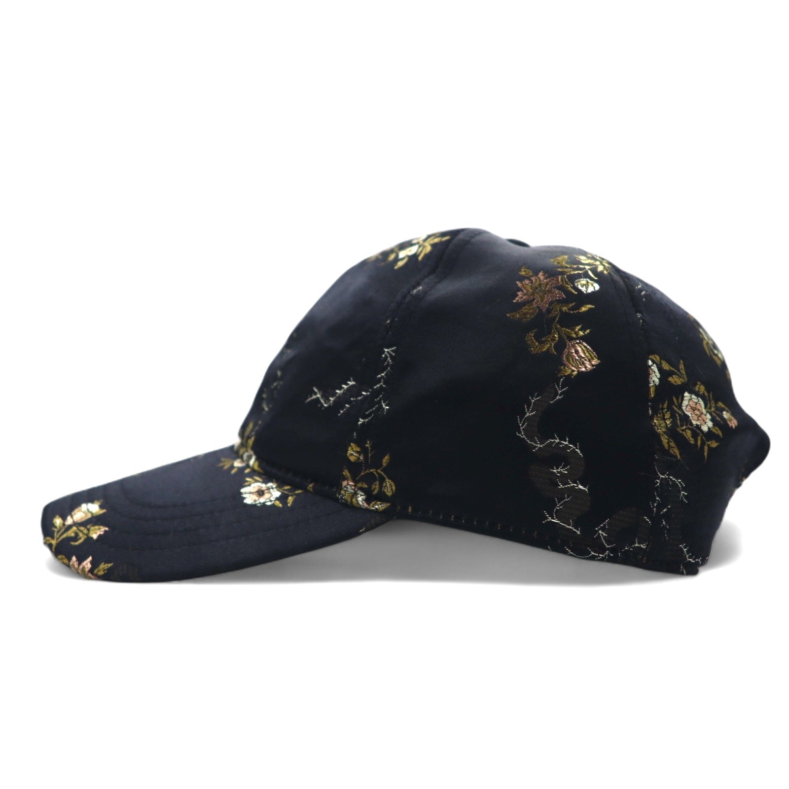 TIME AND TRU スーベニア 刺繍 サテン キャップ ONE ブラック ポリエステル 花柄