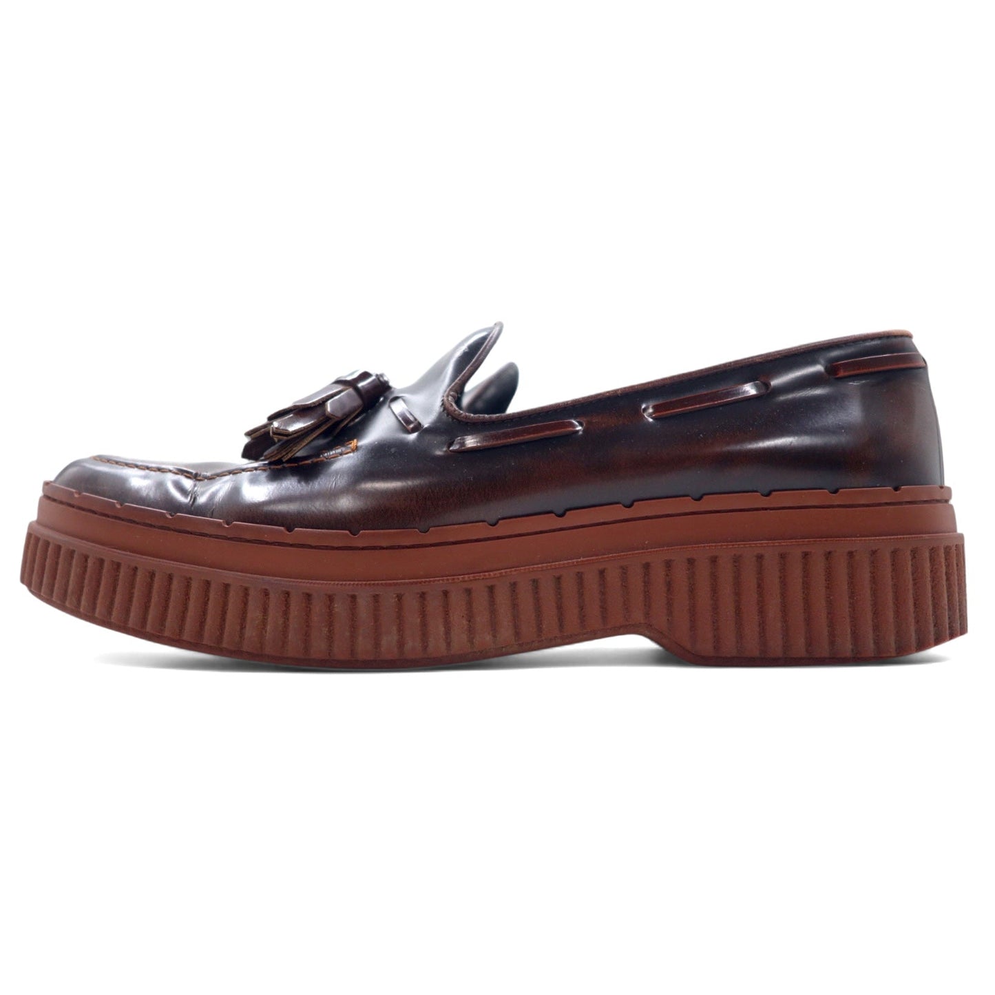 TOD'S 厚底 タッセルローファー 24.5cm ブラウン レザー イタリア製