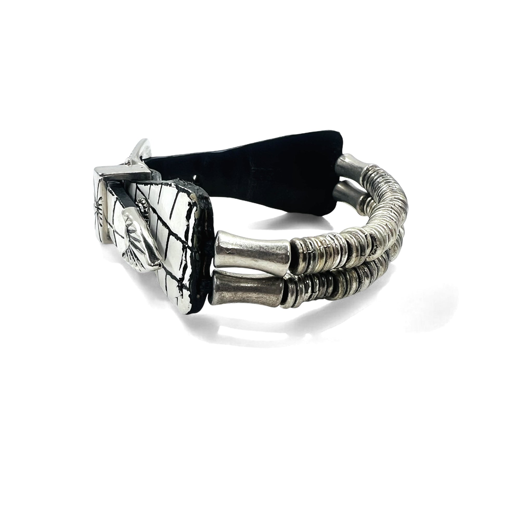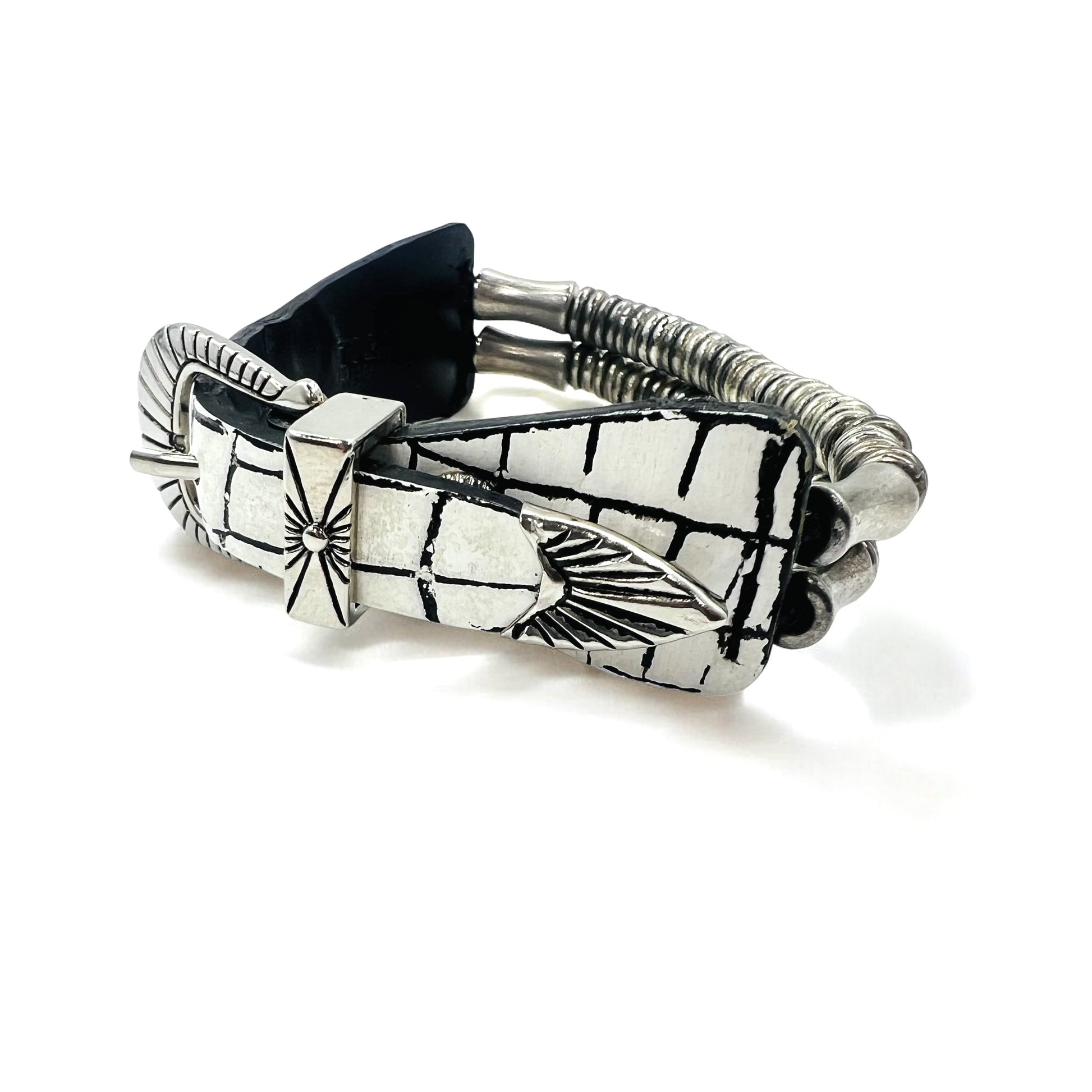 TOGA VIRILIS ブレスレット BEADS LEATHER BANGLE バングル ホワイト レザー メタル 23SS