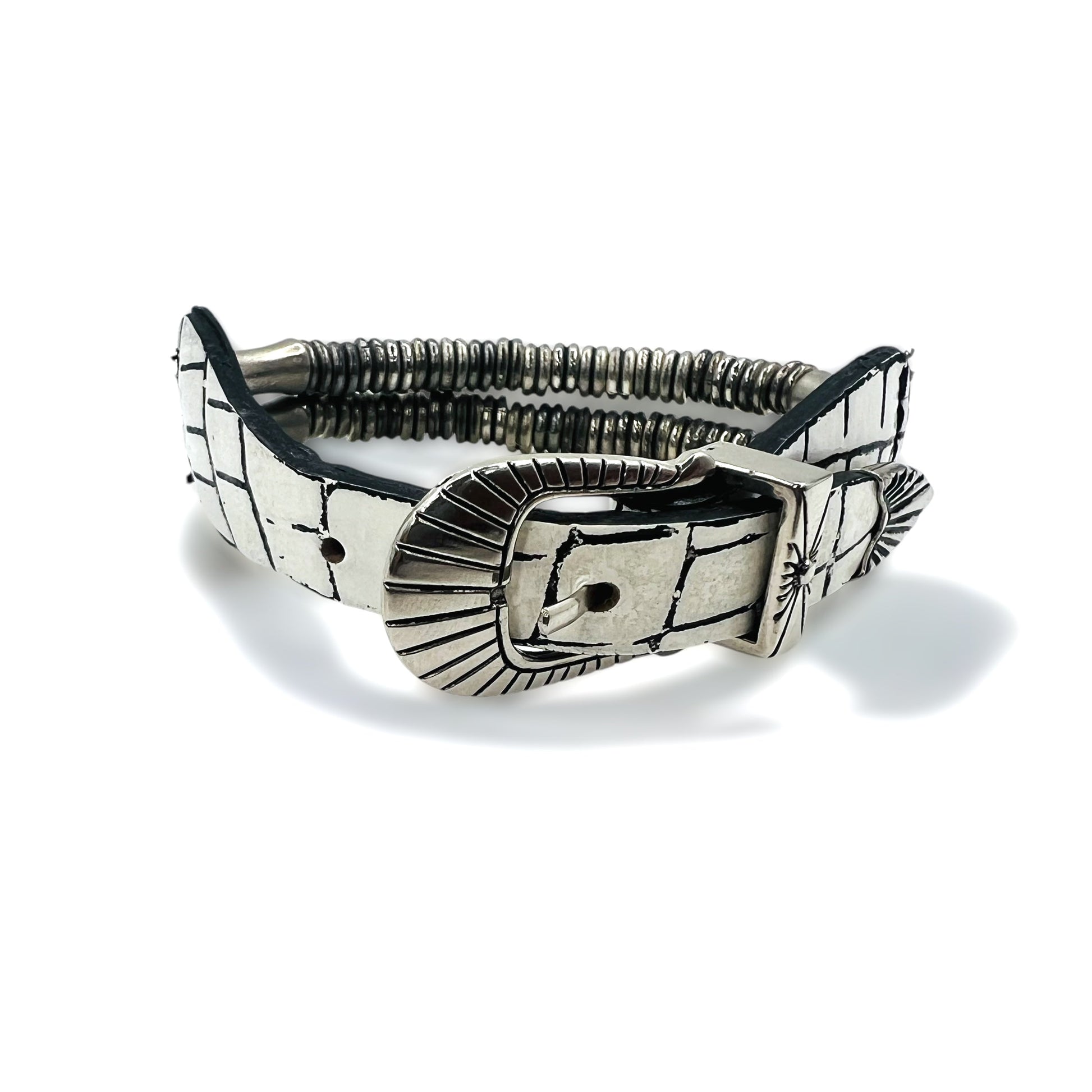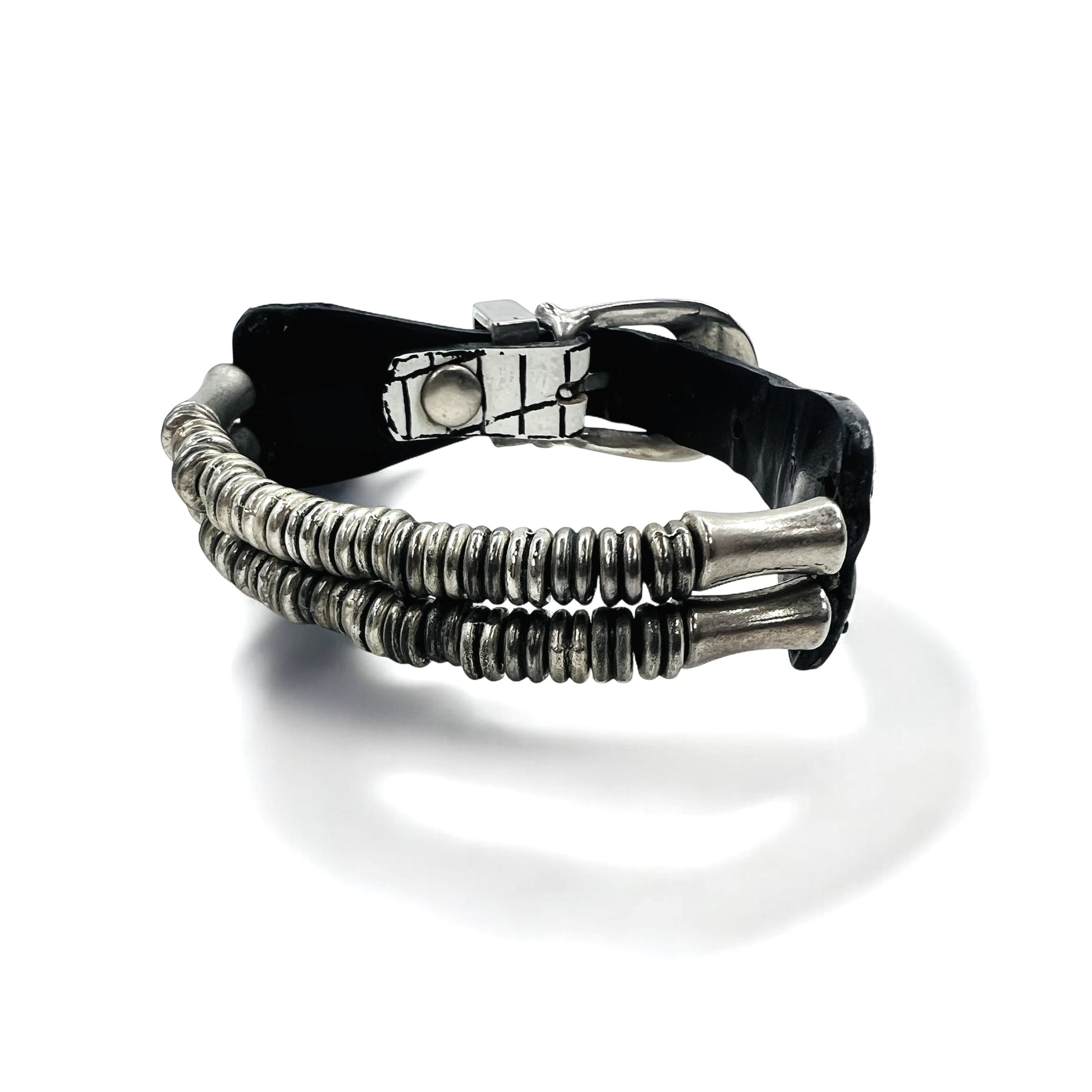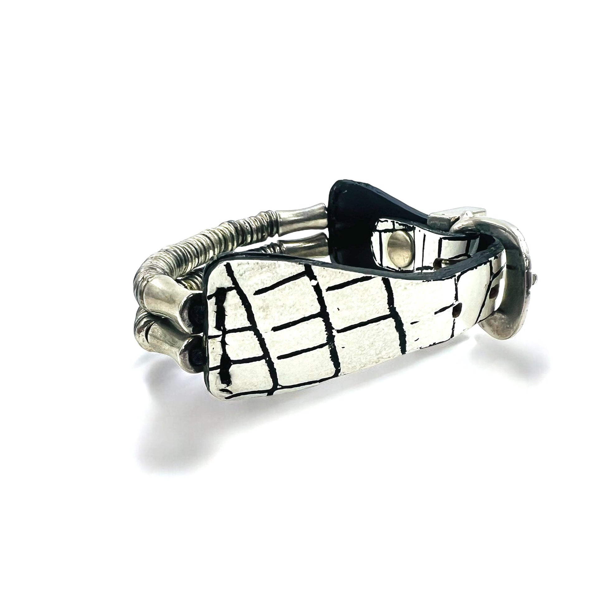 TOGA VIRILIS ブレスレット BEADS LEATHER BANGLE バングル ホワイト レザー メタル 23SS