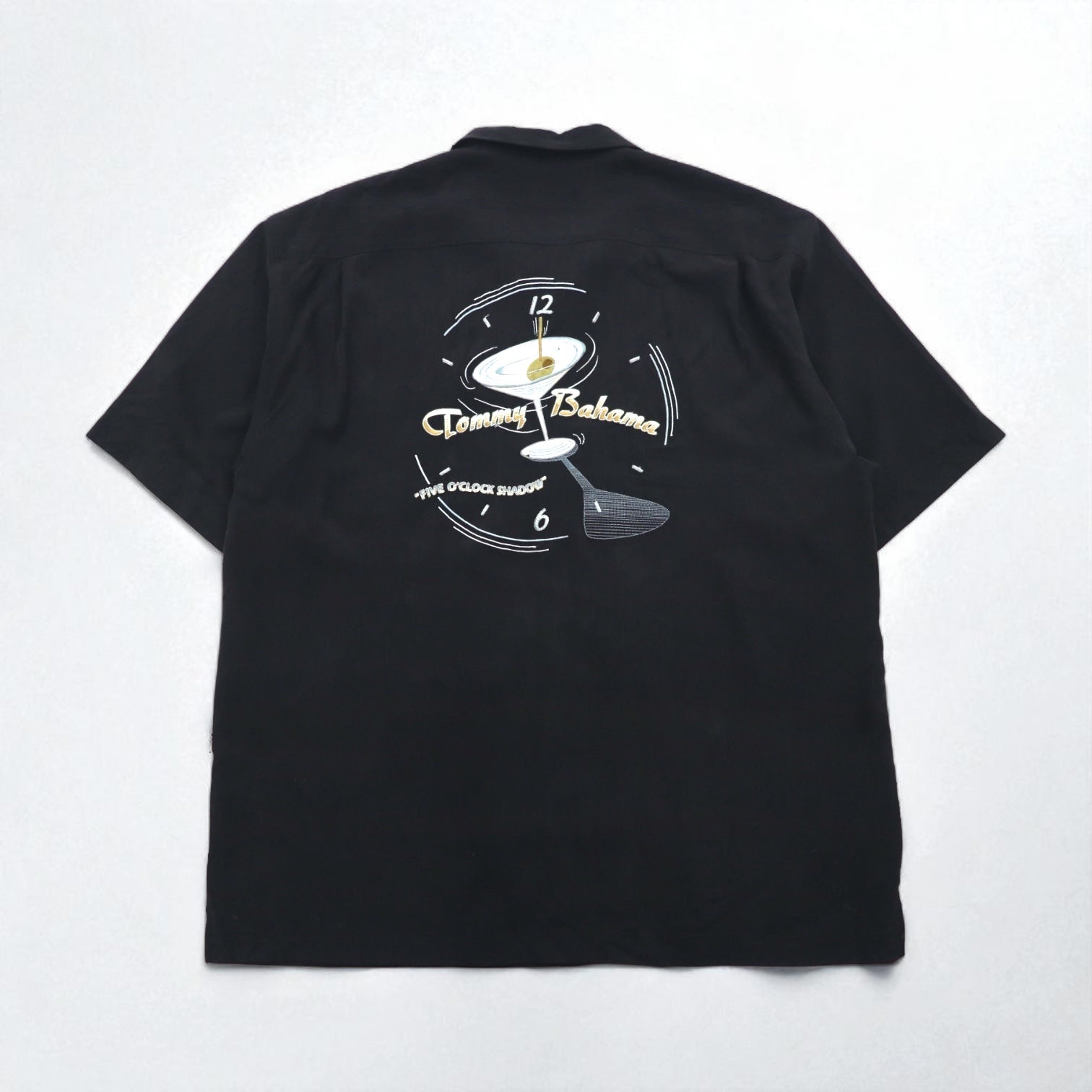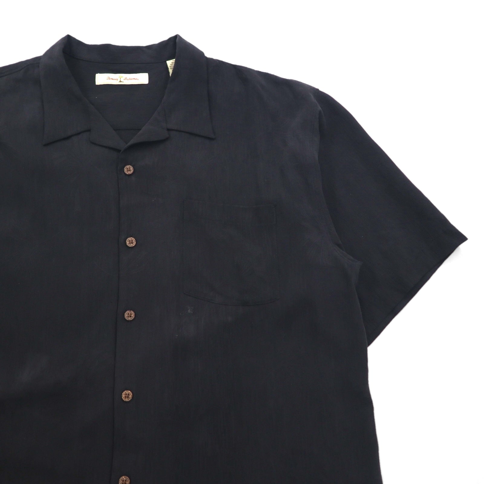 TOMMY BAHAMA シルク オープンカラーシャツ 開襟 アロハシャツ XL ブラック ボックスシルエット バックロゴ カクテル 刺繍