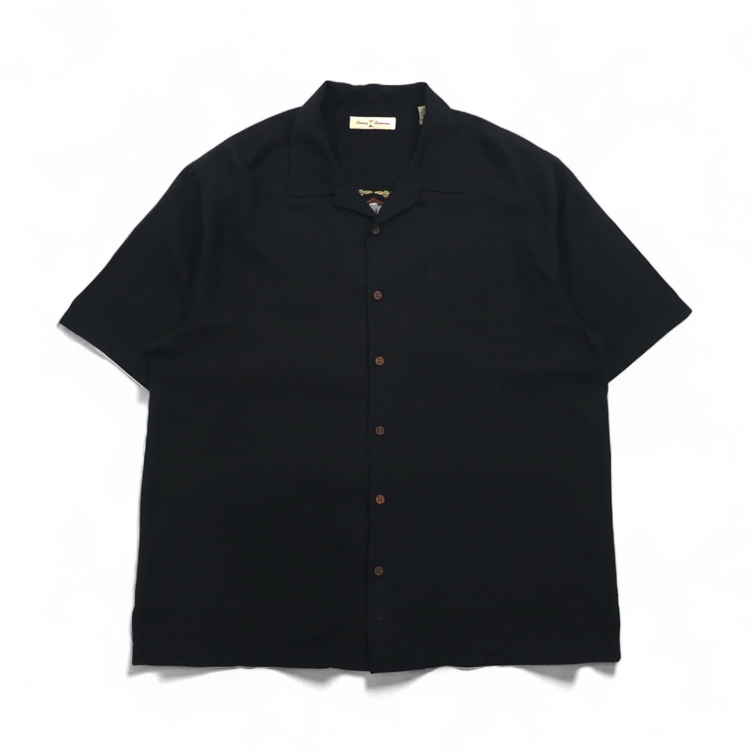 Tommy Bahama シルク 半袖 オープンカラーシャツ 開襟 ボックスシャツ XL ブラック バックロゴ刺繍
