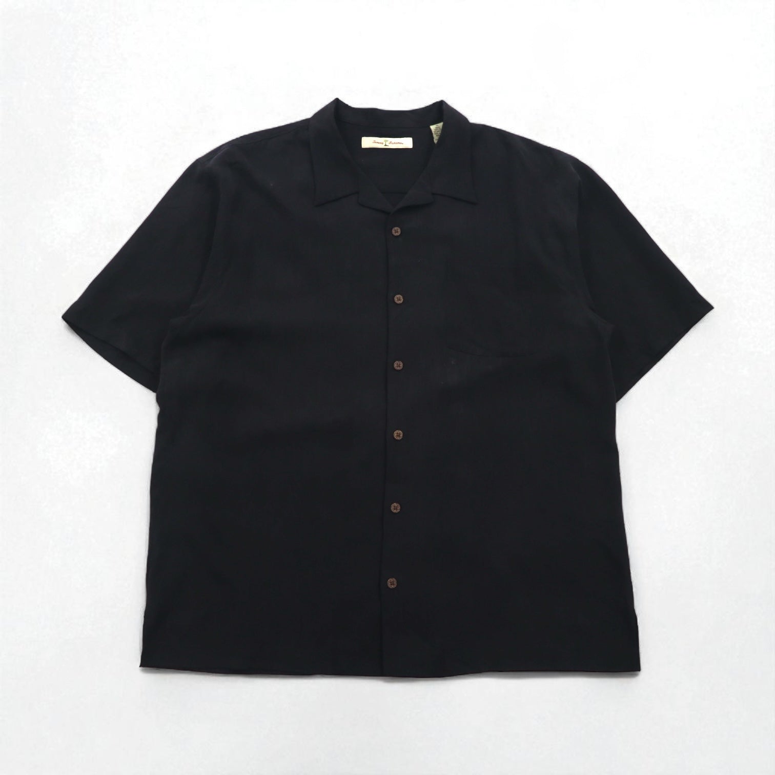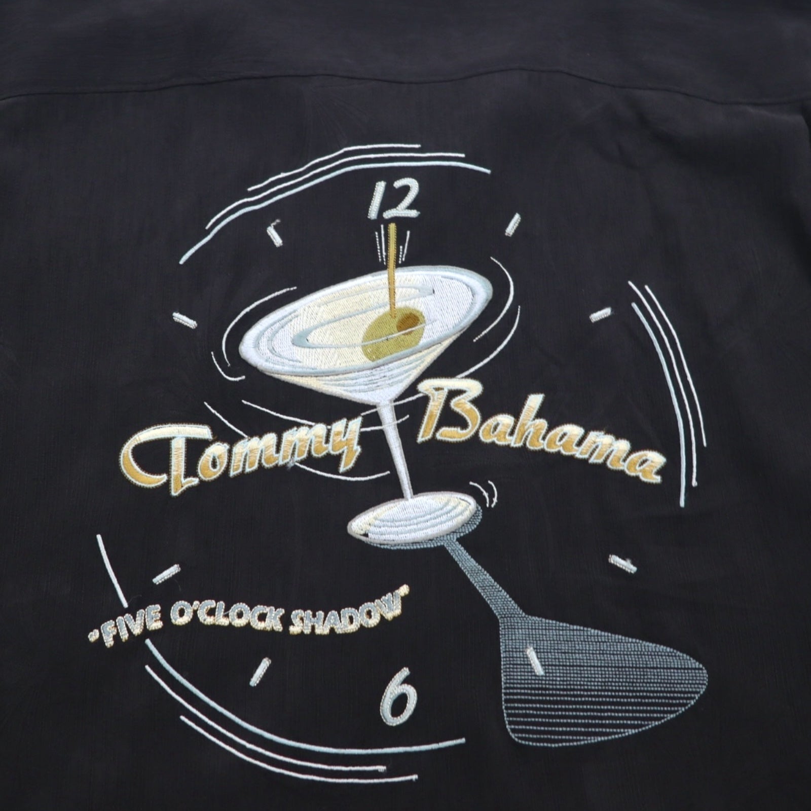 TOMMY BAHAMA シルク オープンカラーシャツ 開襟 アロハシャツ XL ブラック ボックスシルエット バックロゴ カクテル 刺繍