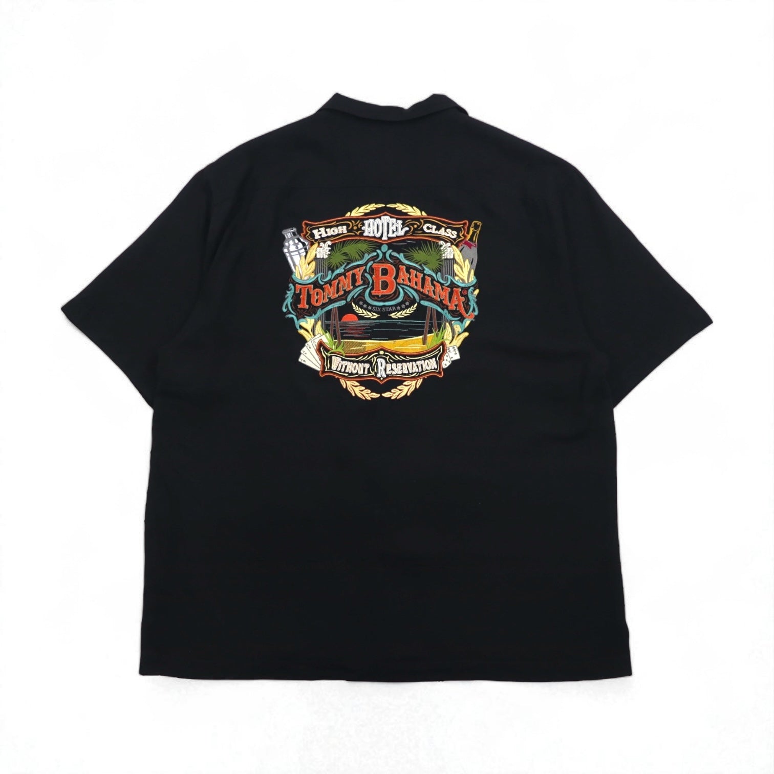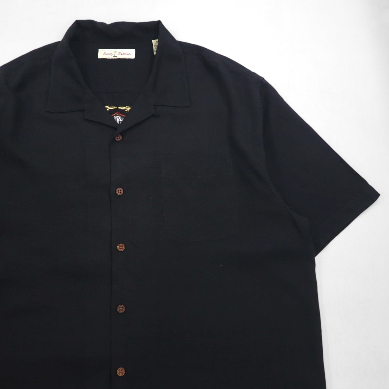 Tommy Bahama シルク 半袖 オープンカラーシャツ 開襟 ボックスシャツ XL ブラック バックロゴ刺繍