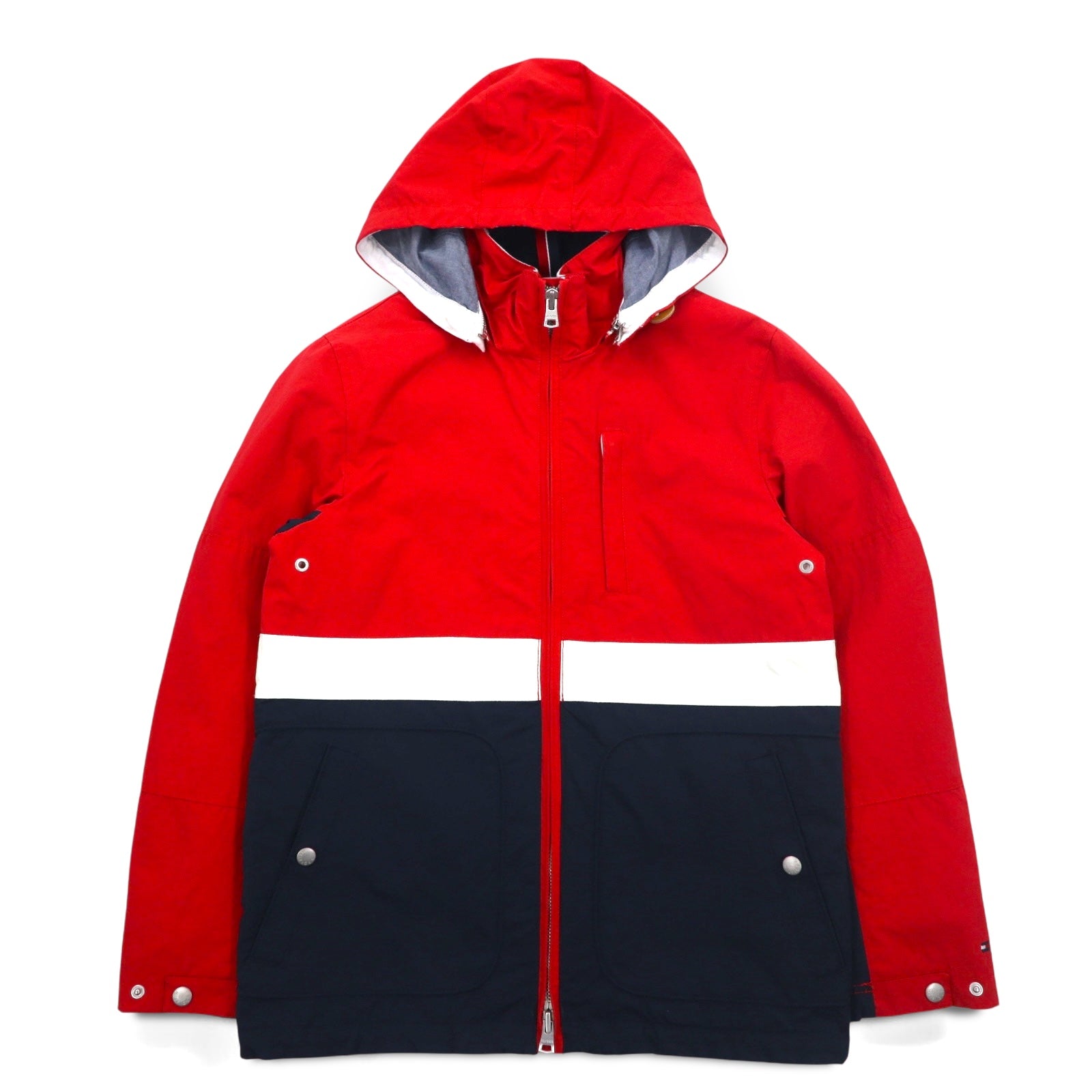 TOMMY HILFIGER セーリングジャケット マウンテンパーカー M レッド トリコロール ダブルジップ フード着脱式