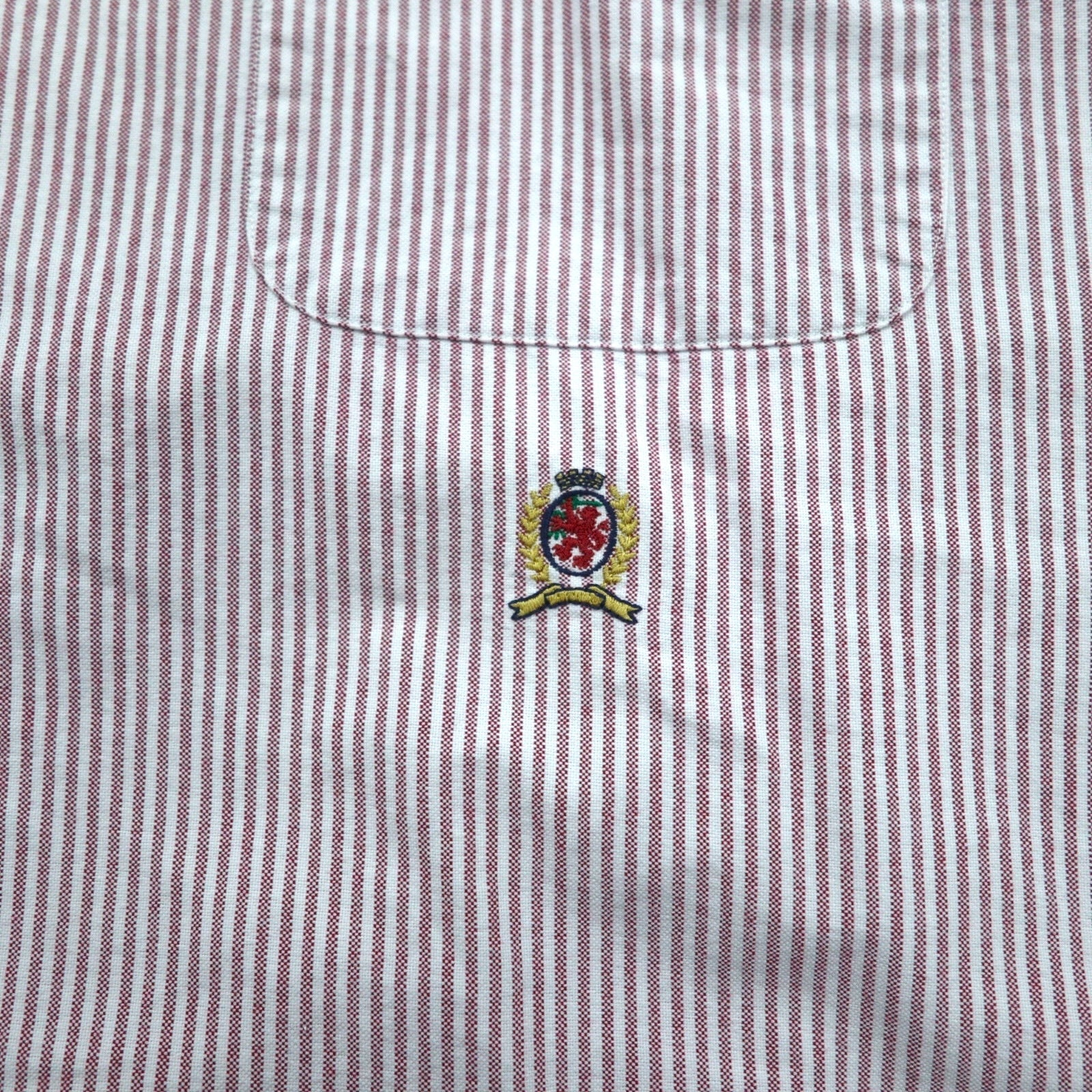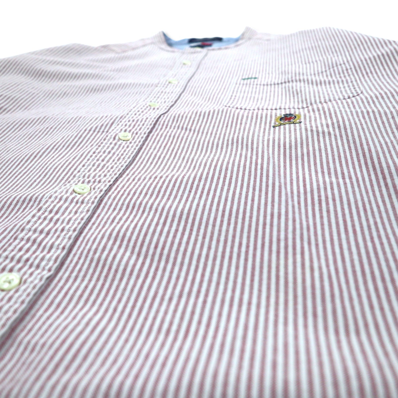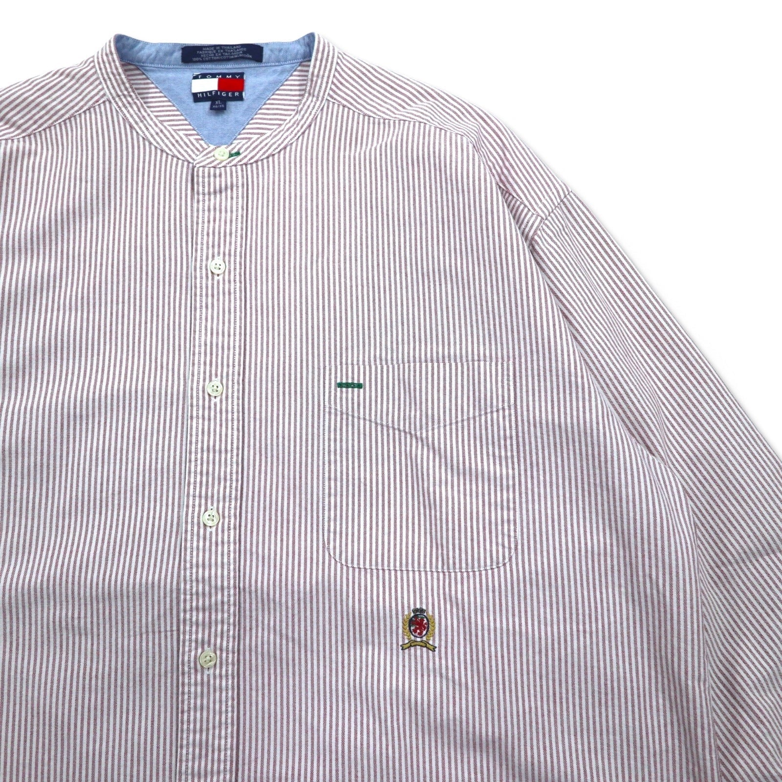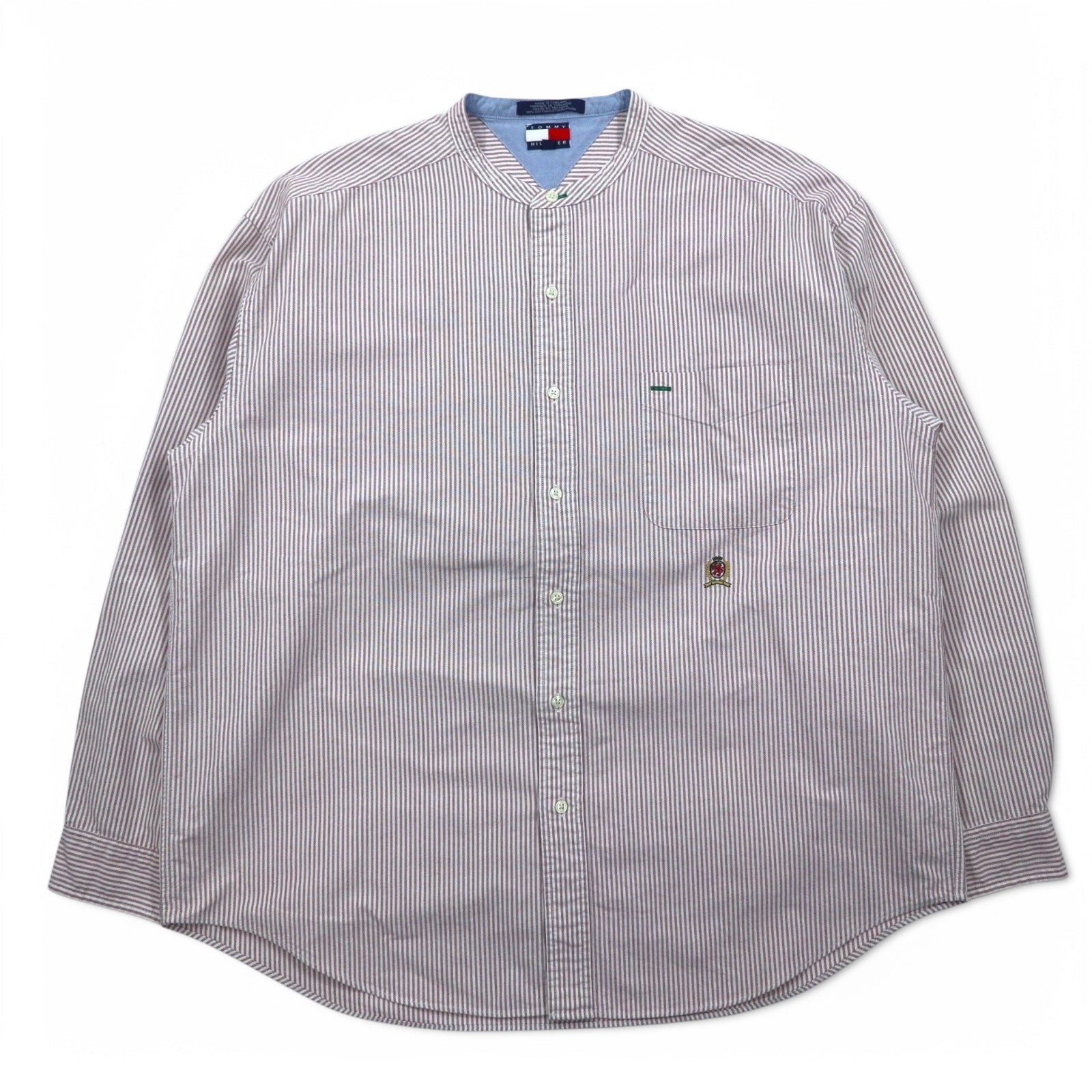 TOMMY HILFIGER バンドカラー オックスフォードシャツ XL ピンク ホワイト コットン ストライプ