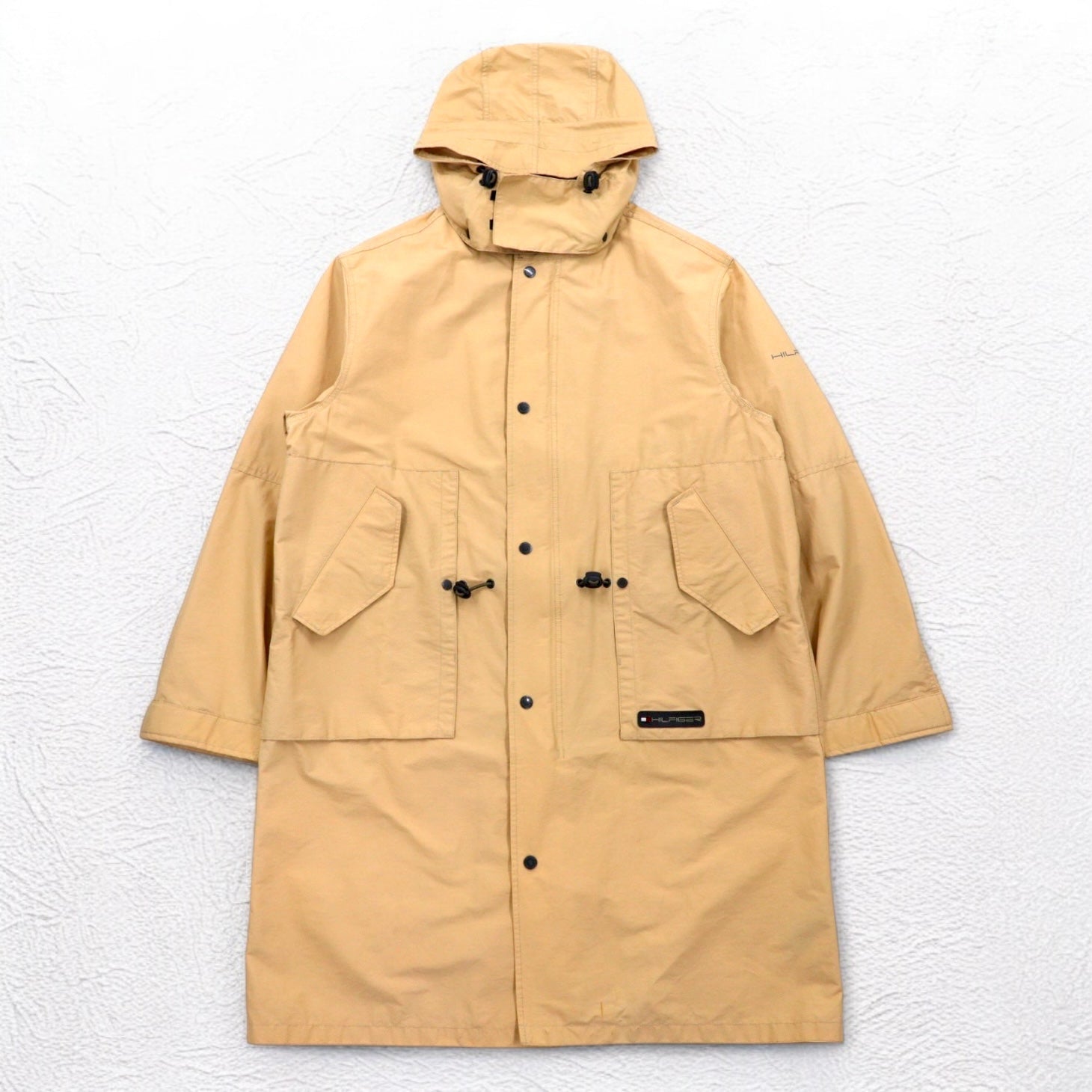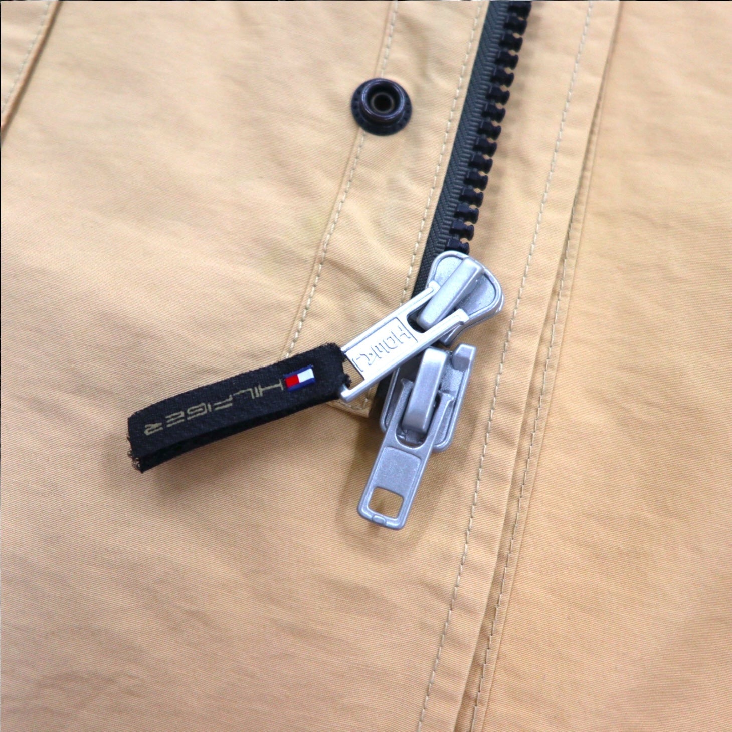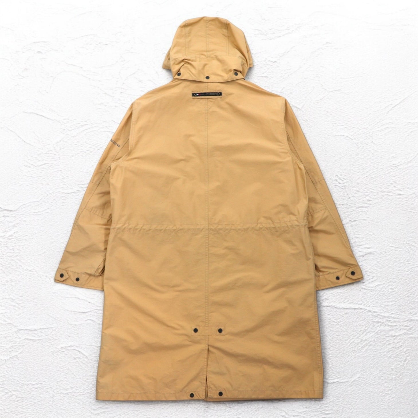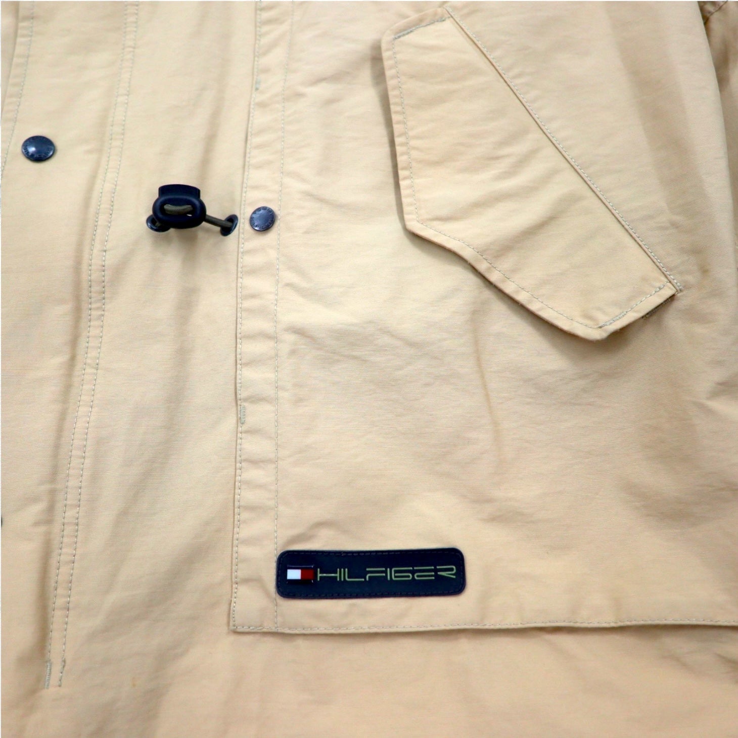 TOMMY HILFIGER 00年代 オーバーコート L ベージュ ナイロン 防水 ダブルジップ ドローコード フード着脱式