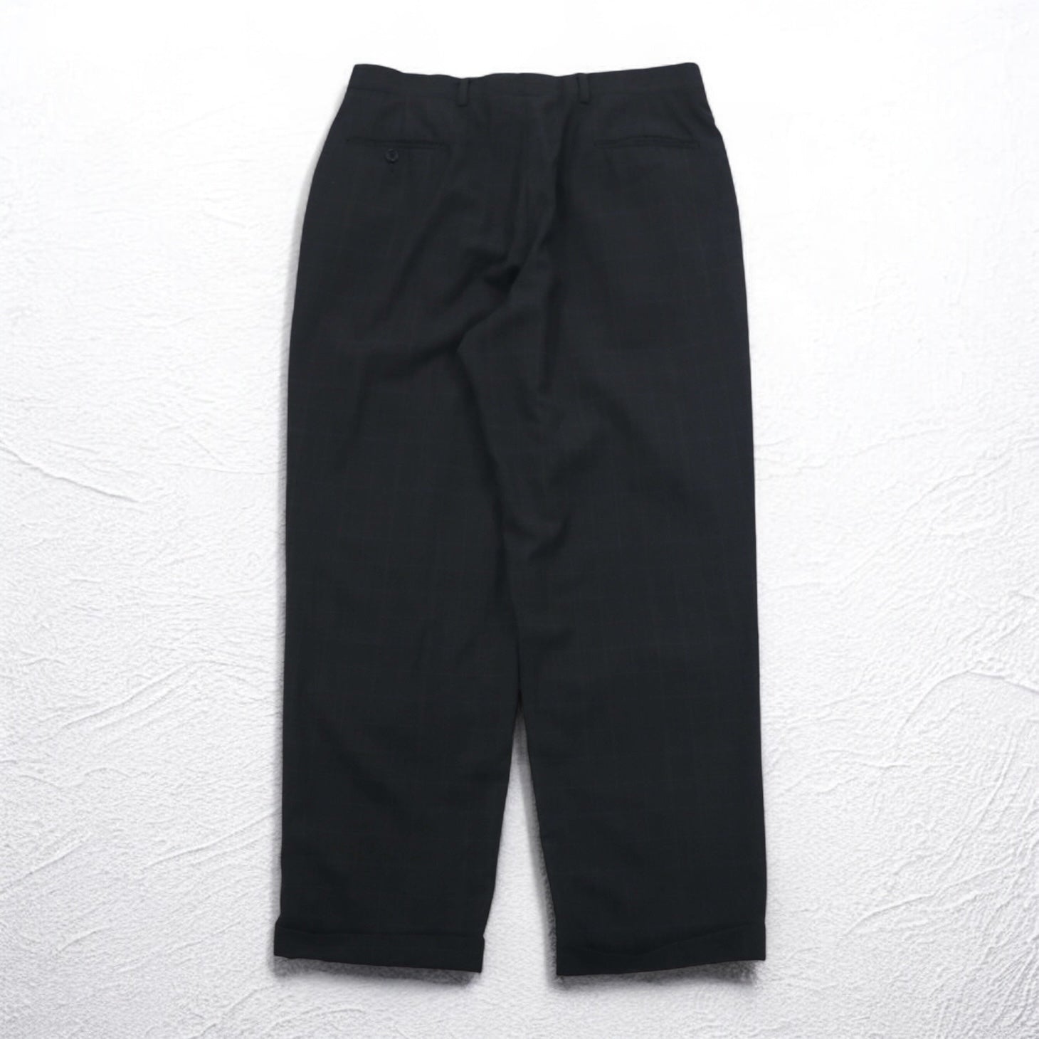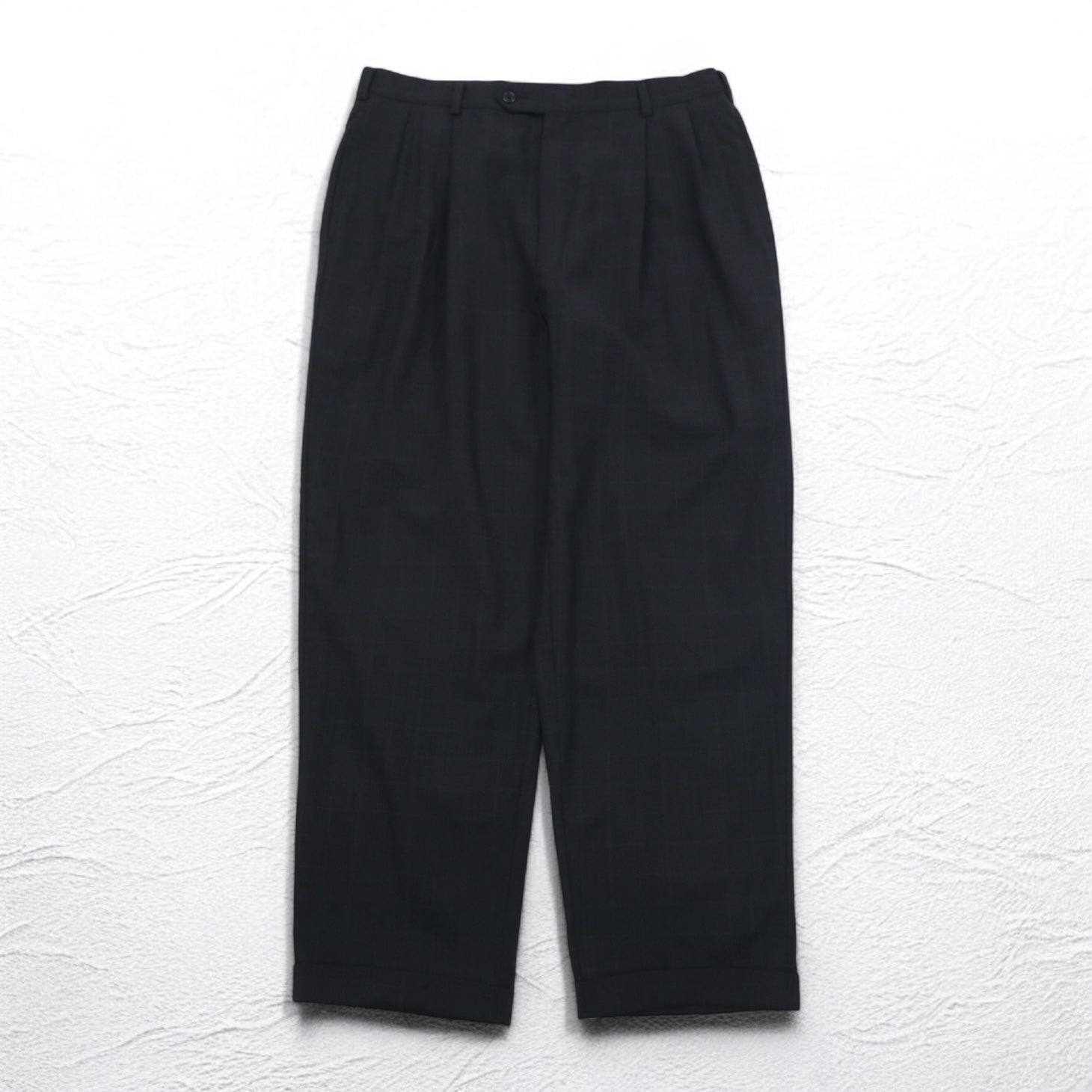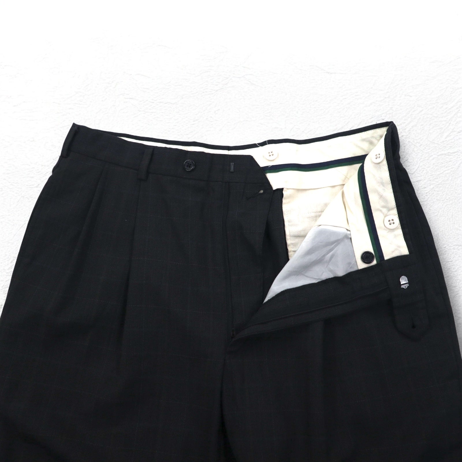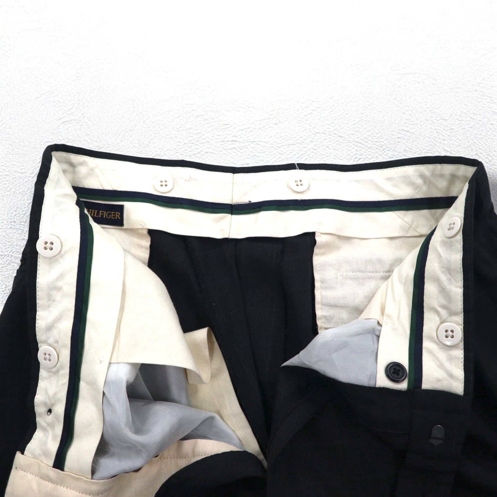 TOMMY HILFIGER 90年代 タック ワイド スラックスパンツ L グレー チェック ウール サスペンダーボタン
