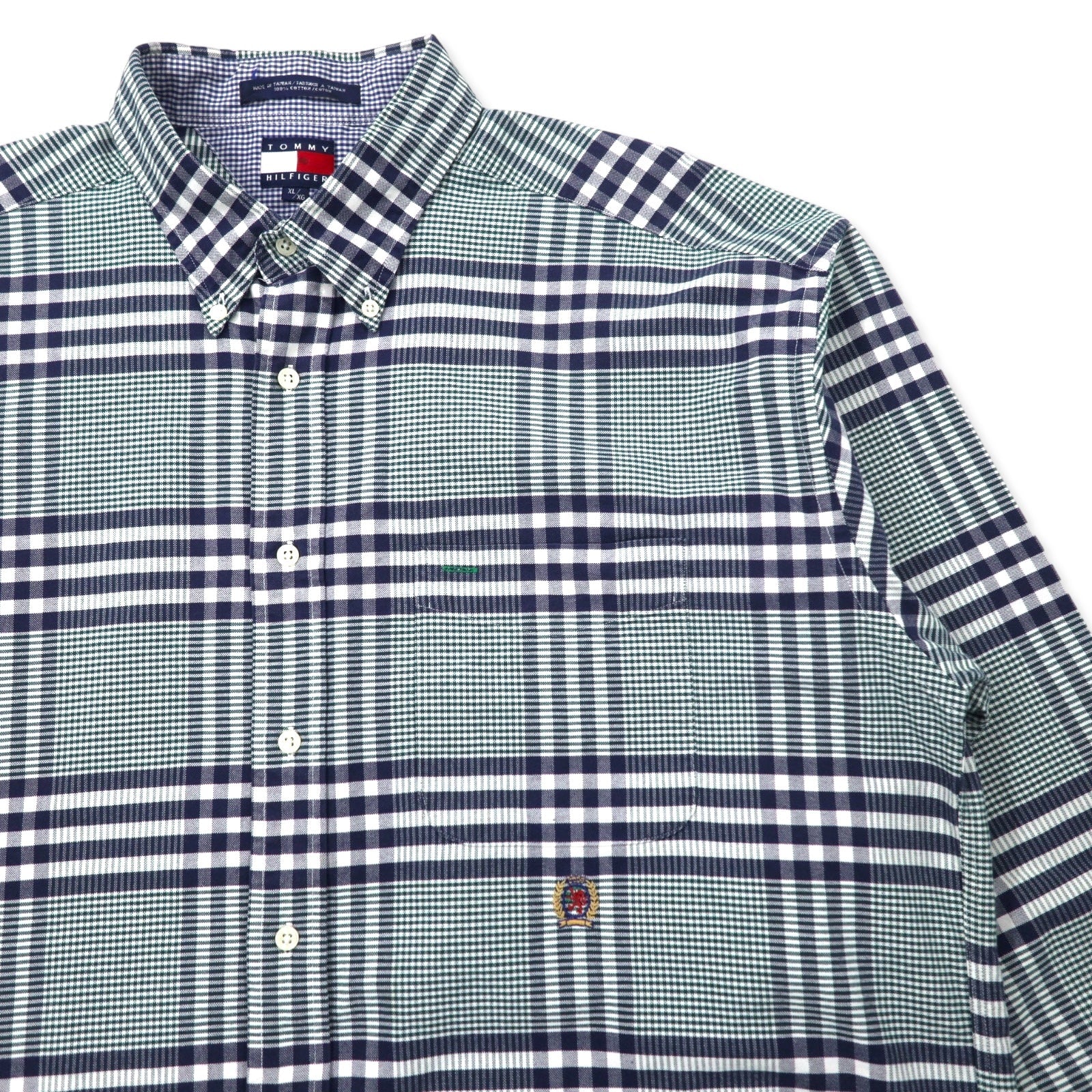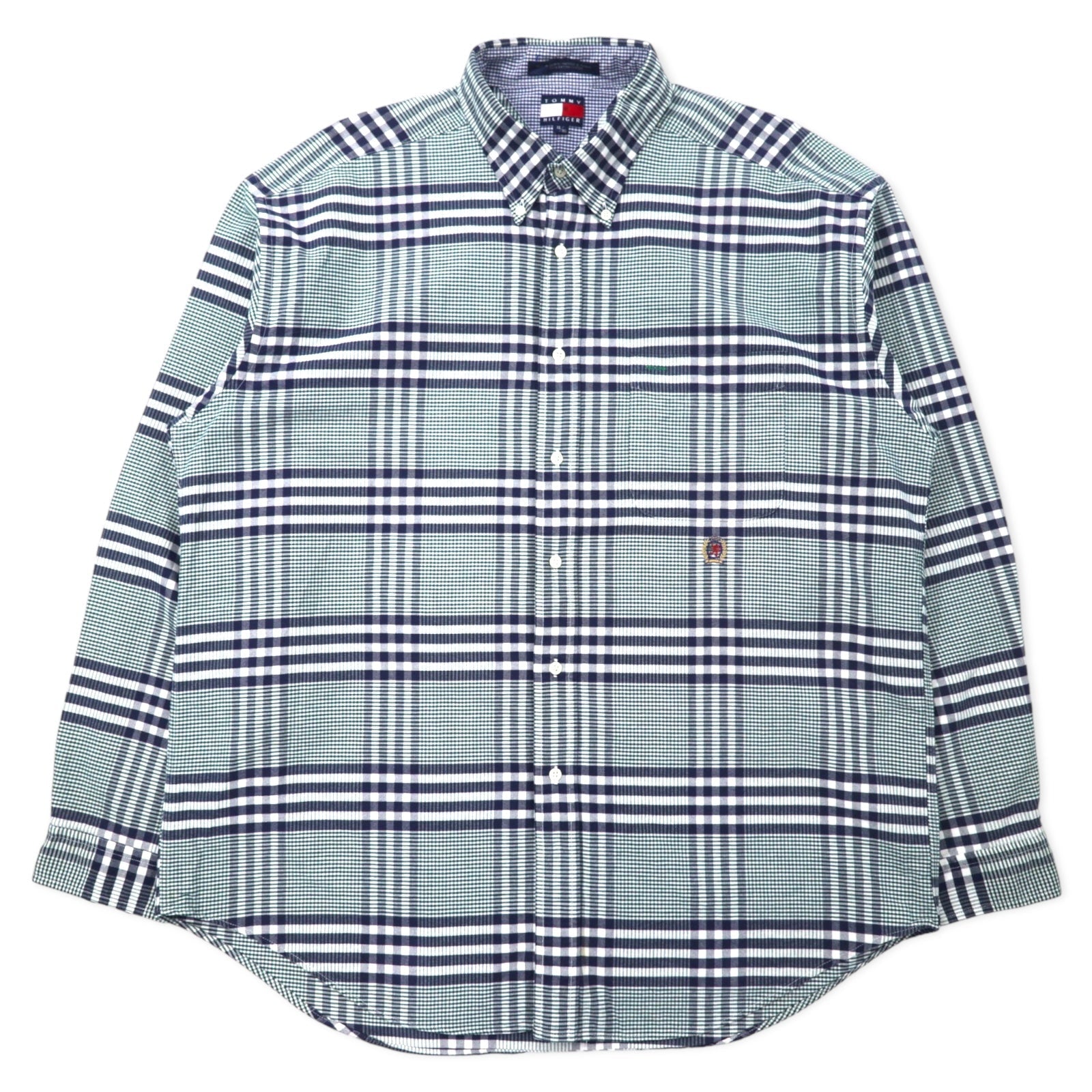 TOMMY HILFIGER 90年代 ボタンダウンシャツ XL ネイビー チェック コットン ワンポイントロゴ刺繍 ビッグサイズ
