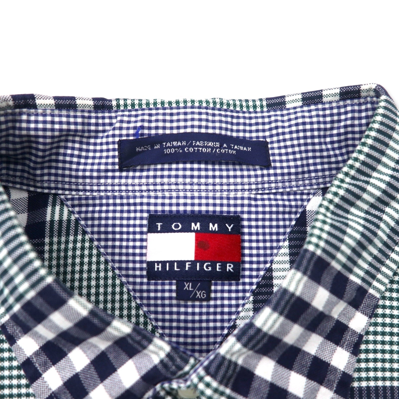 TOMMY HILFIGER 90年代 ボタンダウンシャツ XL ネイビー チェック コットン ワンポイントロゴ刺繍 ビッグサイズ