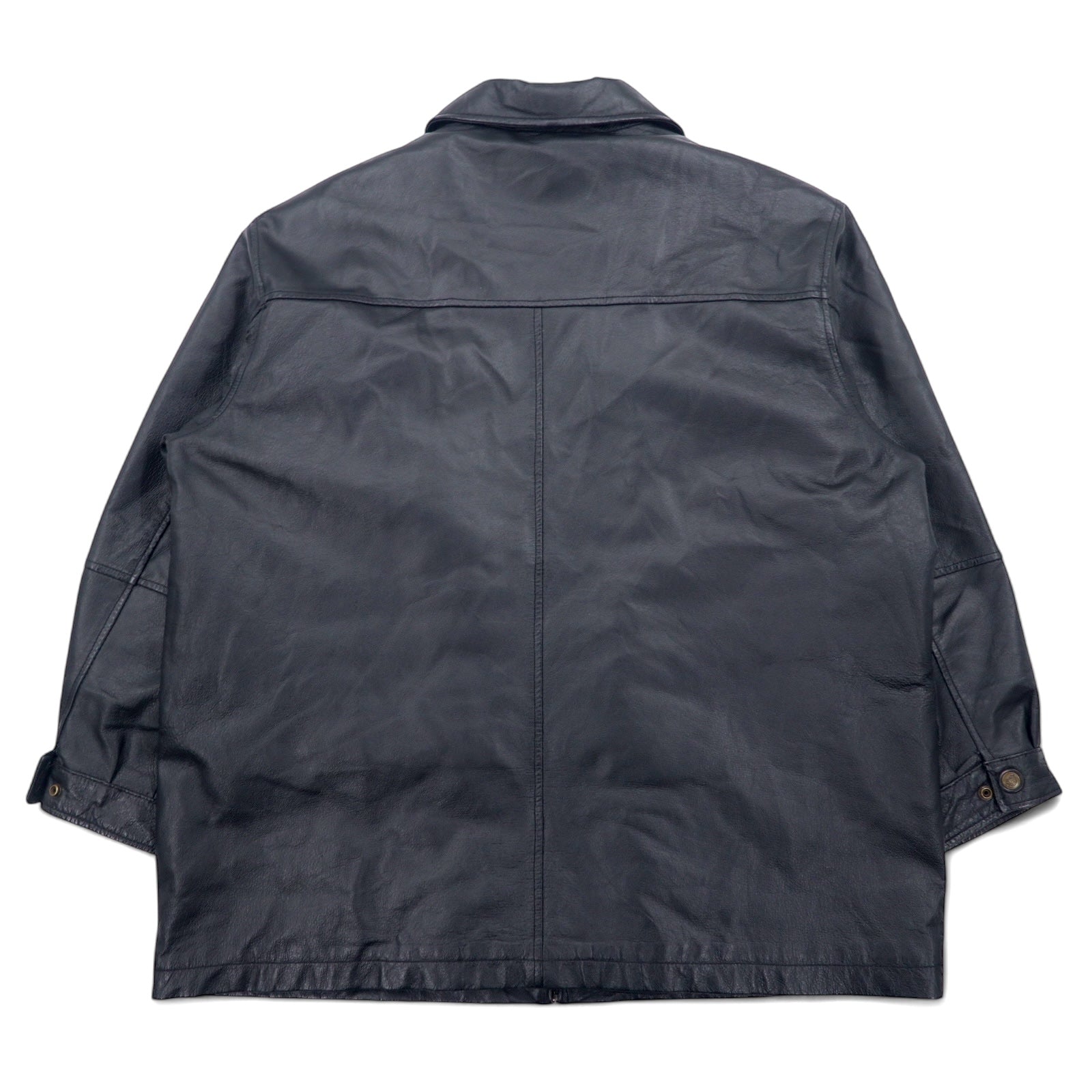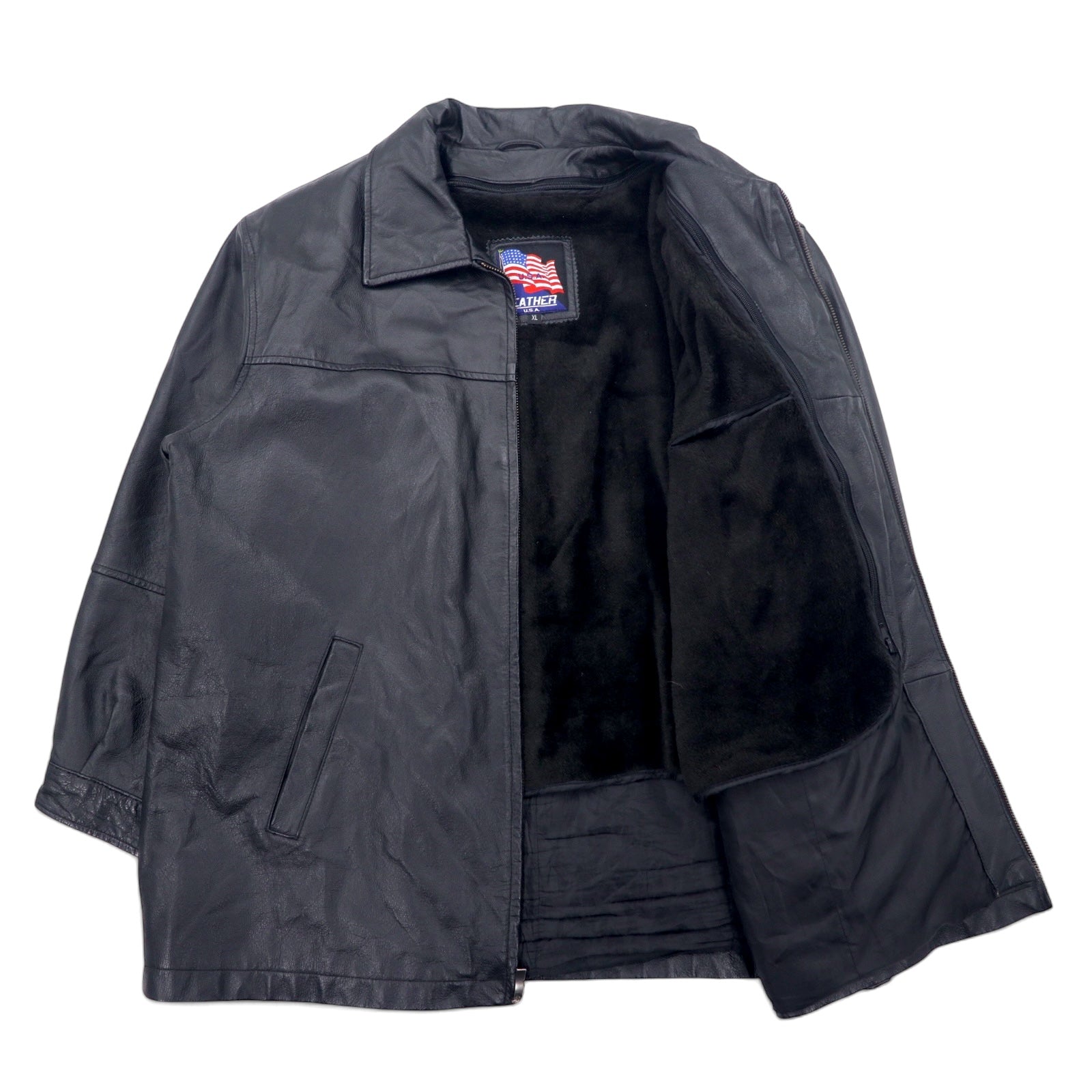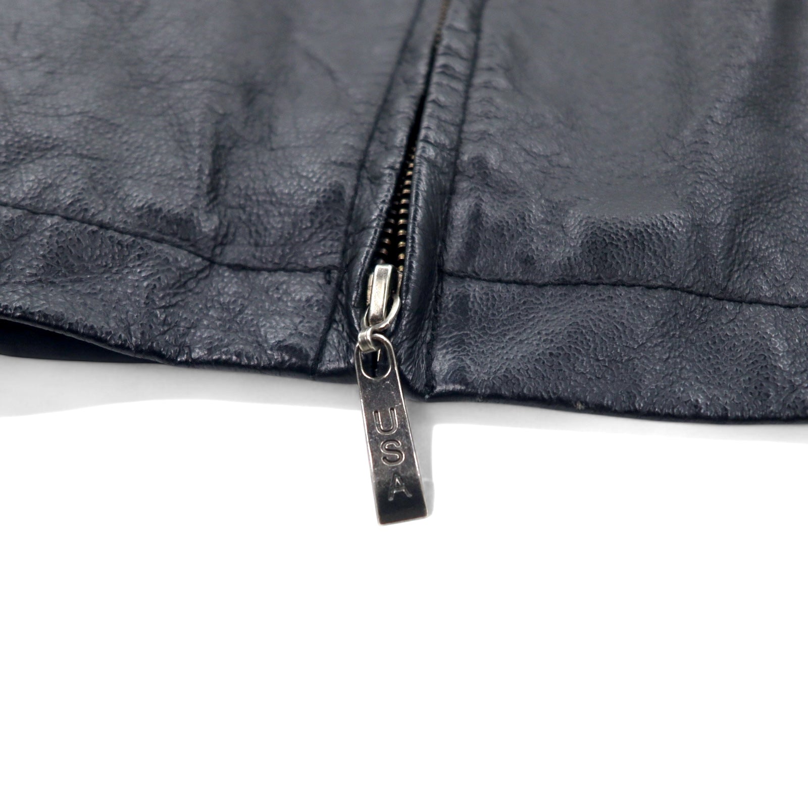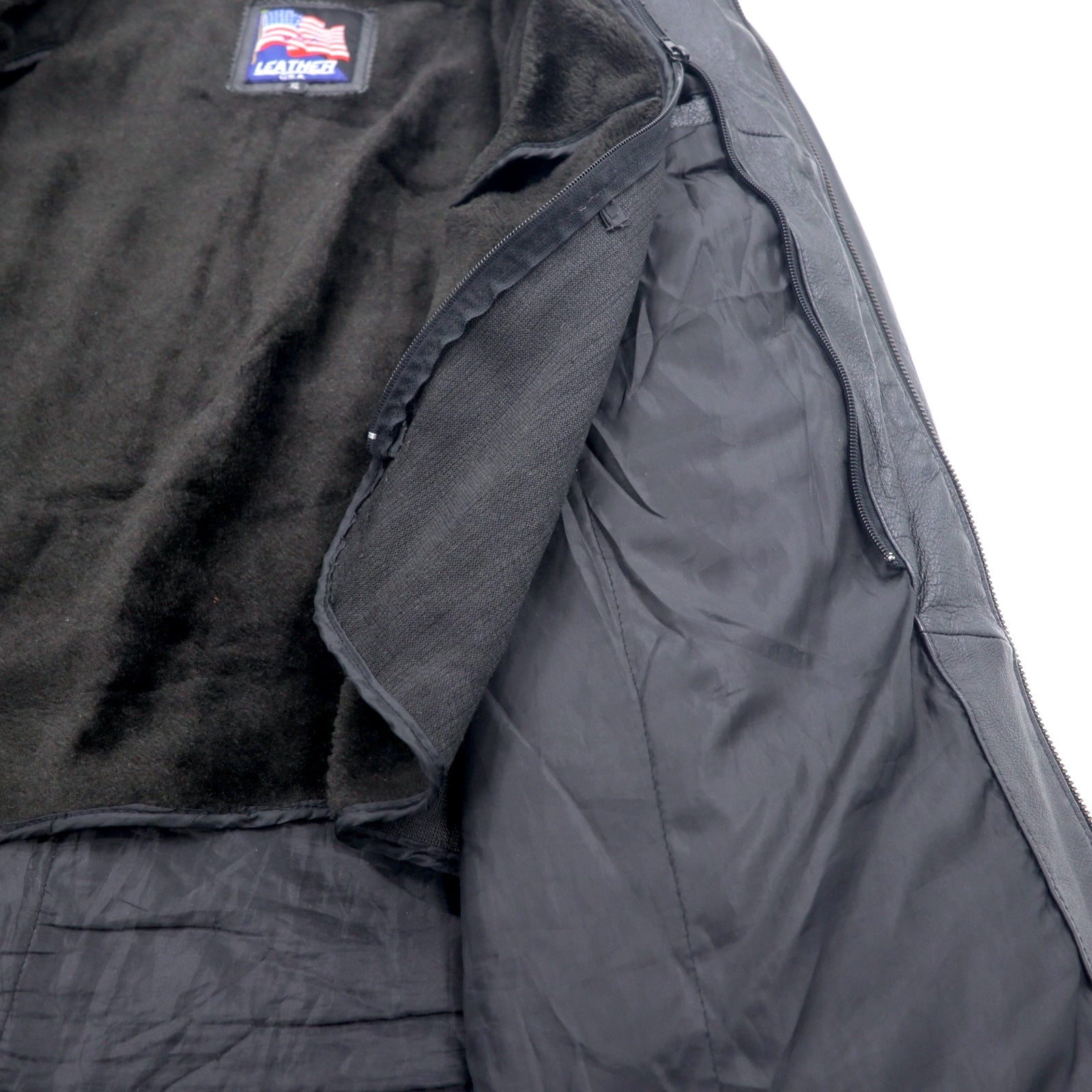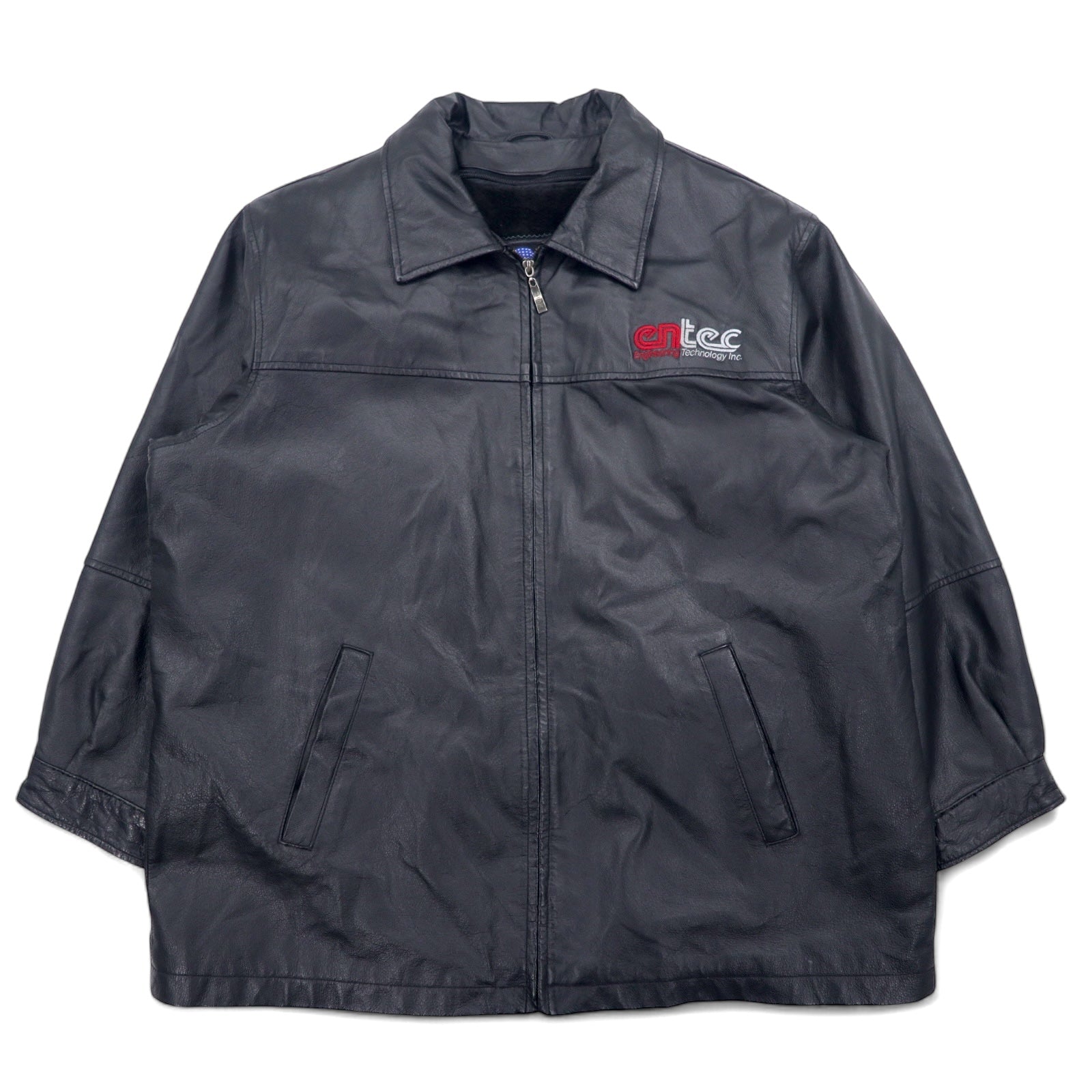 U.S.A. LEATHER 90年代 レザージャケット XL ブラック ライナー着脱式 entec US企業 刺繍 ジップアップ