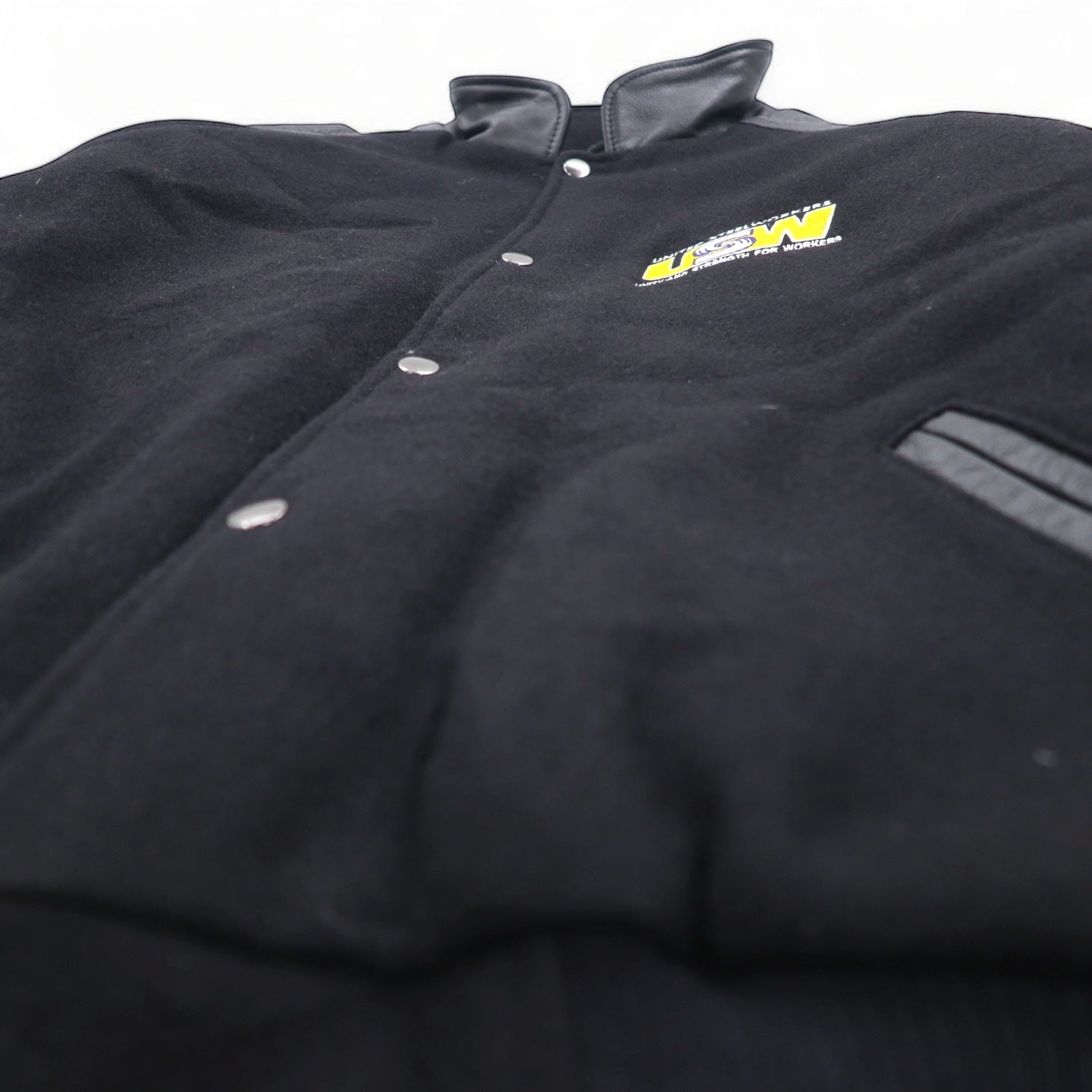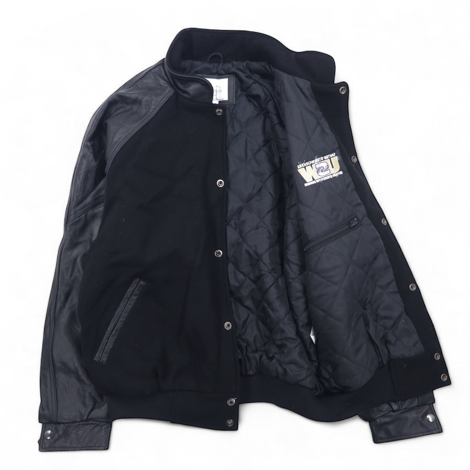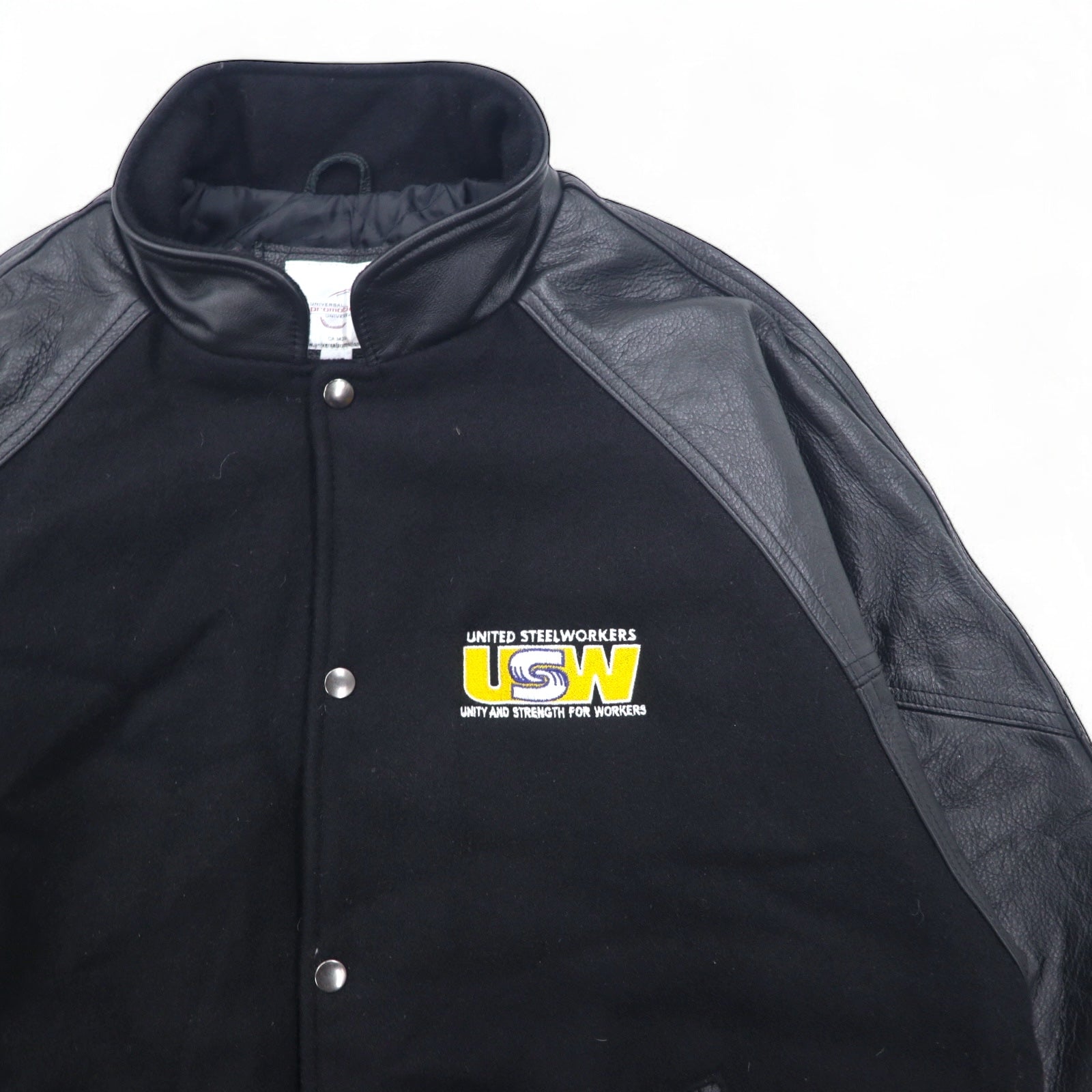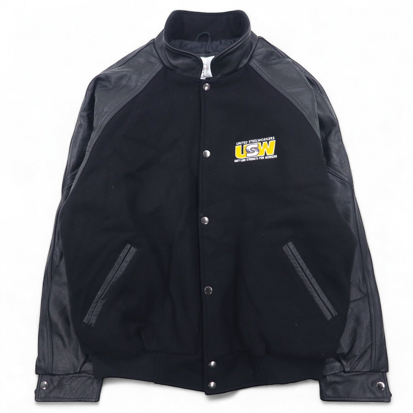 UNIVERSAL promotions レザー切替 メルトン スタジャン L ブラック レザー UNITED STEEL WORKERS