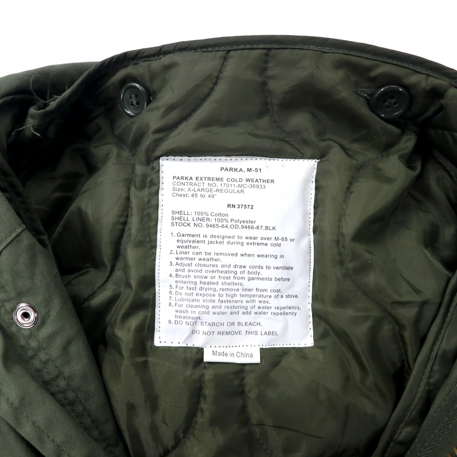 US ARMY 米軍 M-51 モッズコート フィッシュテール パーカー XL カーキ コットン キルティングライナー 着脱式 ドローコード ミリタリー ROTHCO 17011-MC-36933 PARKA EXTREME COLD WEATHER